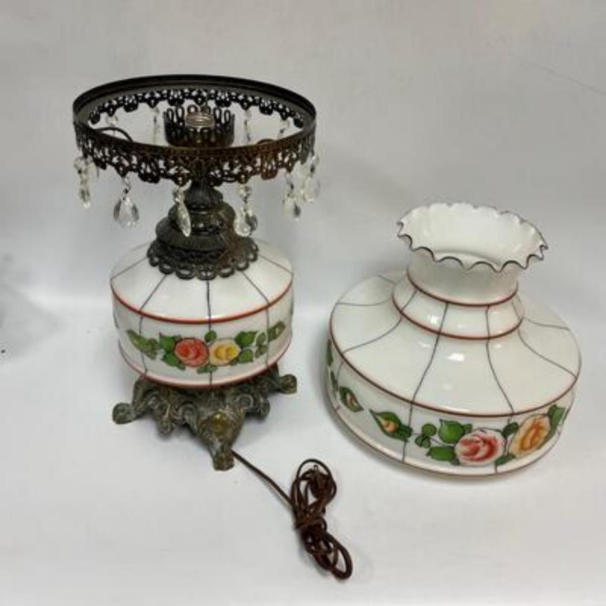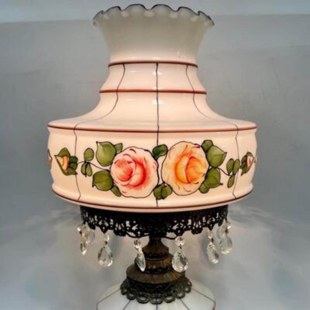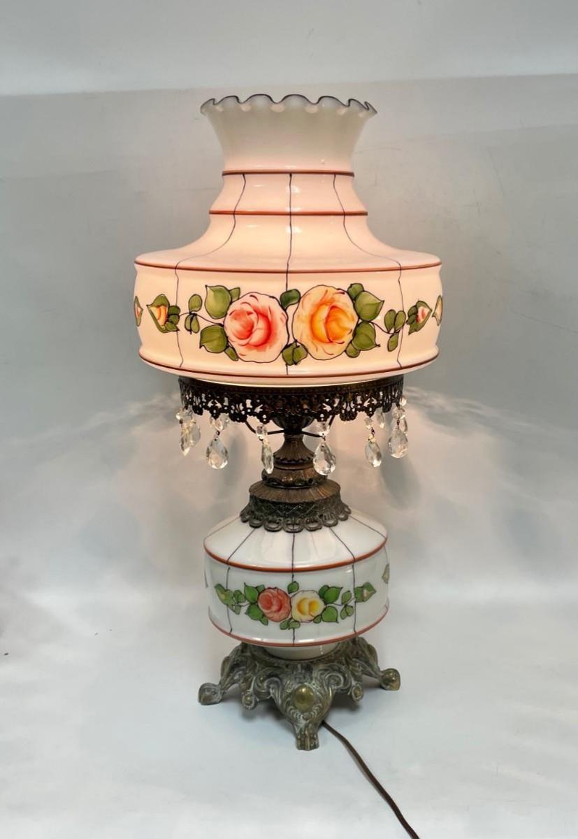 Antique Hand Painted Floral Glass Hurricane Globe Victorian Style Parlor Lamp