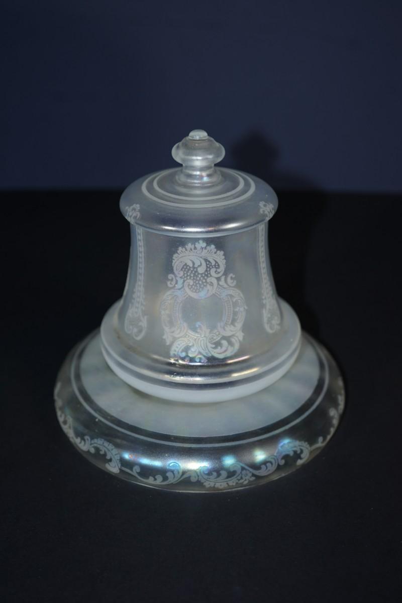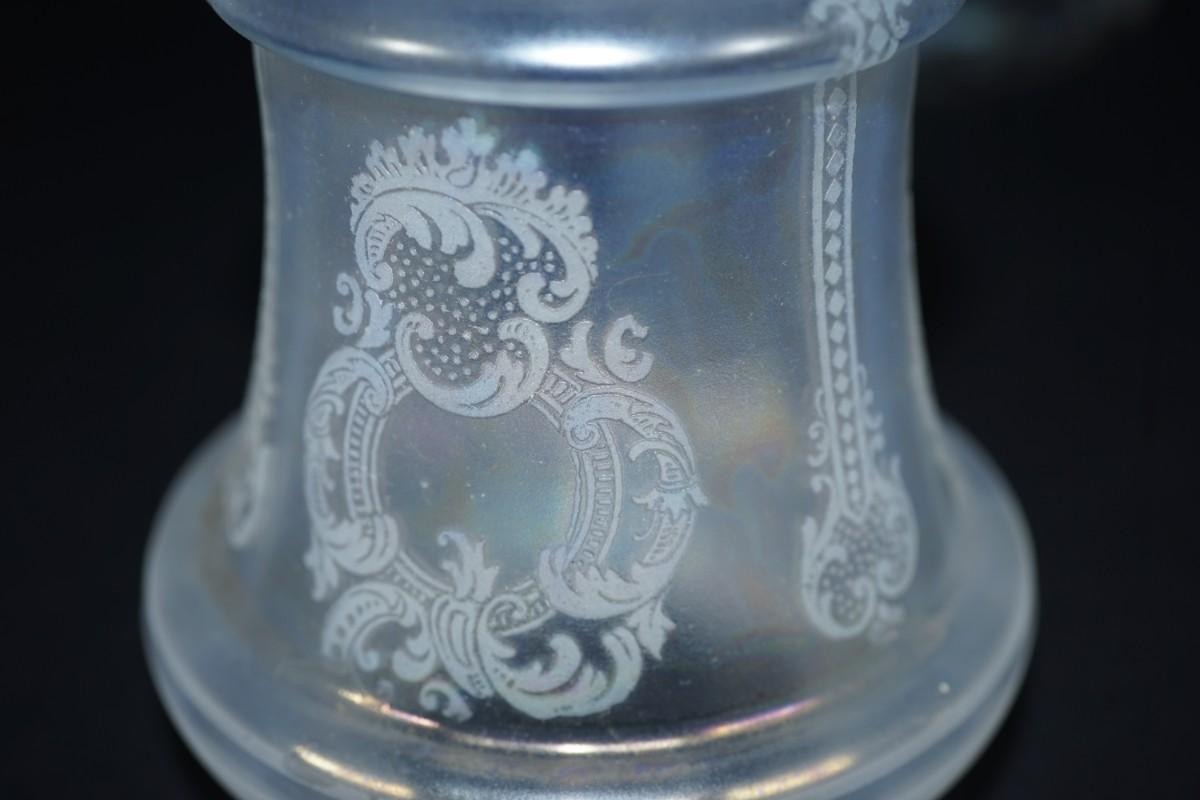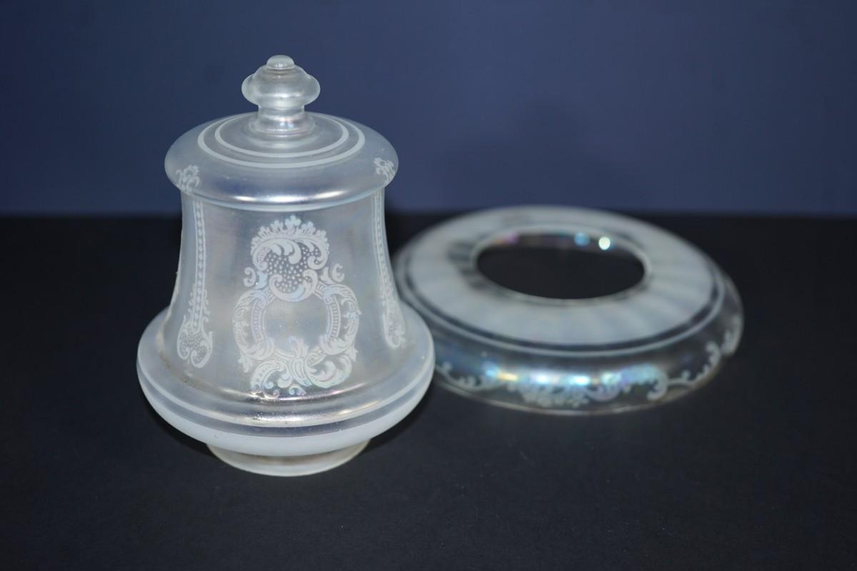 ANTIQUE GLASS LUSTER ETCHED CEILING LIGHT SHADE PEARLESCENT -MISSING METAL MOUNTS