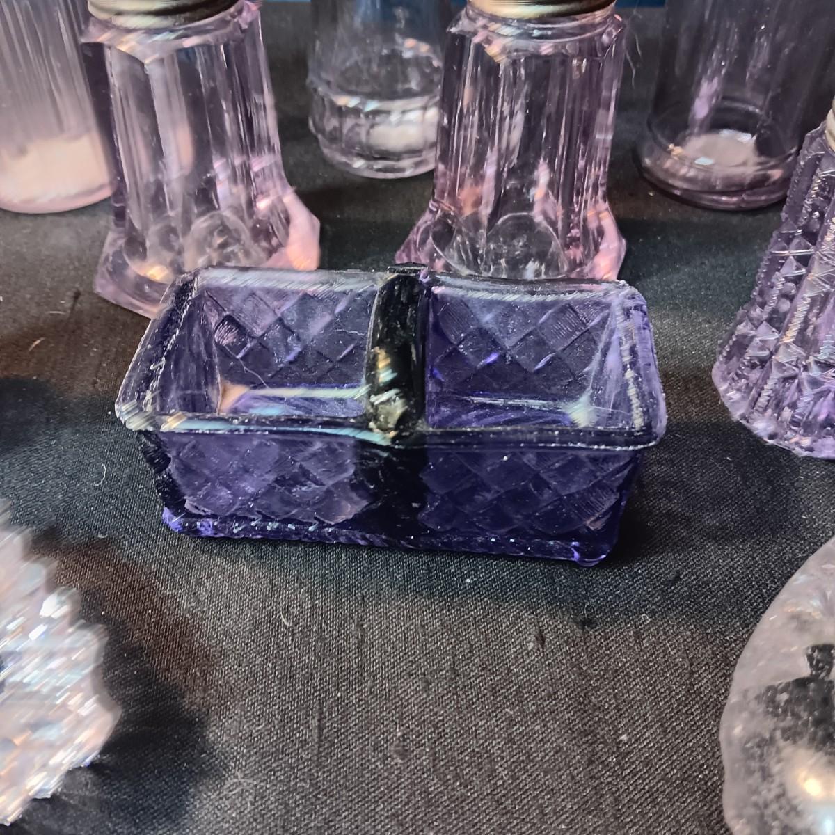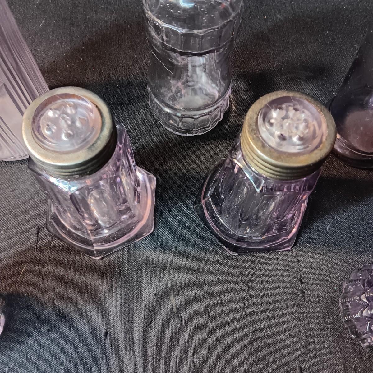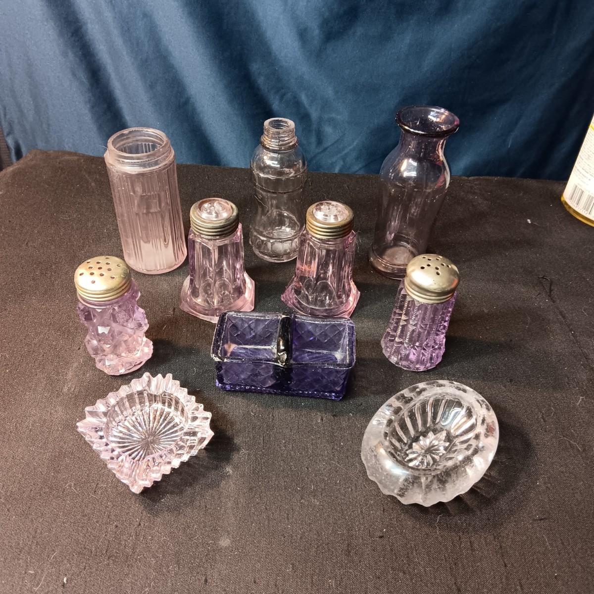 ANTIQUE GLASS PIECES WITH A PURPLE HUE