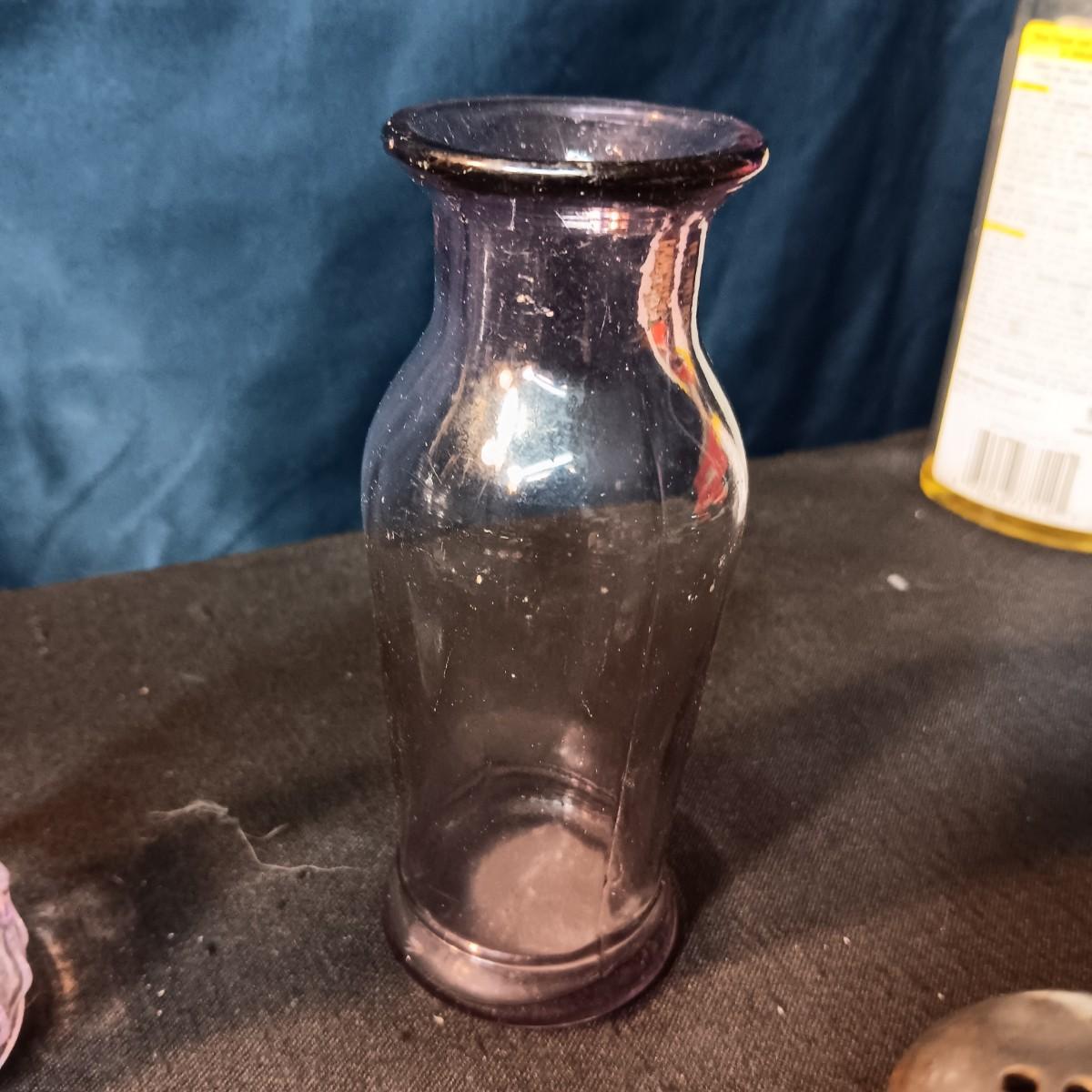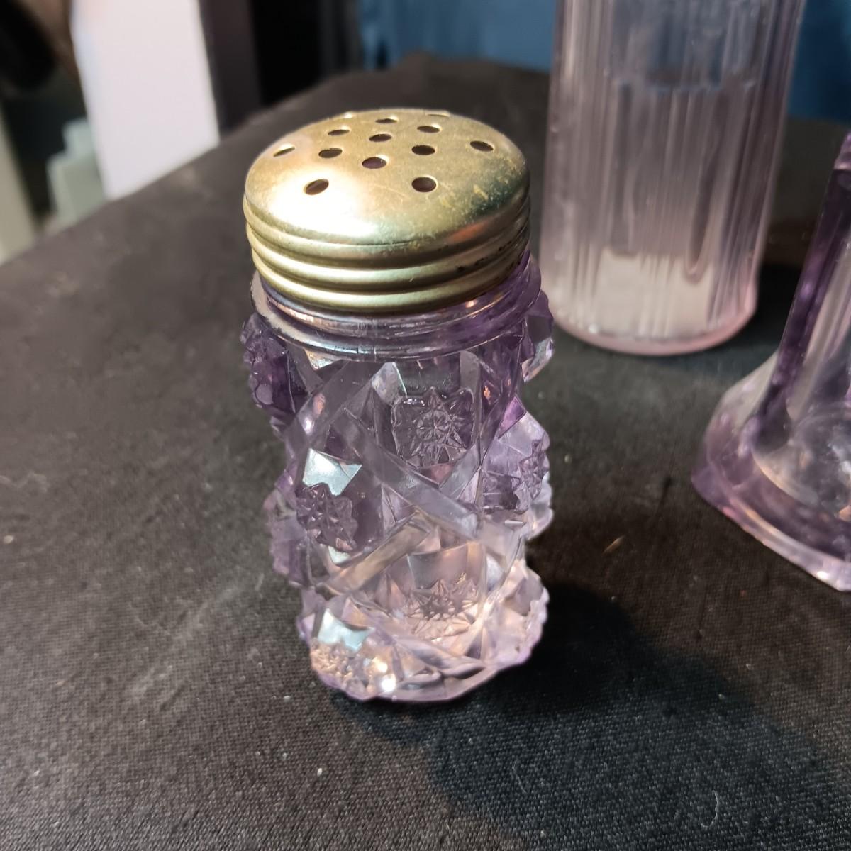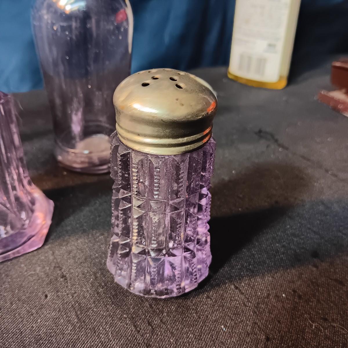 ANTIQUE GLASS PIECES WITH A PURPLE HUE