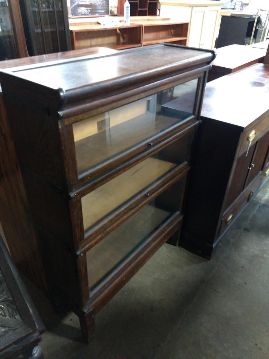 Antique Globe-Wernicke Sectional Barrister Cabinet has some wear to finish. See photos for measurements
