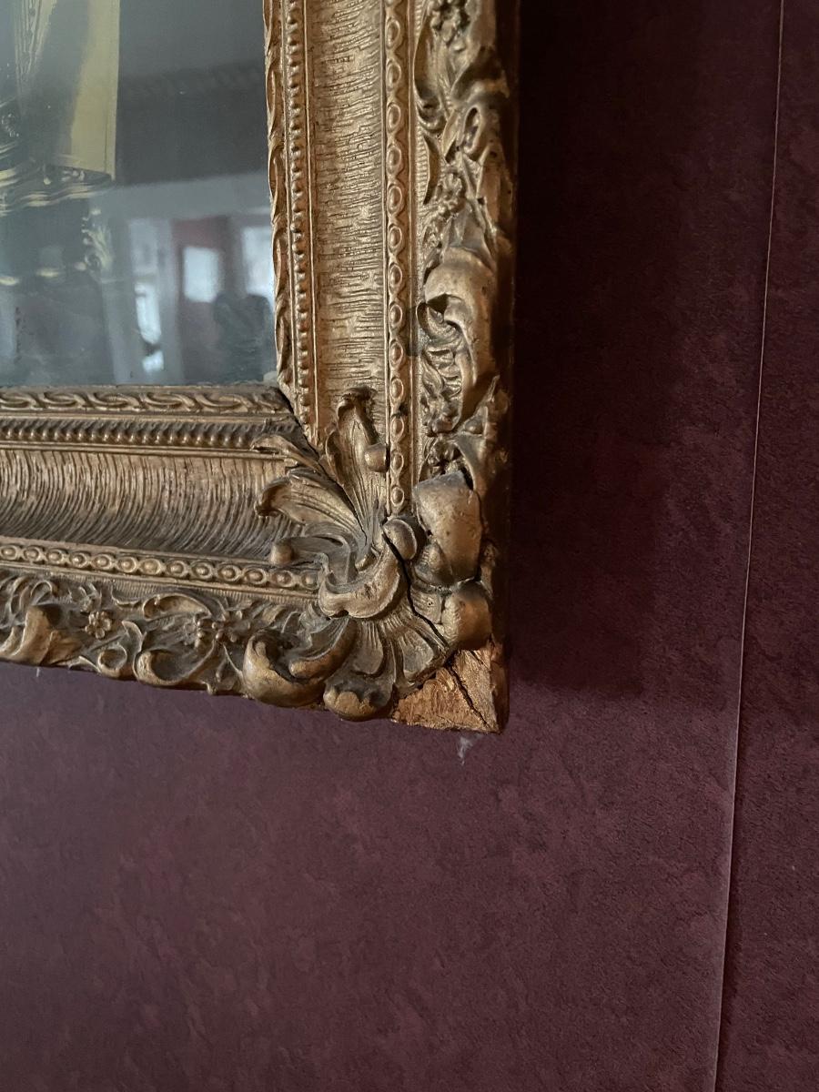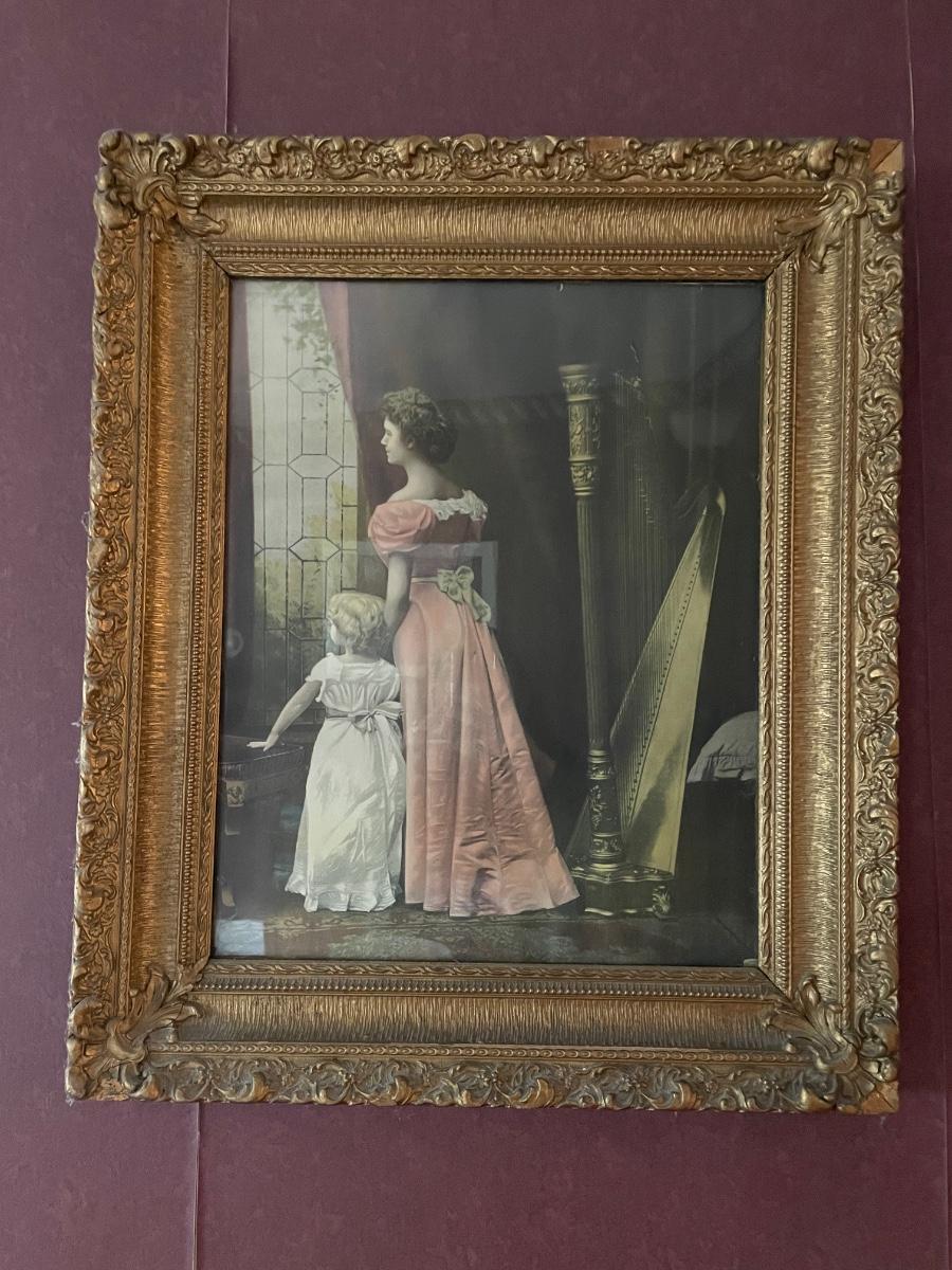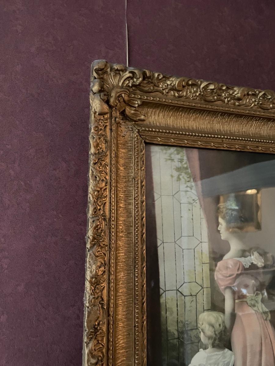 Beautiful antique print housed in a lovely antique frame measuring 22” x 26”. Breaks in frame as seen.
