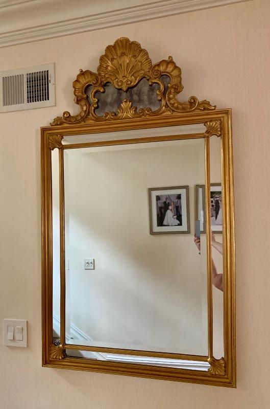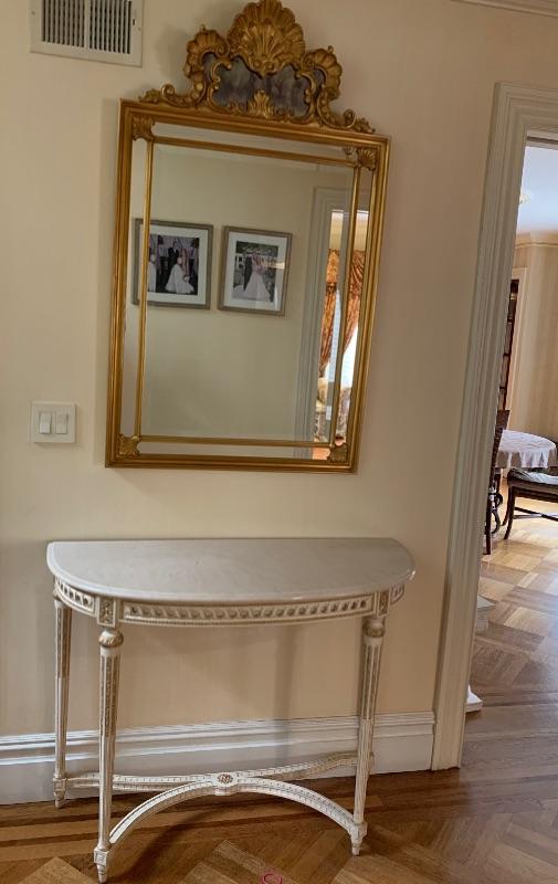 Antique Gold Leaf Mirror & Marble Gold Leaf Accent Console