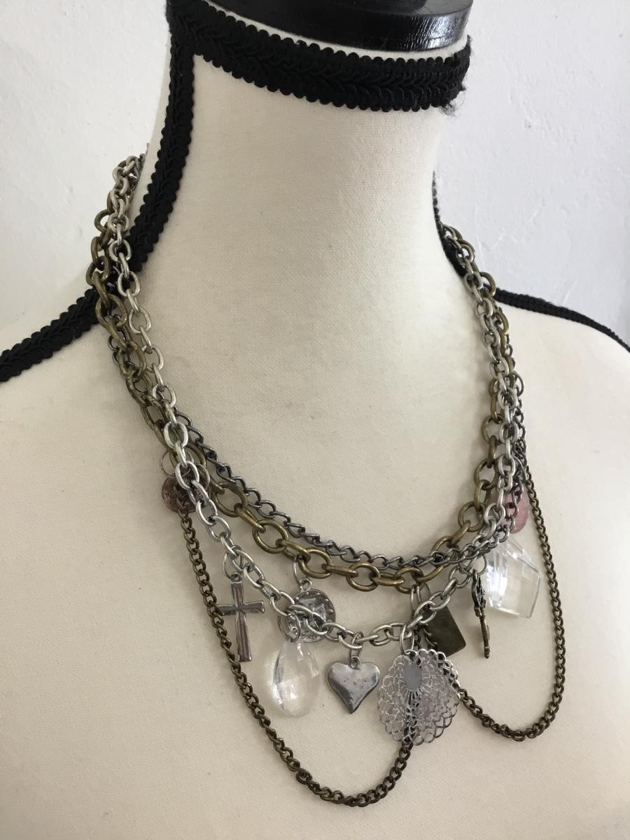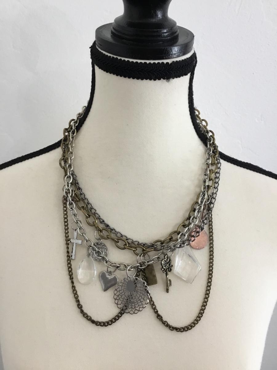 Antique, gold tone and silver tone, Multi layered charm necklace