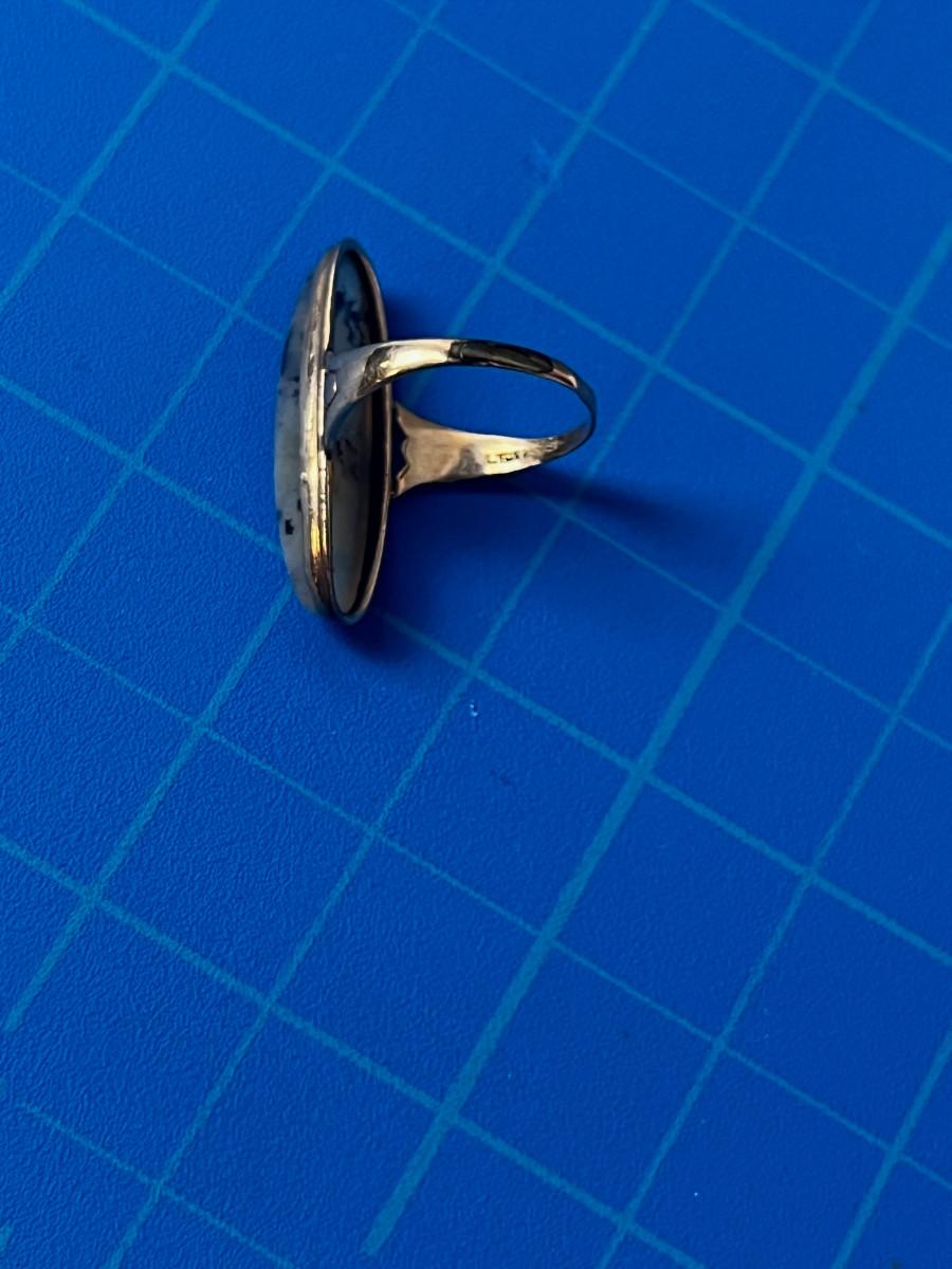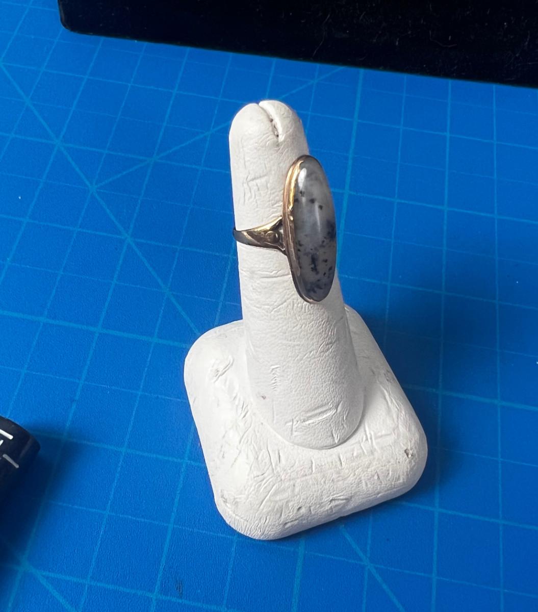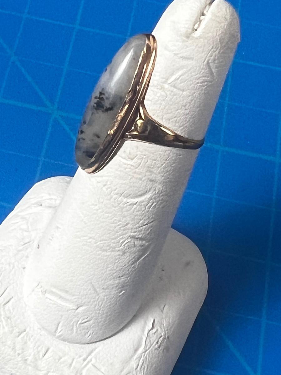 Antique Gold with Black Spotted Quartz Cabochon Oval Women's Ring