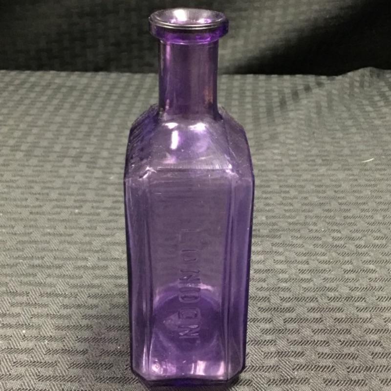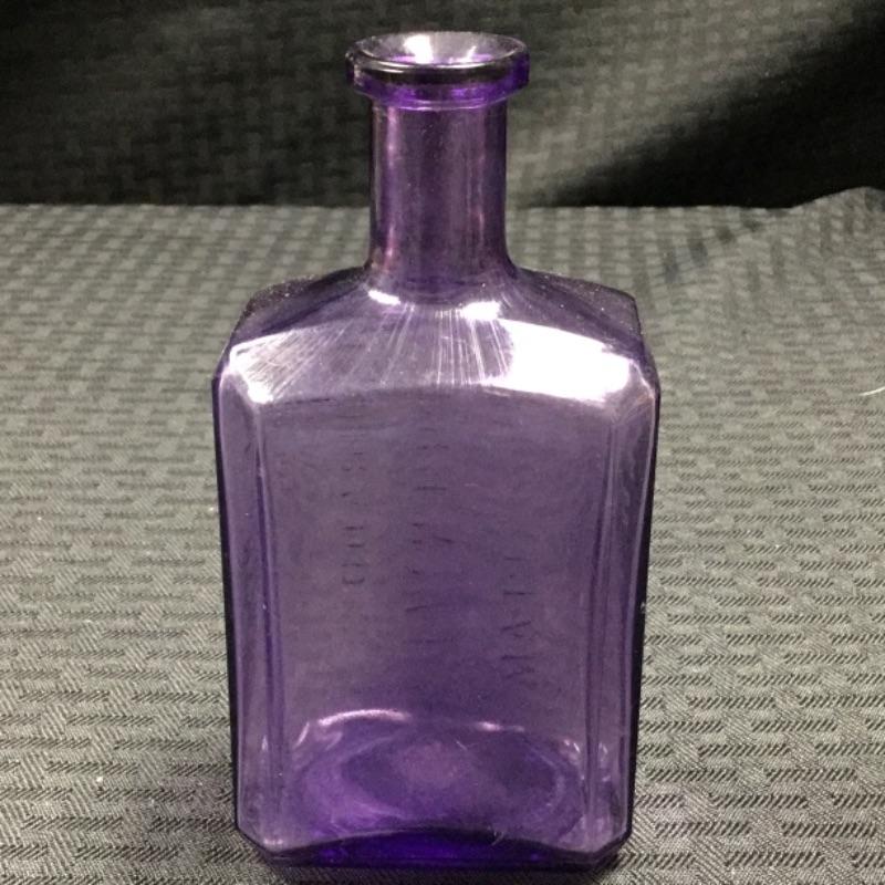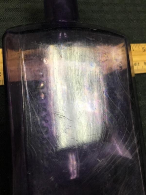 As to be expected with antique glass, the bottle has some clouding on the front and slight scratches on the side panels; see pictures.