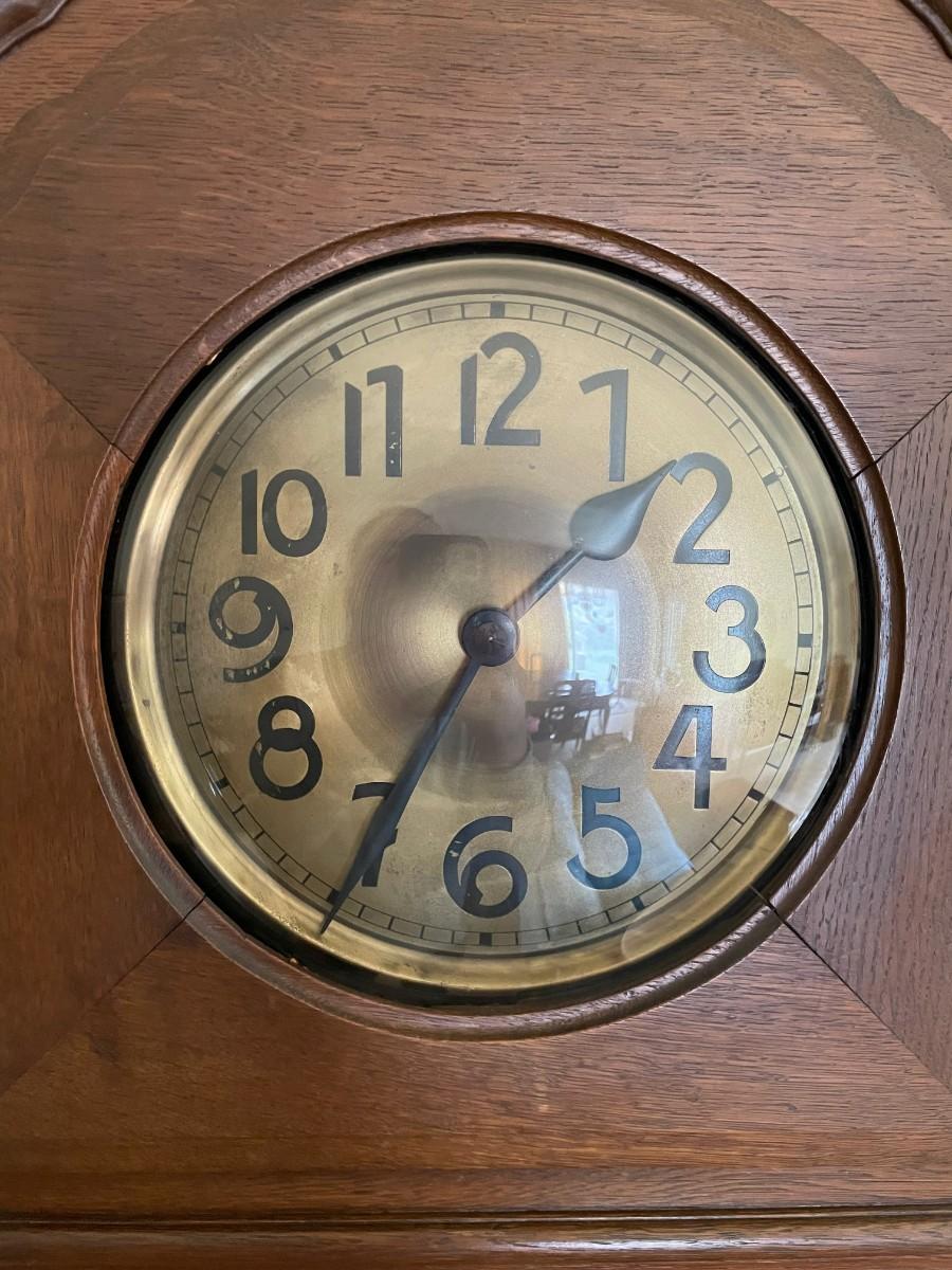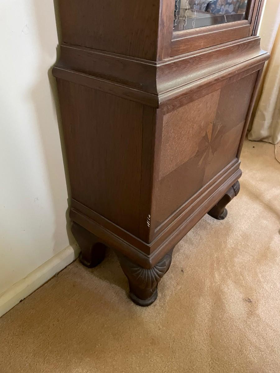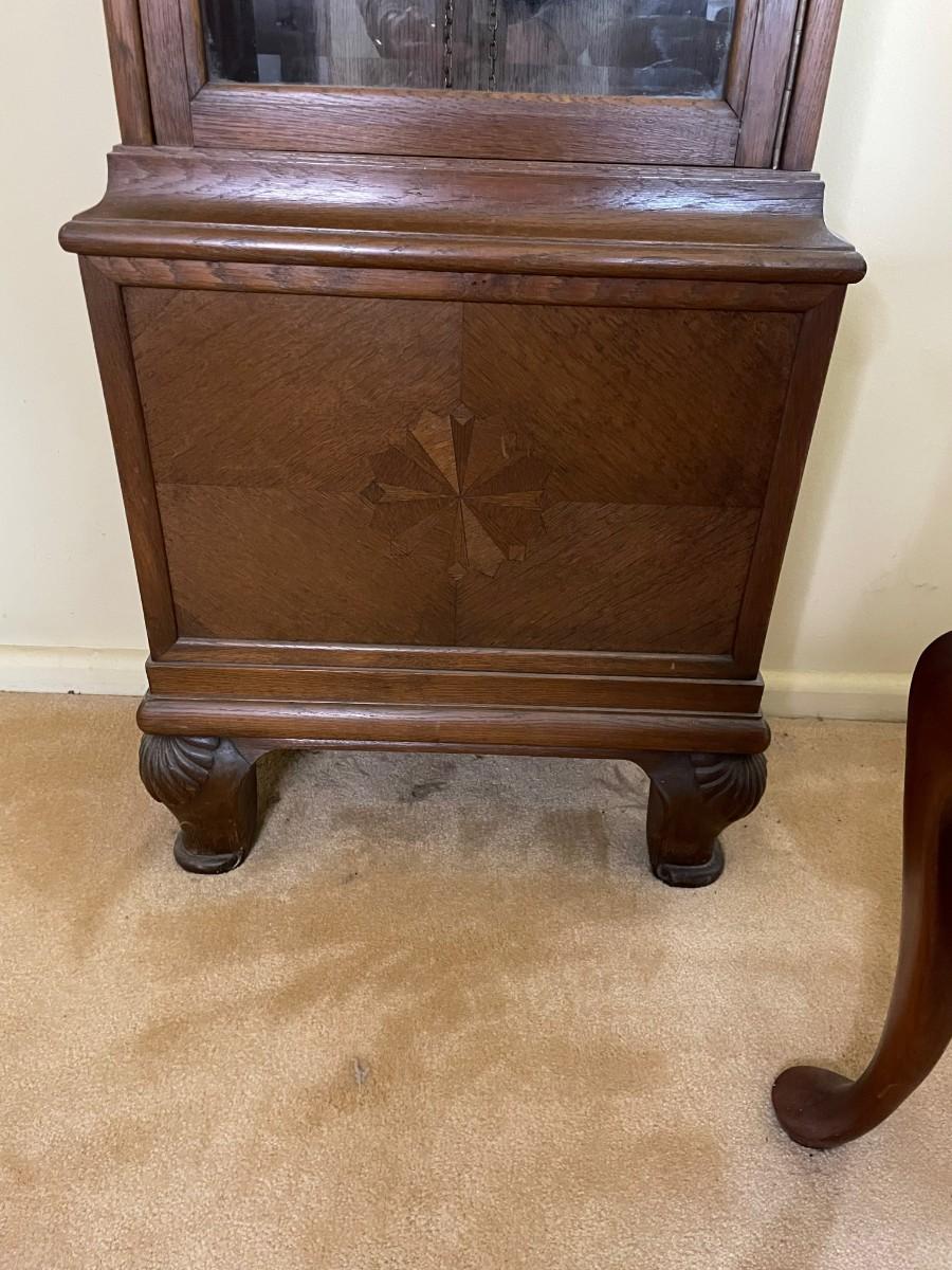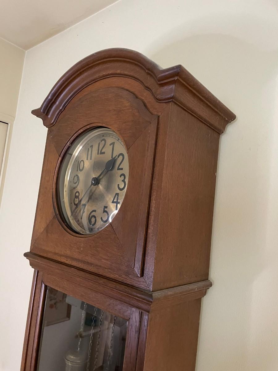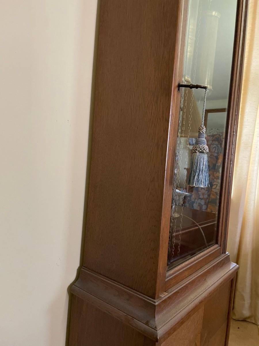 Two weights. Beautiful chime. In working order. Wood has been beautifully maintained. 19Lx 10Wx 78H