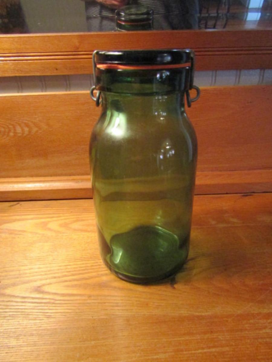 Antique Green Glass Bulach Canning Jar with Lid- 1 Liter- Switzerland