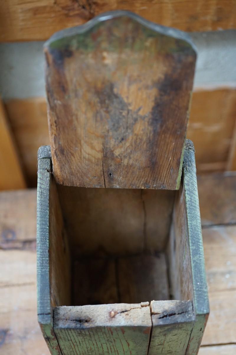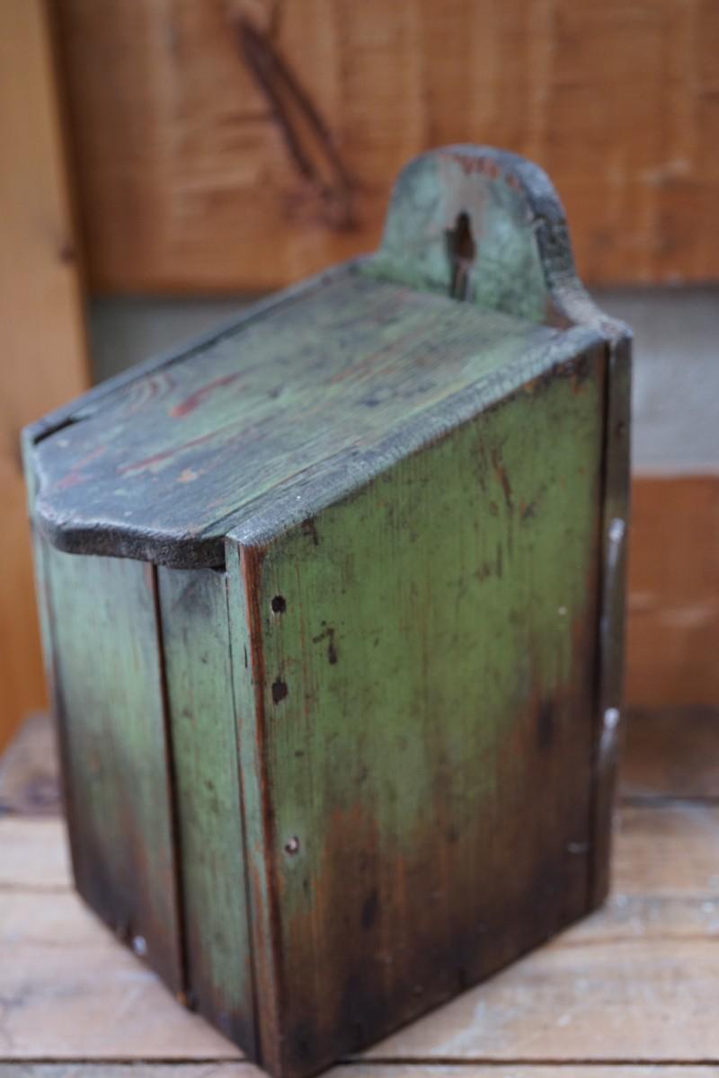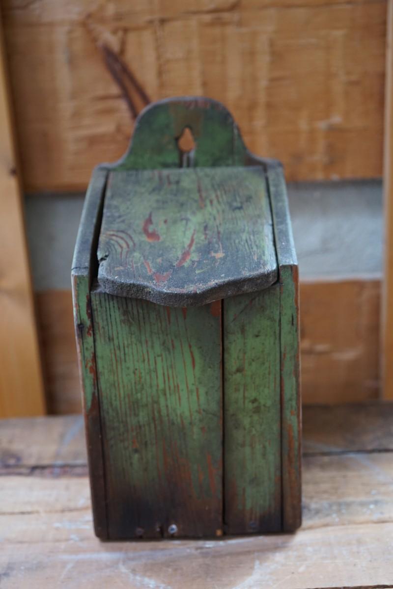 ANTIQUE GREEN PAINTED HANGING LIDDED BOX