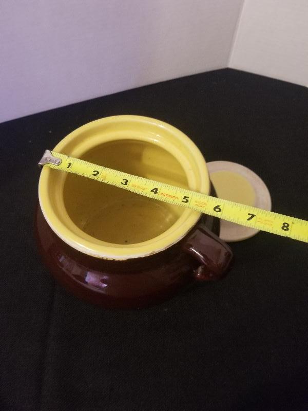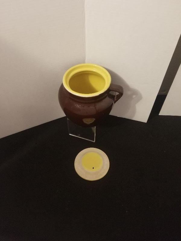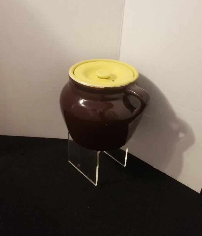 Antique Stoneware Hall 762? or 782 Bean Pot Brown With Yellow Lid No Chips - #37-A