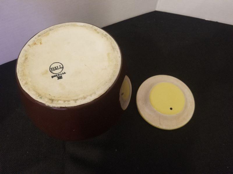 Antique Stoneware Hall 762? or 782 Bean Pot Brown Yellow Lid No Chips - #37-A
