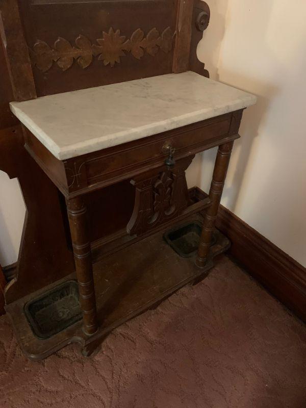 79" tall x 13" deep x 35" wide marble top, coat/hat hooks