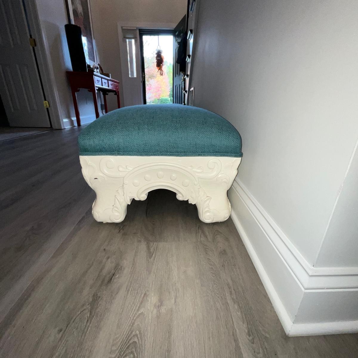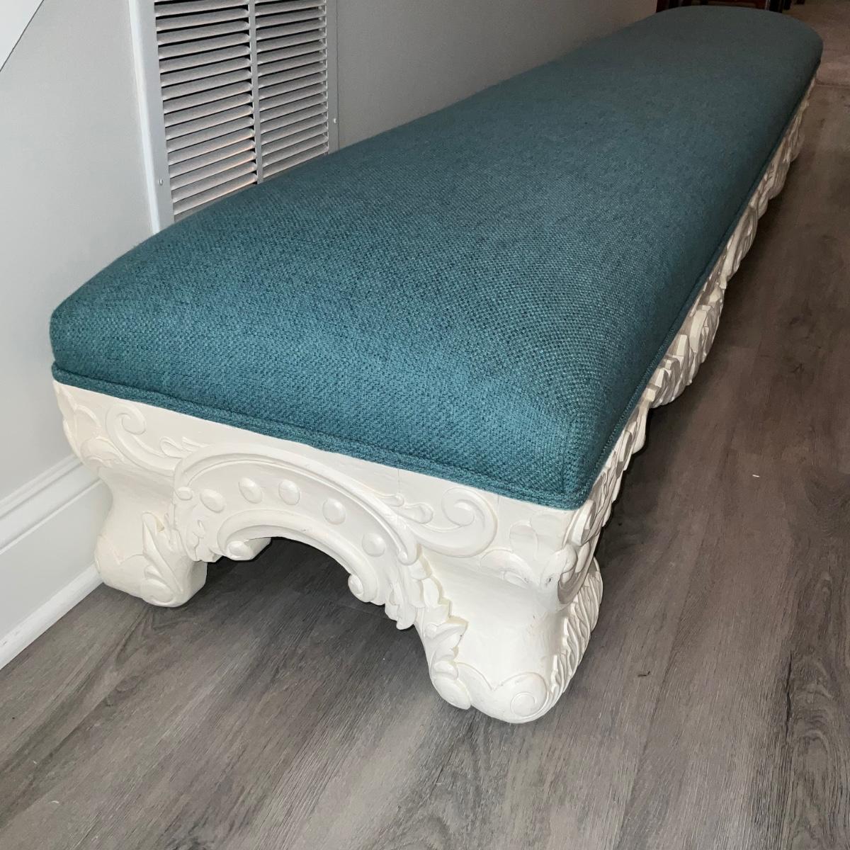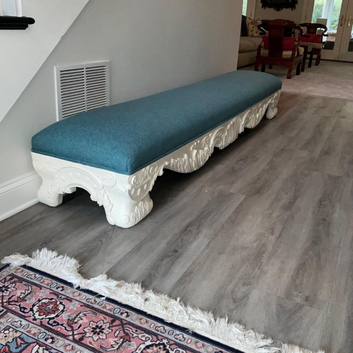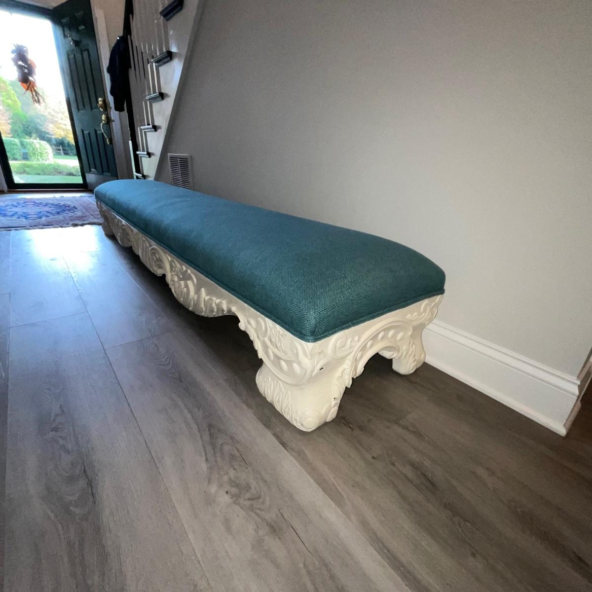 Custom made from a base of antique wardrobe. Comes with two pillows.