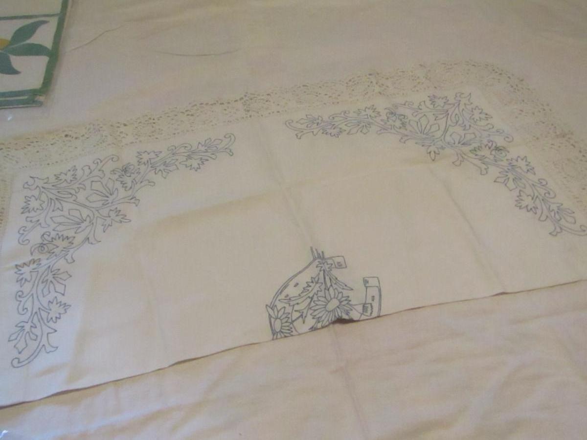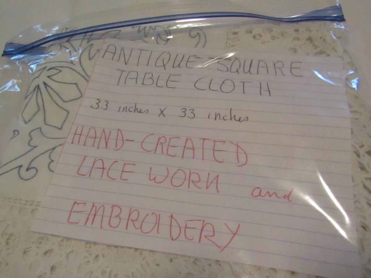 Antique Hand Created Tablecloth with Lacework and Embroidery- Approx 33" Square (#14)