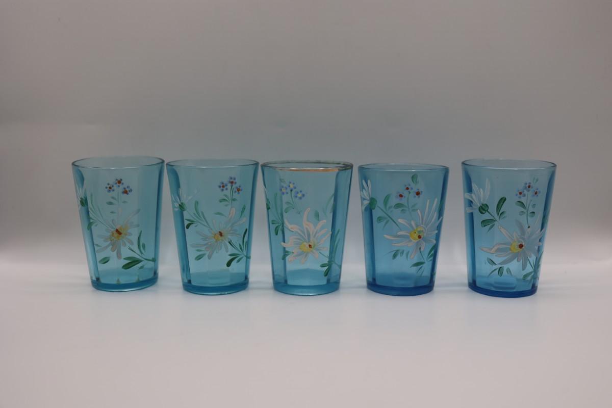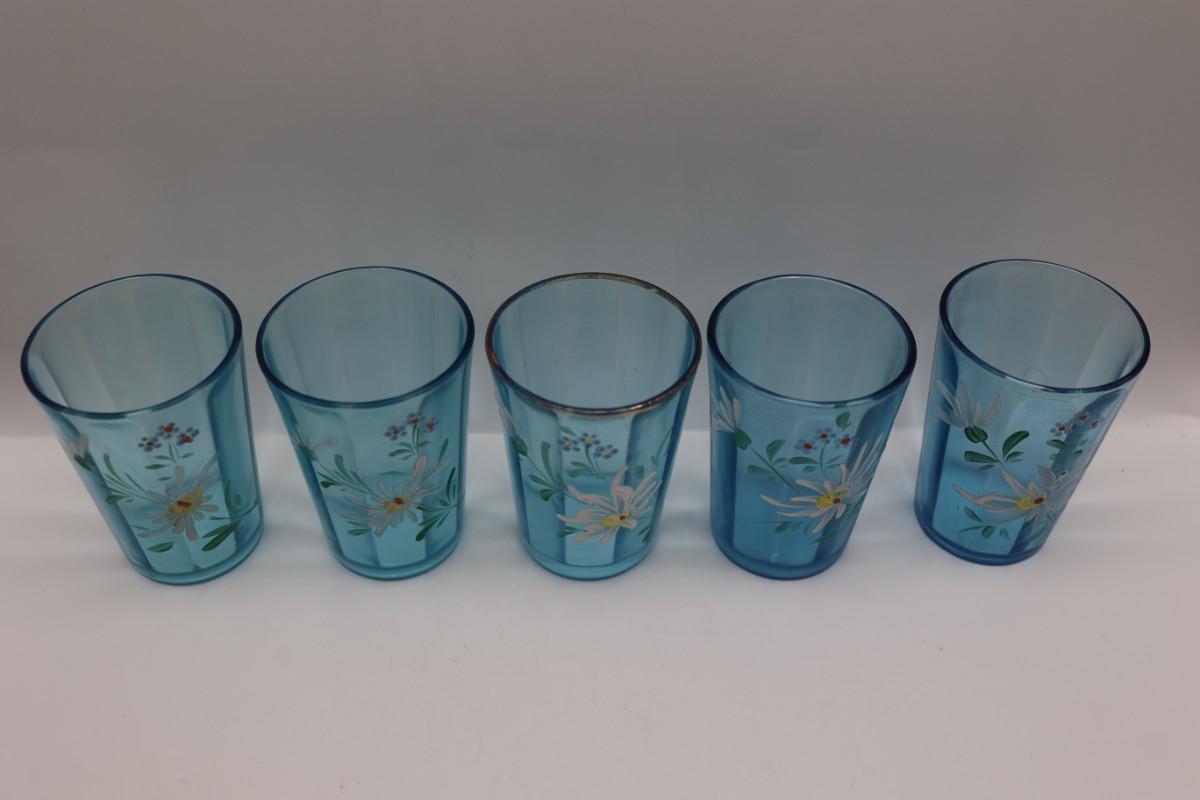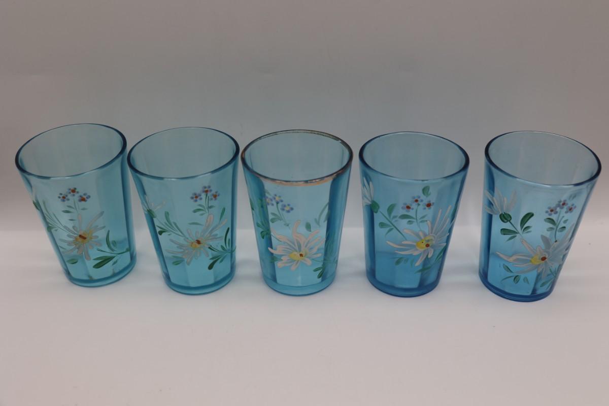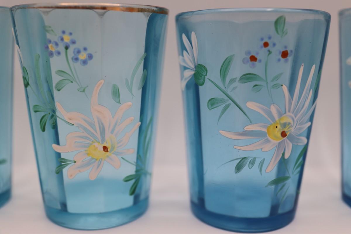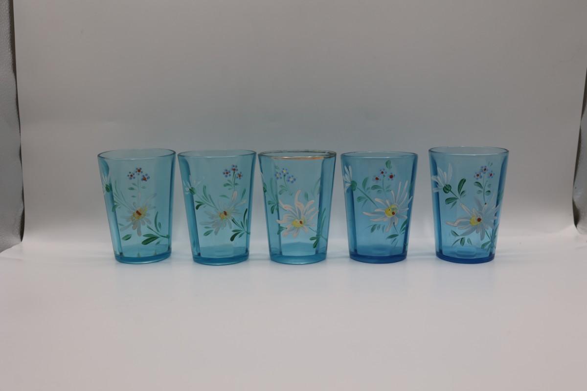 Hand Painted Teal Glass Floral Tumblers - Set of (6)