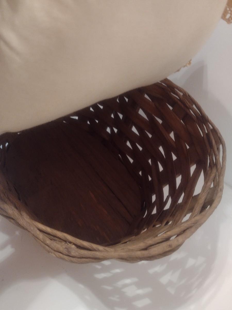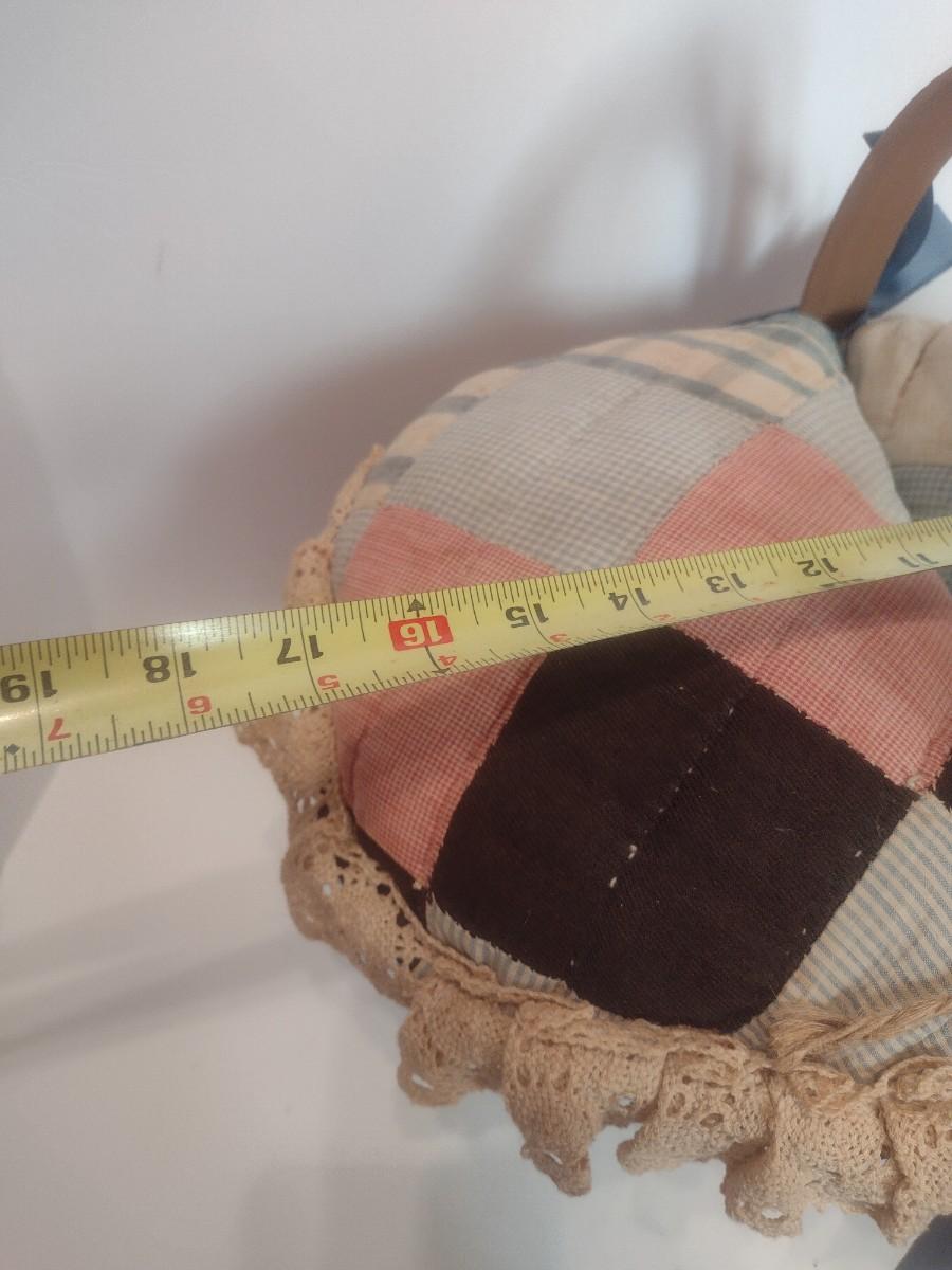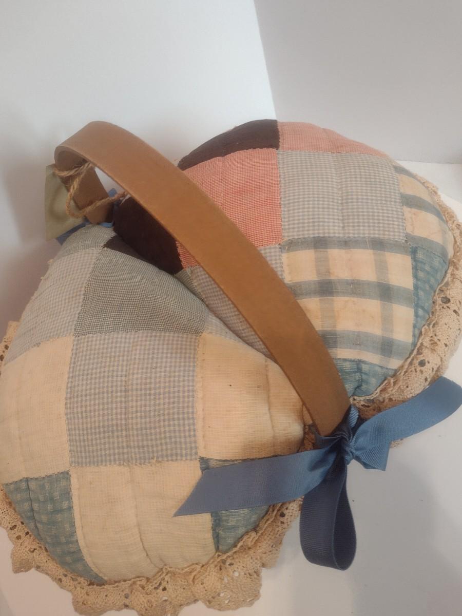 Antique Hand Sewn and Cut Quilt Top Splint Wood Sewing Basket