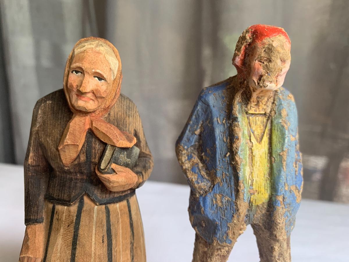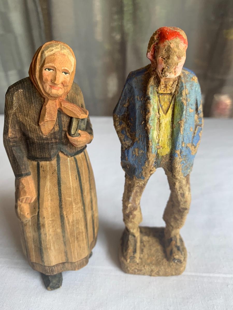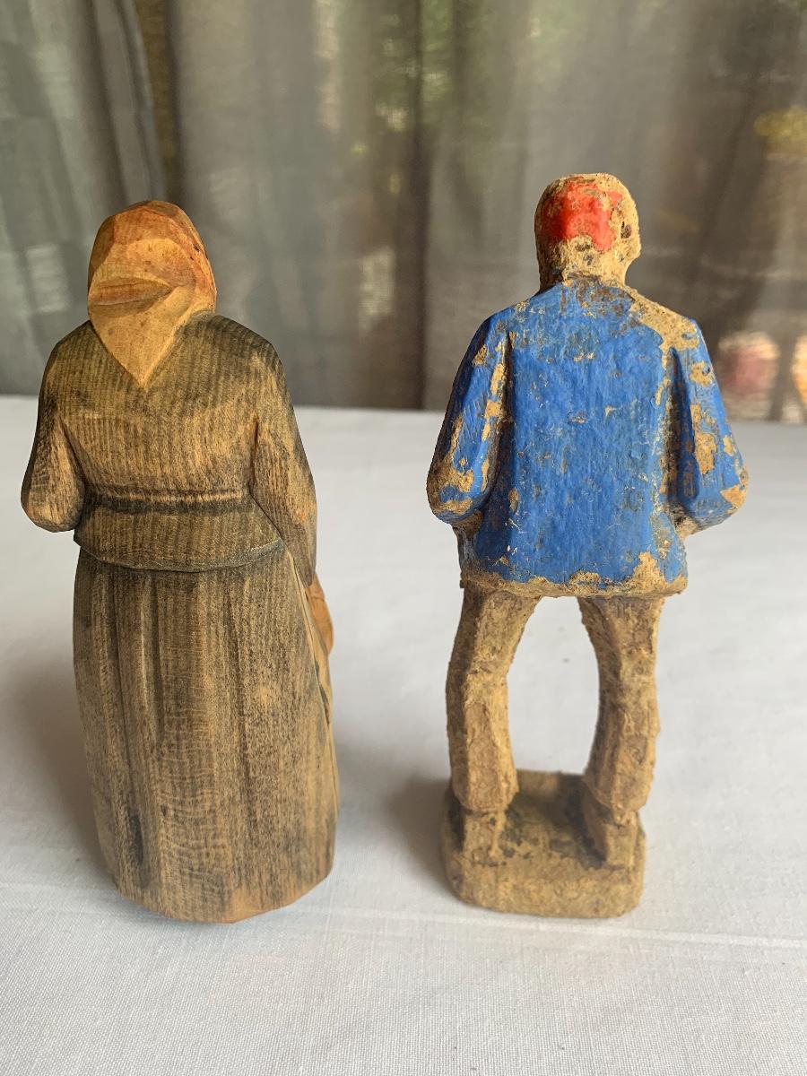 Antique Hand-carved Biblical Farm Couple - circa 1880's