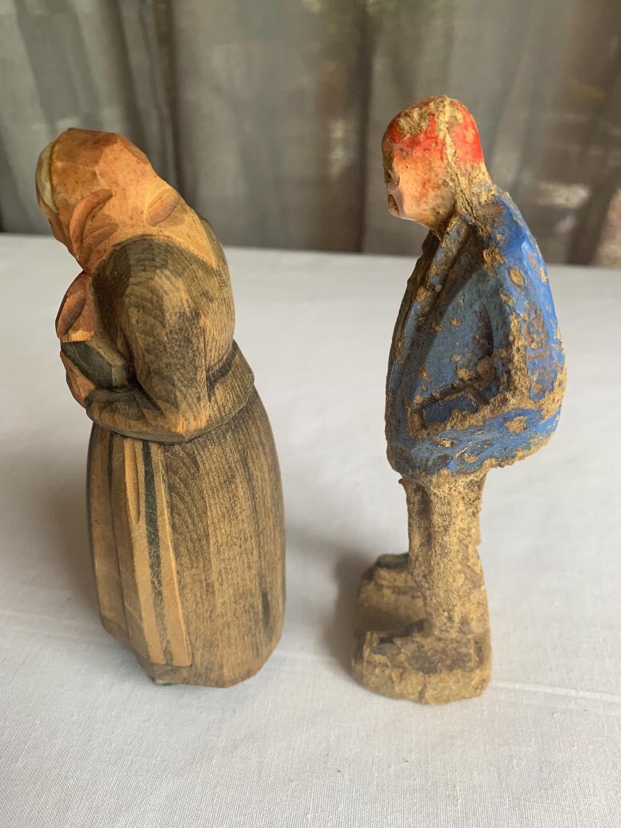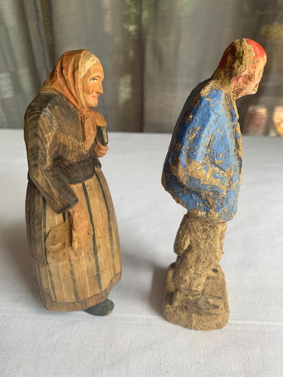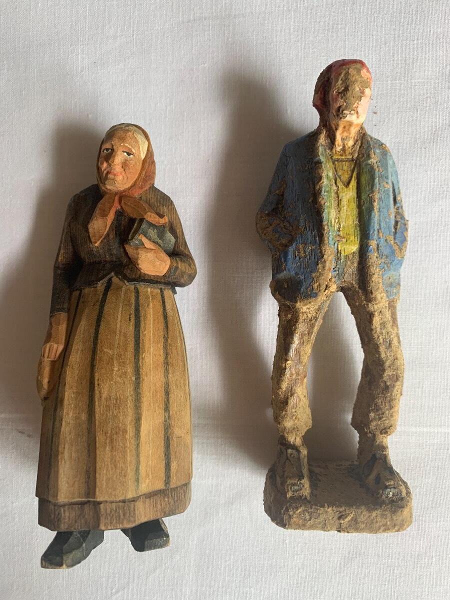 Antique Hand-carved Biblical Farm Couple - circa 1880's