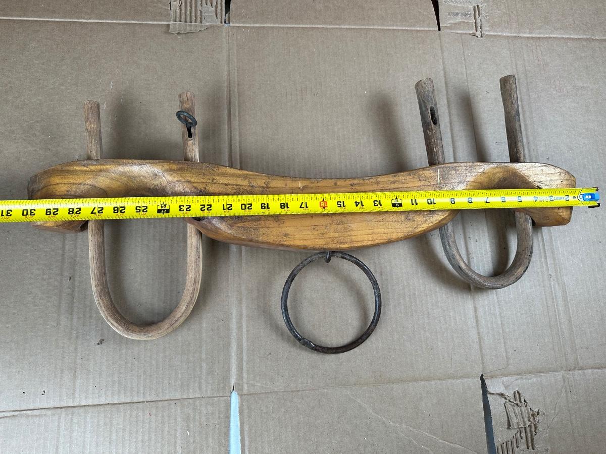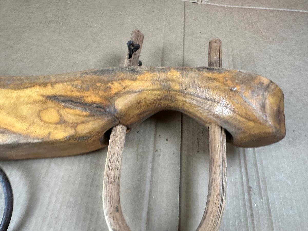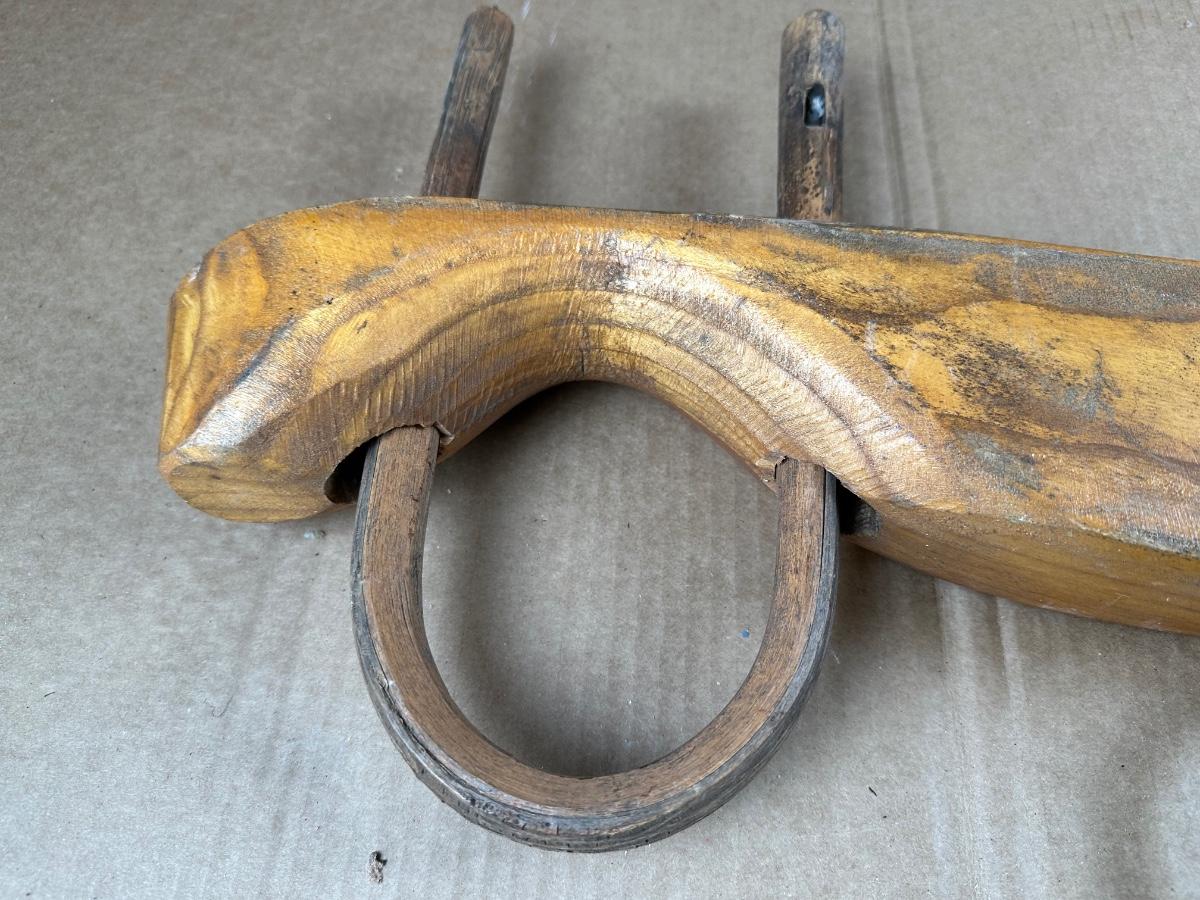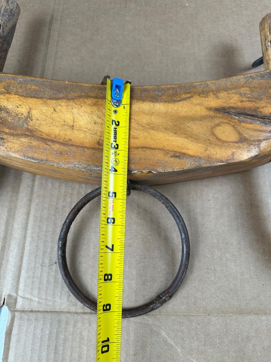 Antique Hand-Carved Wooden Ox / Mule Yoke w/ Iron Ring & Bentwood Bows – 32”