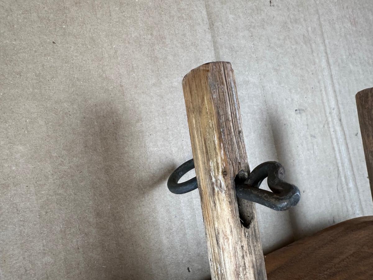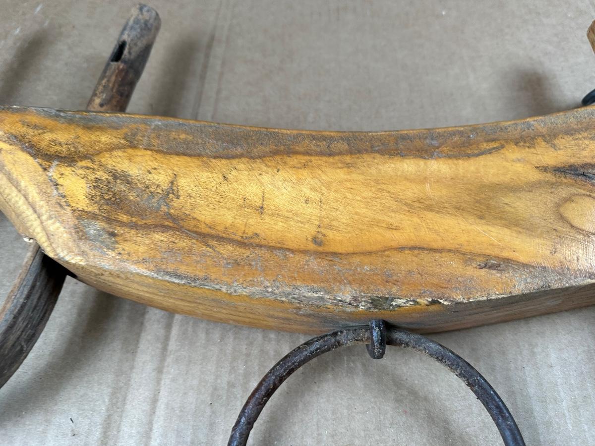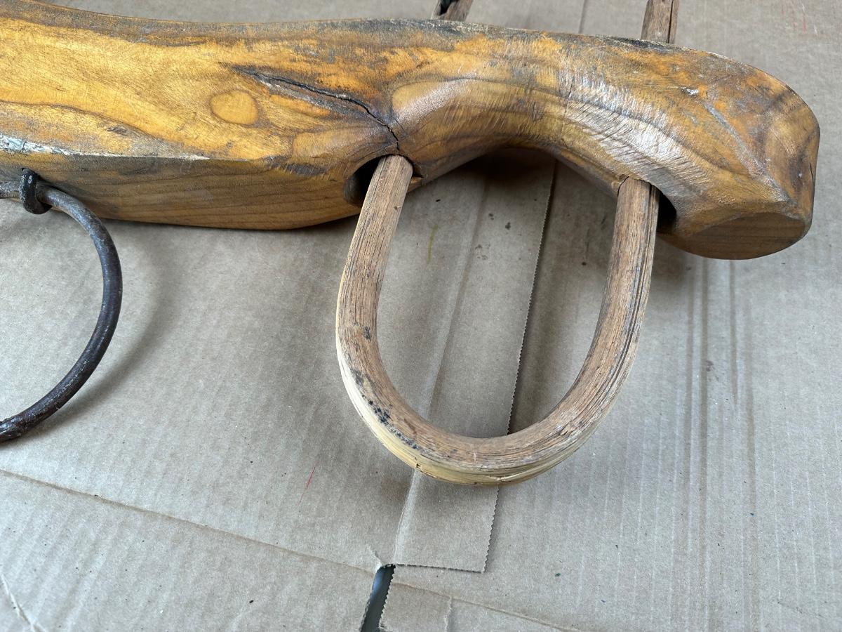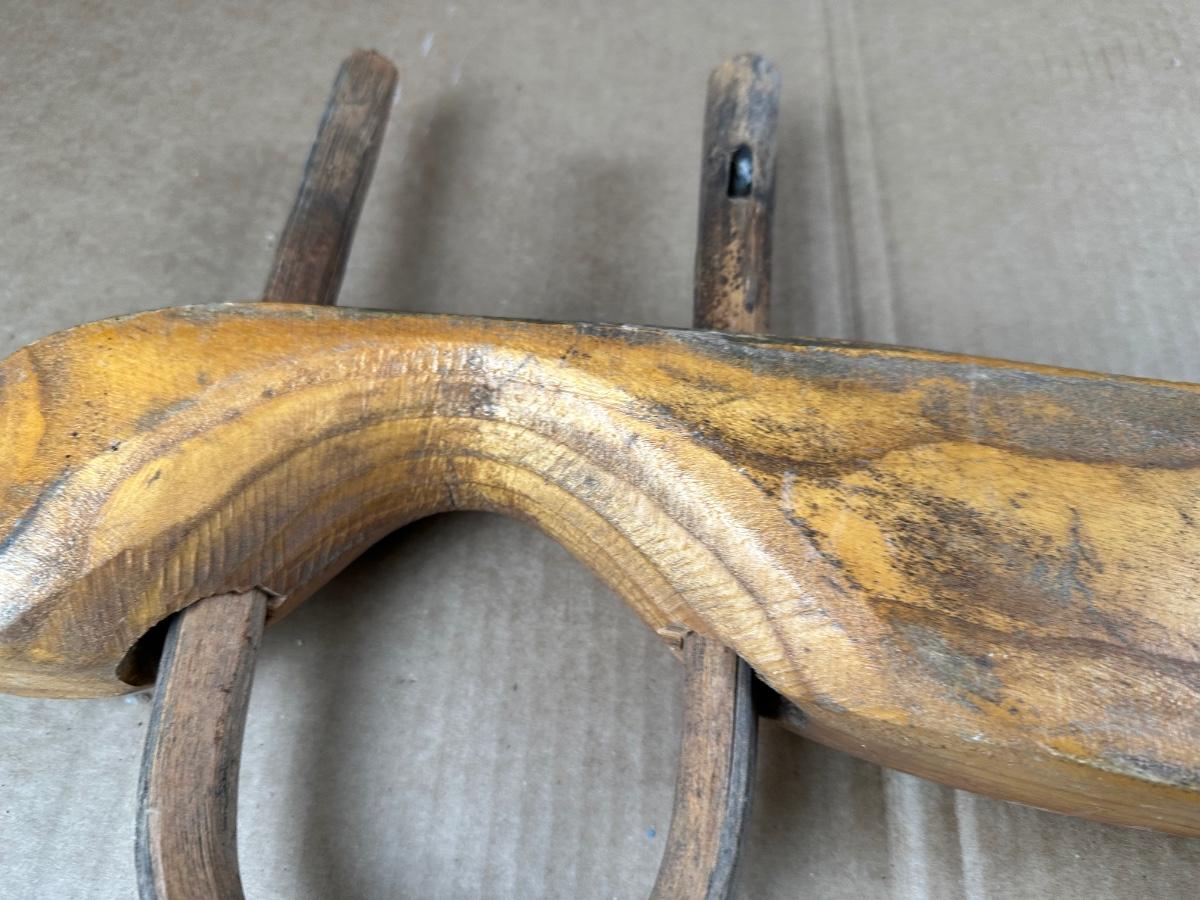 Antique Hand-Carved Wooden Ox / Mule Yoke w/ Iron Ring & Bentwood Bows – 32”