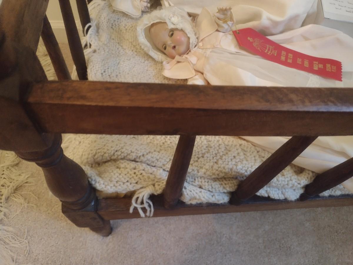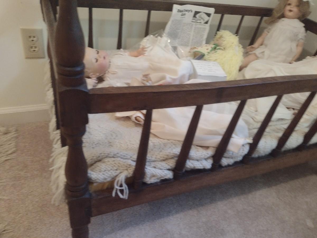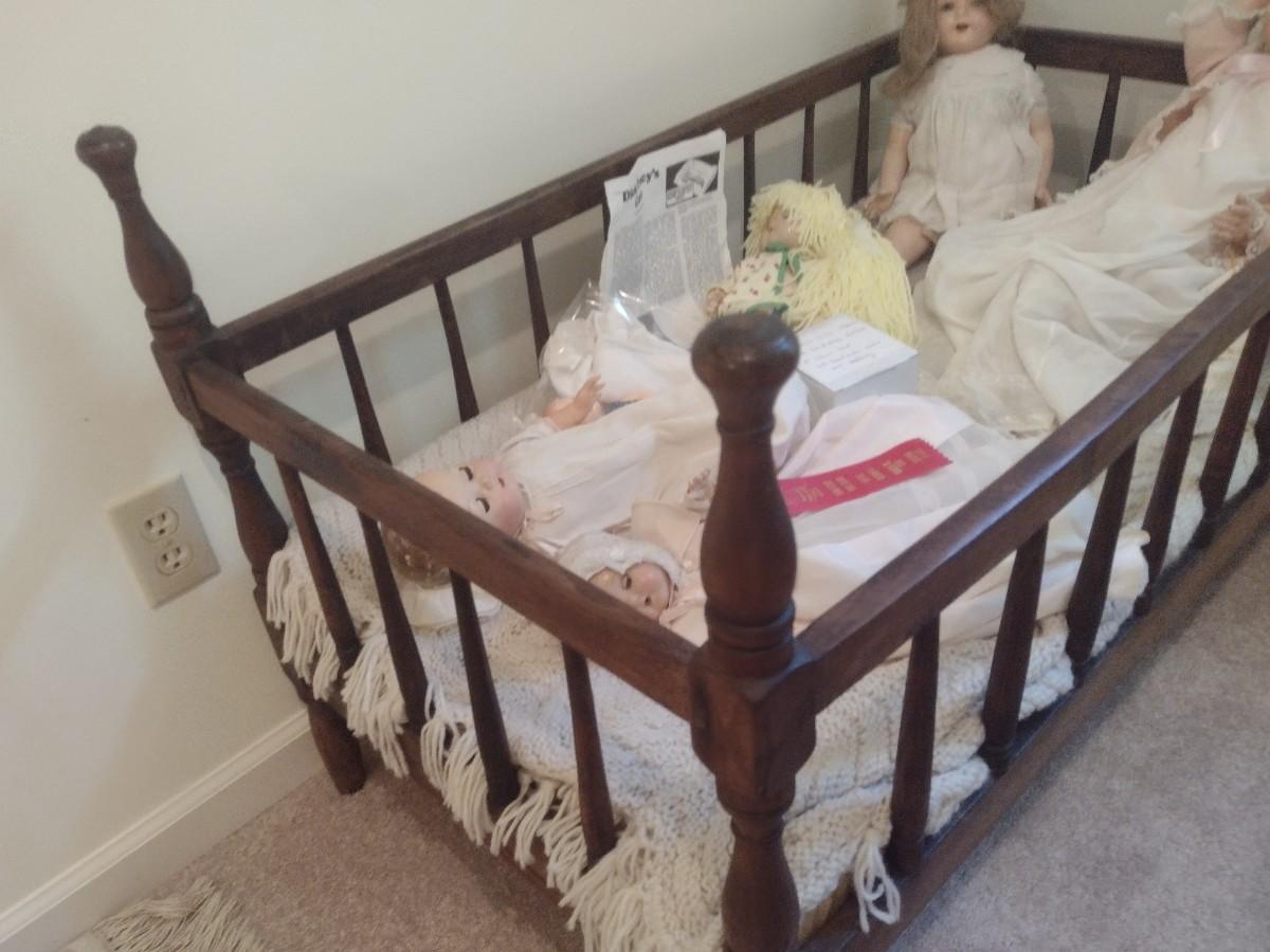Antique Hand-Crafted Solid Wood Doll Crib (Dolls not included)