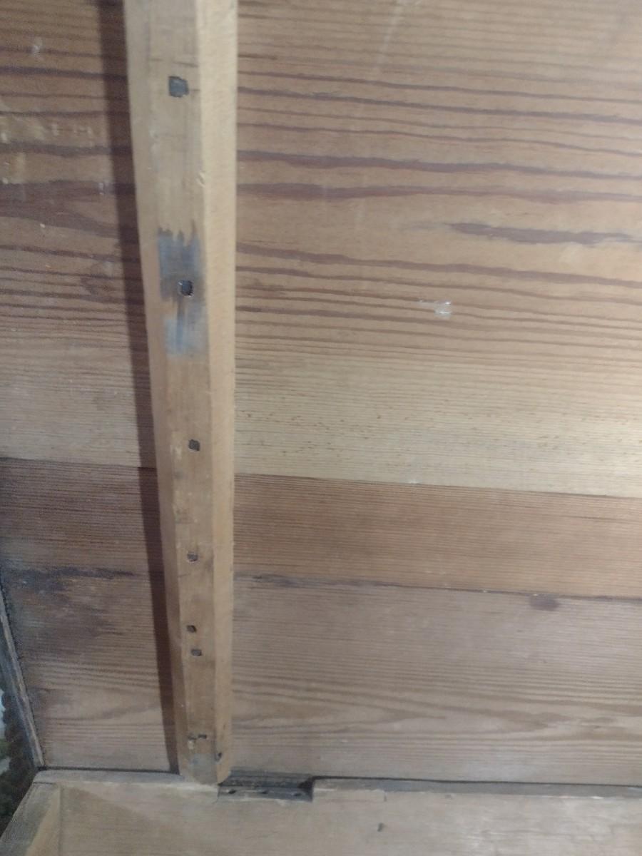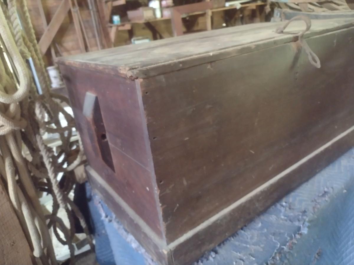 Antique Hand-Crafted Wood Storage Chest. Lid will need the hinges repaired (No contents)