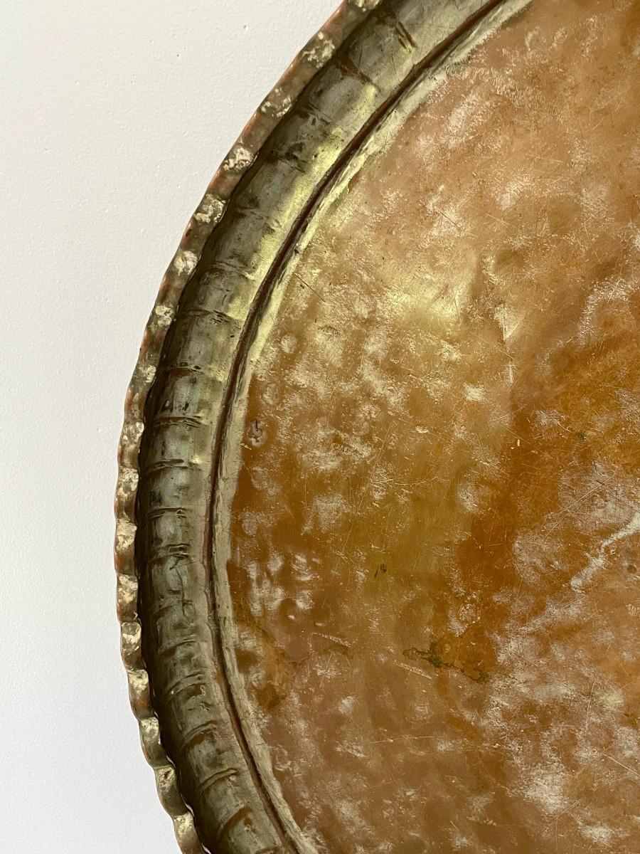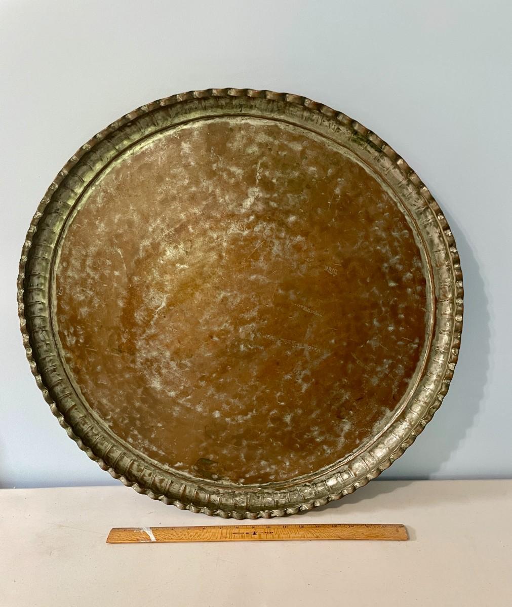 Antique hand-hammered copper Qajar table-top serving tray