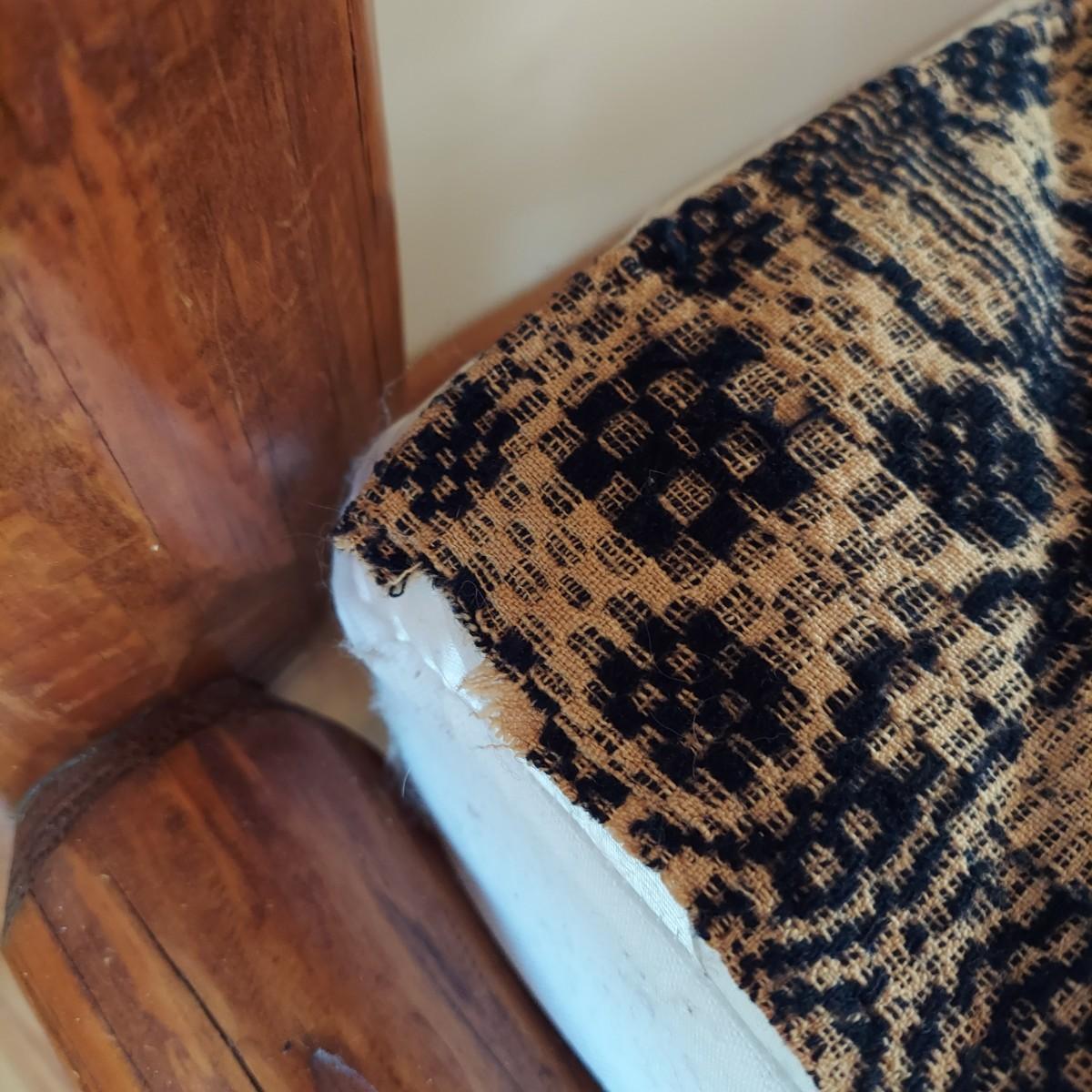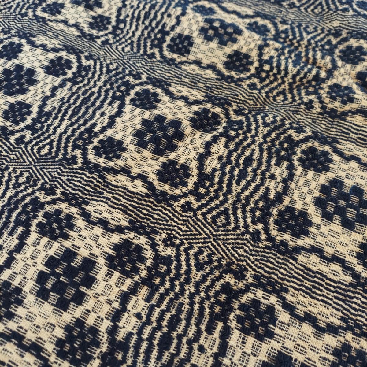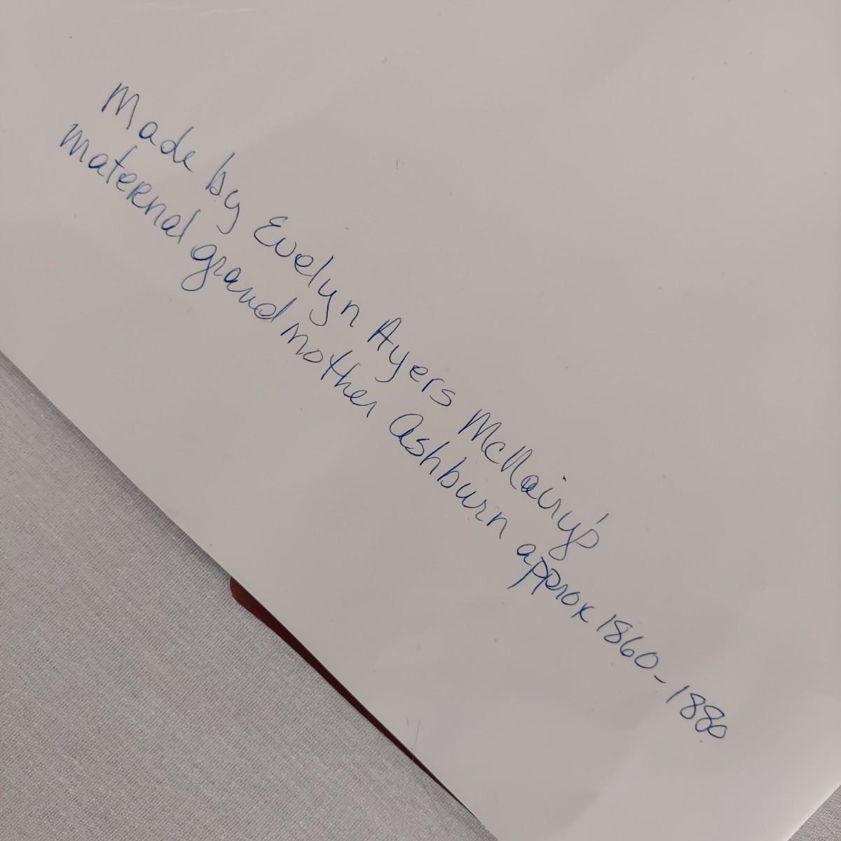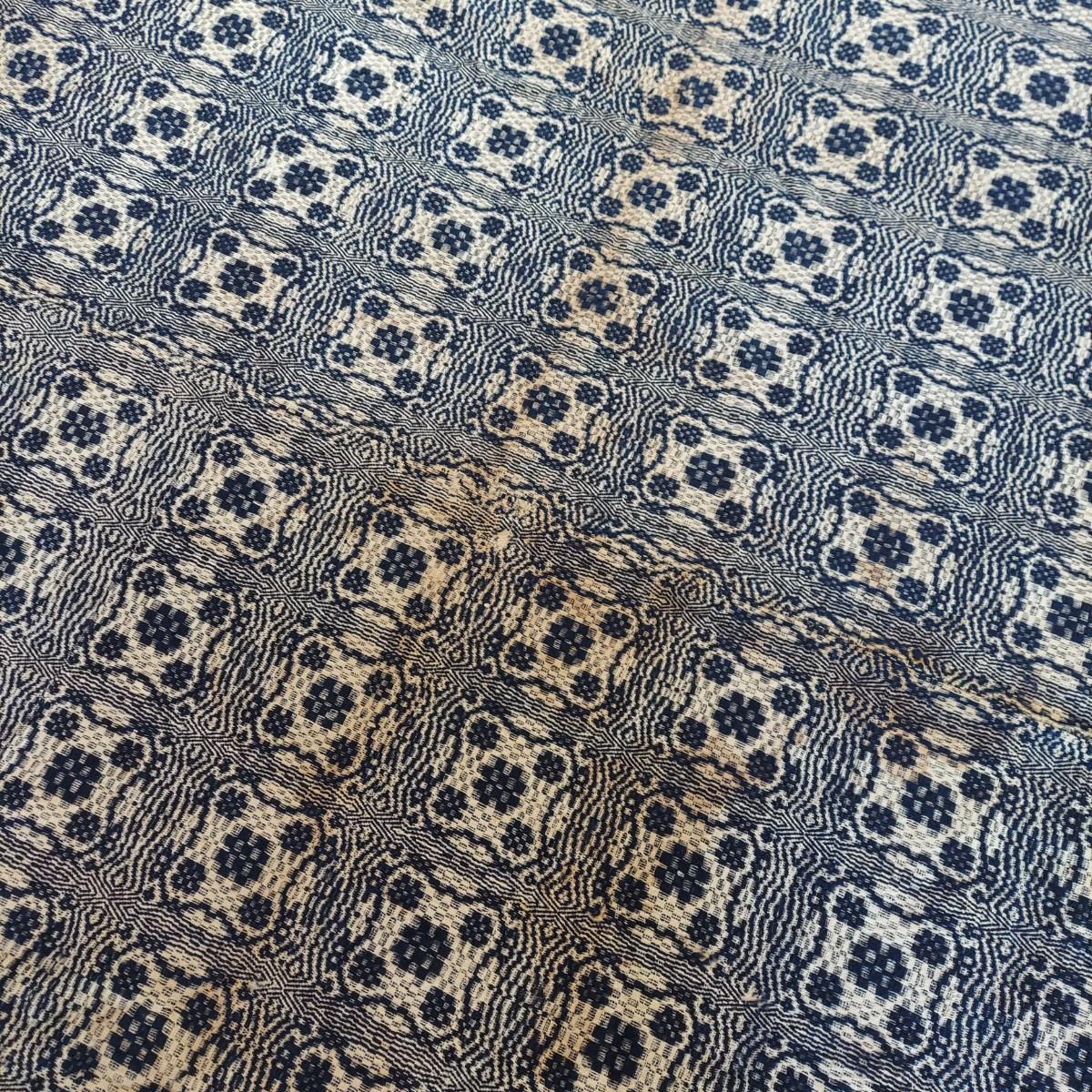 Handmade coverlet blanket that appears to be handmade and quite old. Seller states its from the late 1800s. It measures 59” x 80” and is shown on a queen bed. There is some discoloration along the lines of where it was folded. Please see photos for details. Shipping available