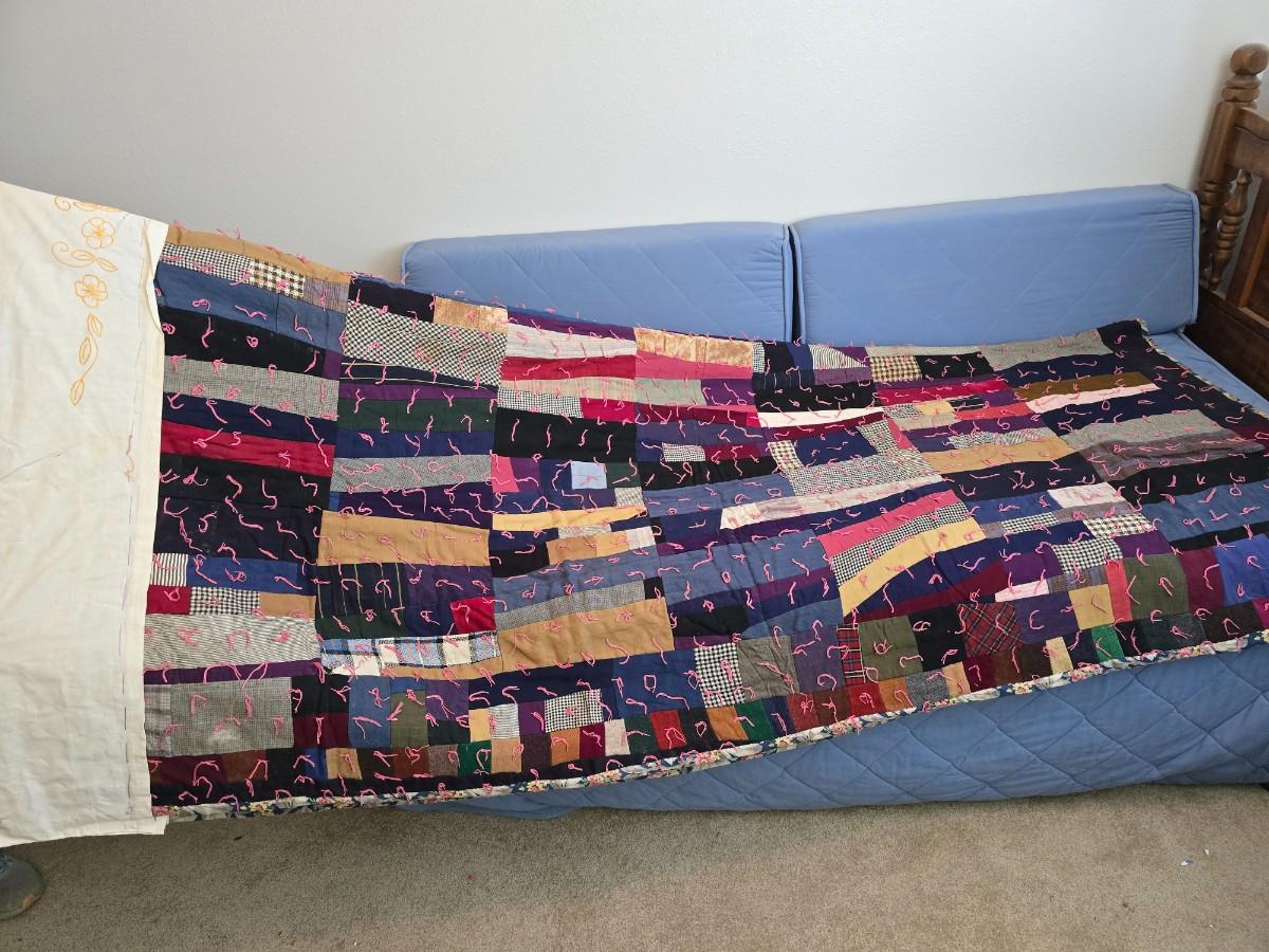 Antique handmade "Crazy Quilt" Patchwork blanket