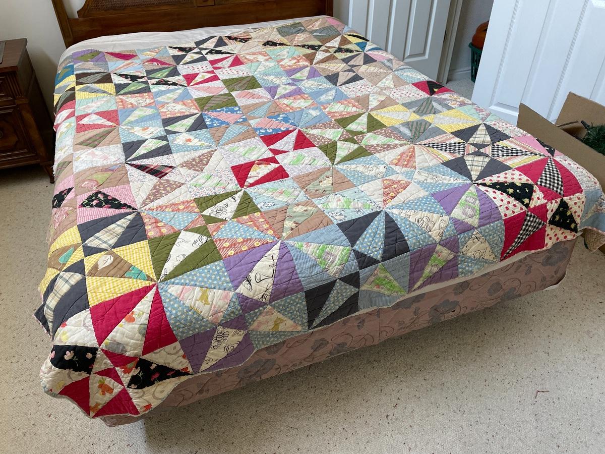 #42 Antique Handmade Patchwork Cotton Quilt WORN