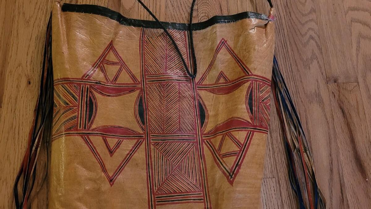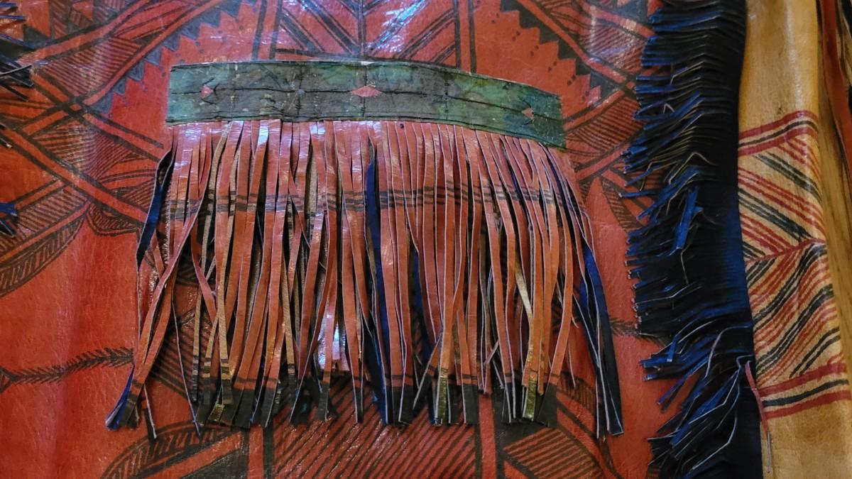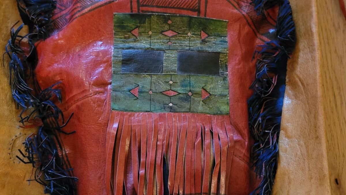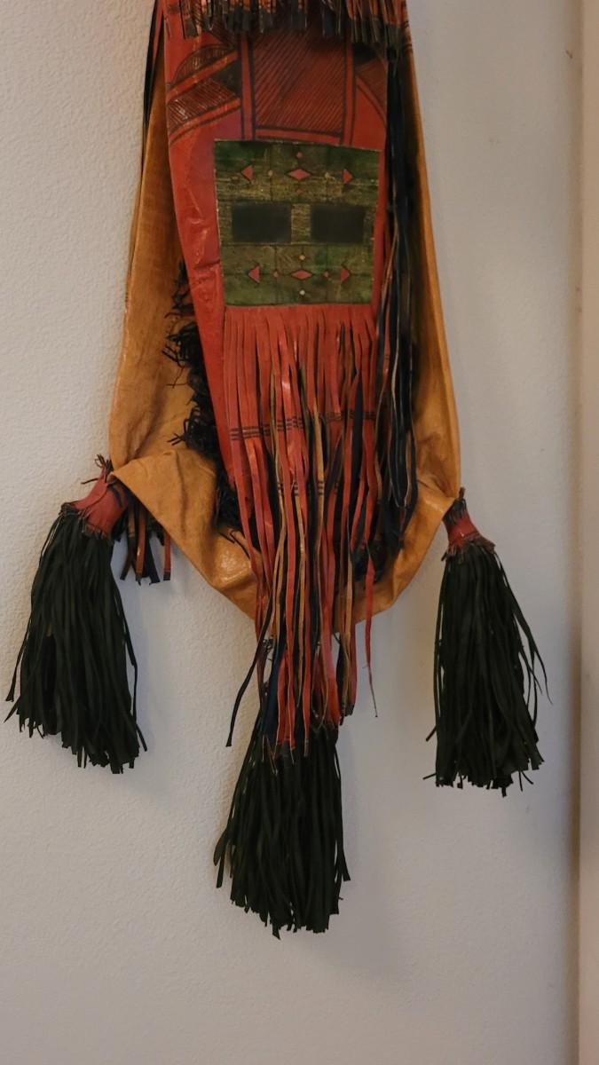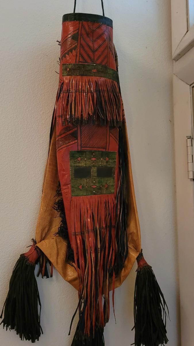 In Berber-speaking Tuareg society women decorate the leather saddlebags used to carry salt during migrations across the desert. They work the goatskin with impressed, stitched, or excised motifs, and attach tassels and fringe that shake with the camel’s movement for added visual impact.