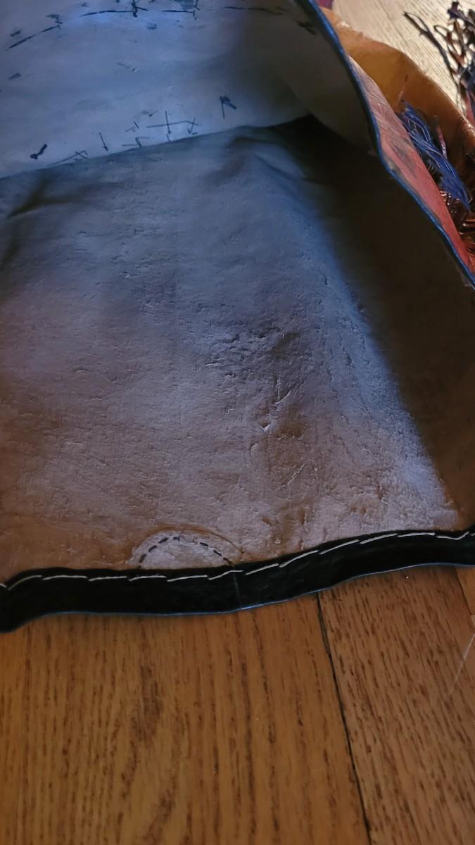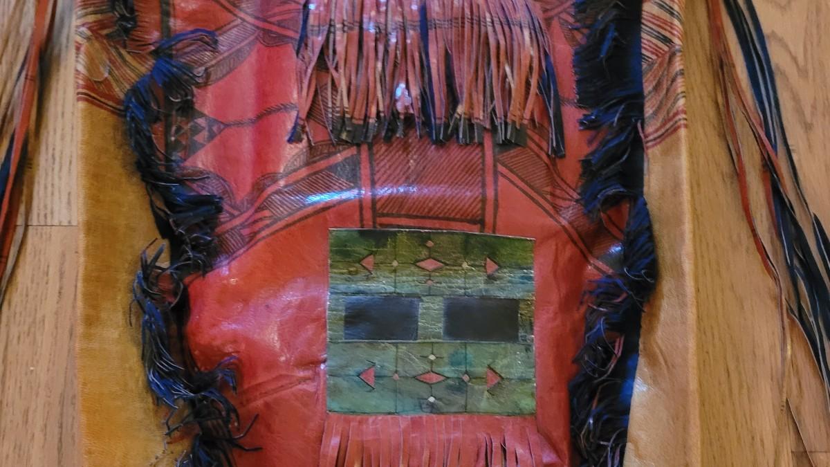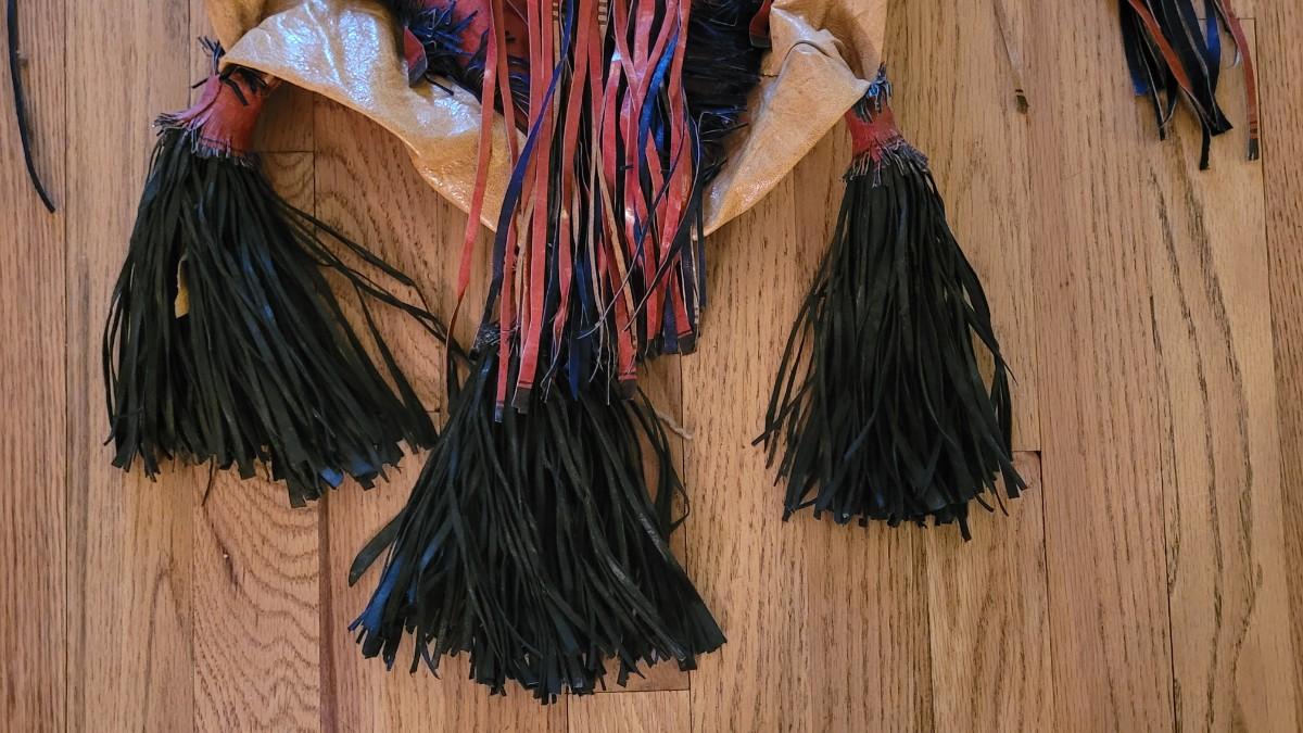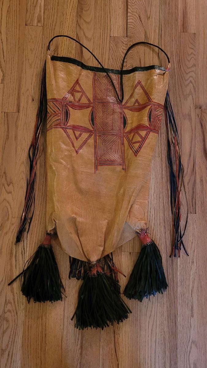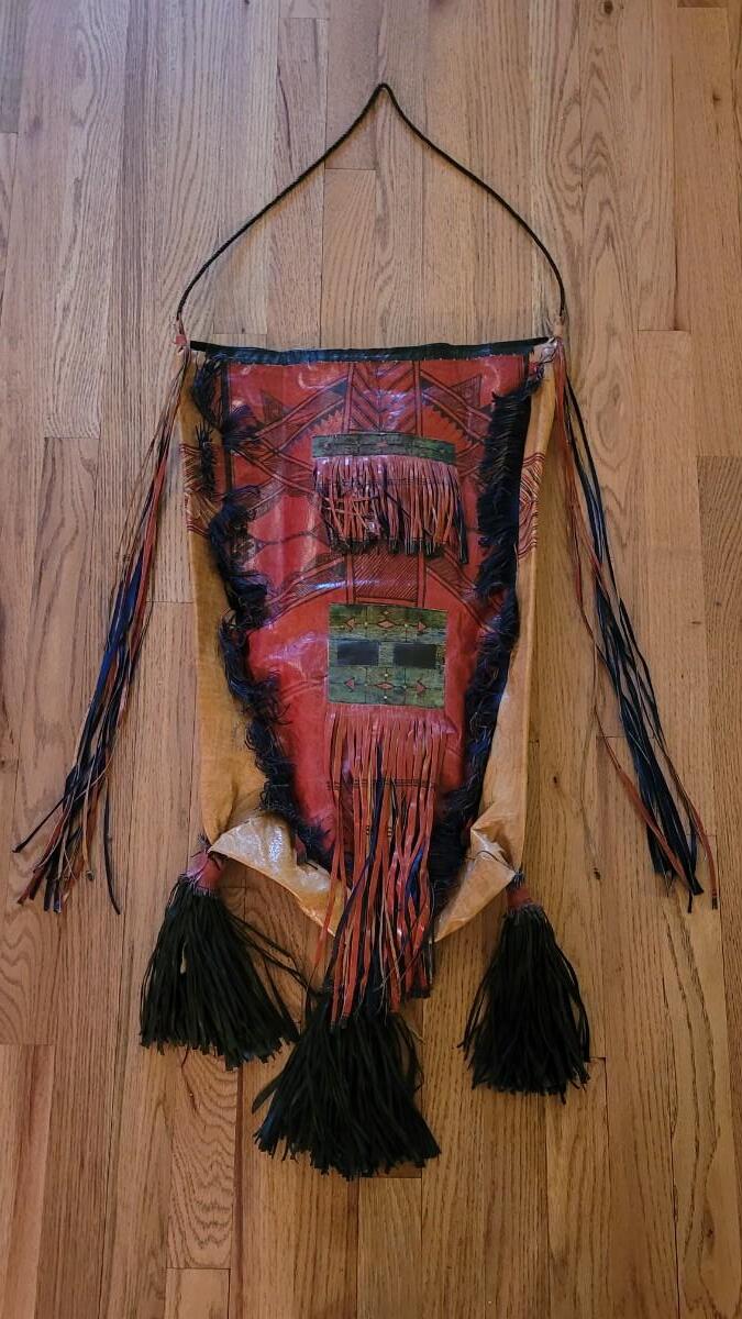 In Berber-speaking Tuareg society women decorate the leather saddlebags used to carry salt during migrations across the desert. They work the goatskin with impressed, stitched, or excised motifs, and attach tassels and fringe that shake with the camel’s movement for added visual impact.