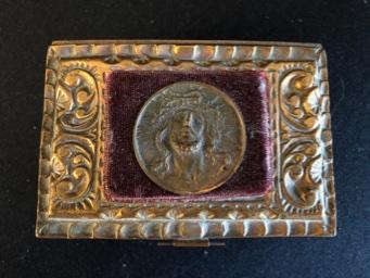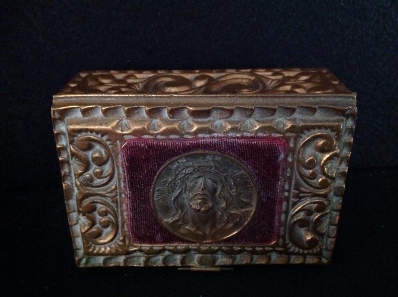 Antique/Vintage Mexican Copper Stamped Catholic Jesus Rosary Box