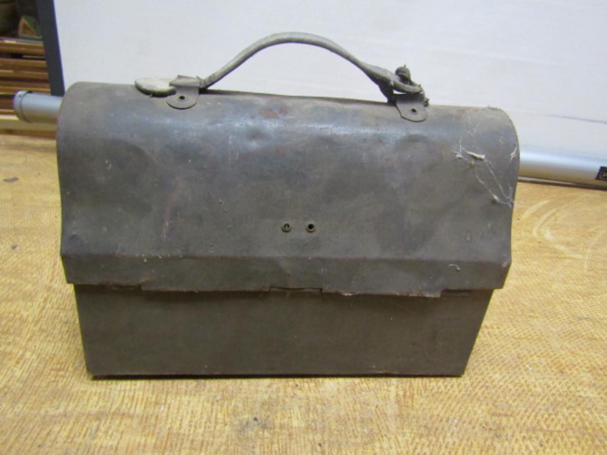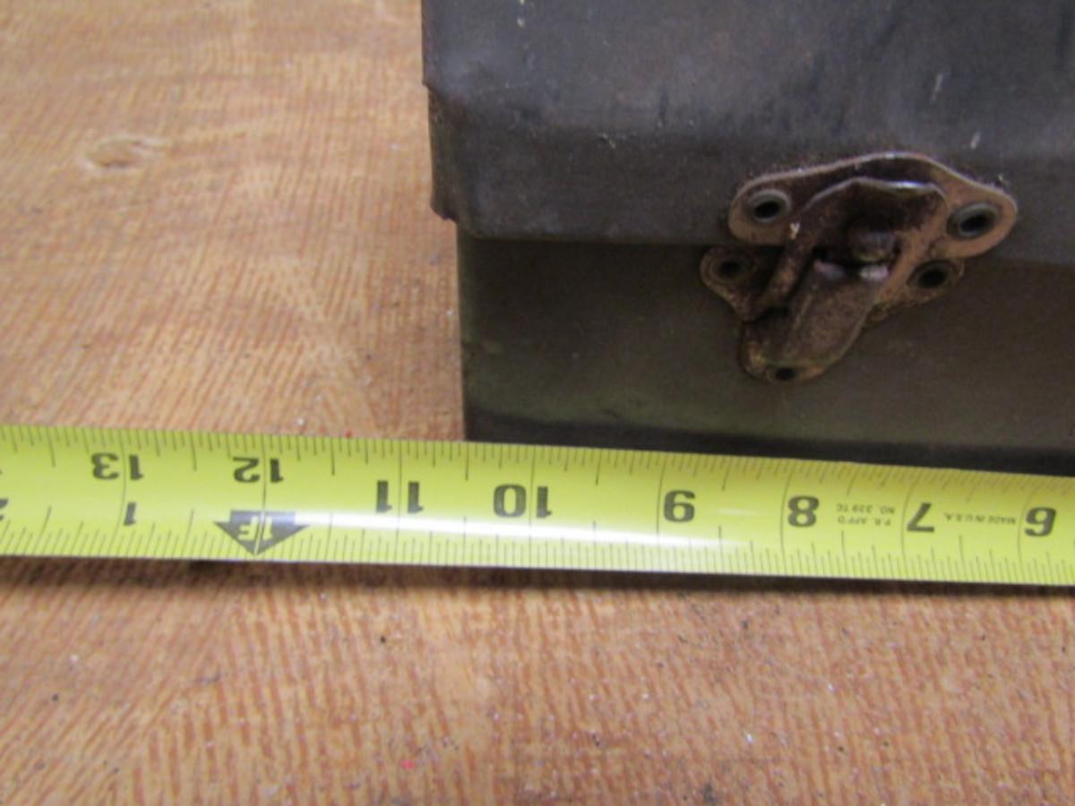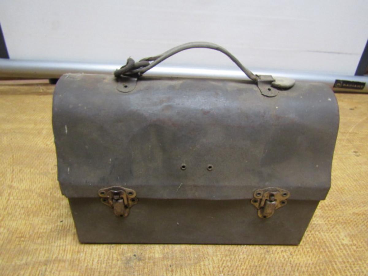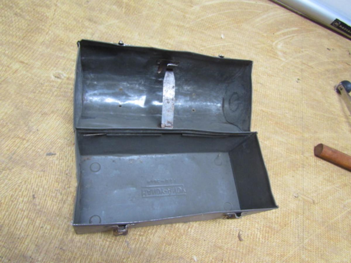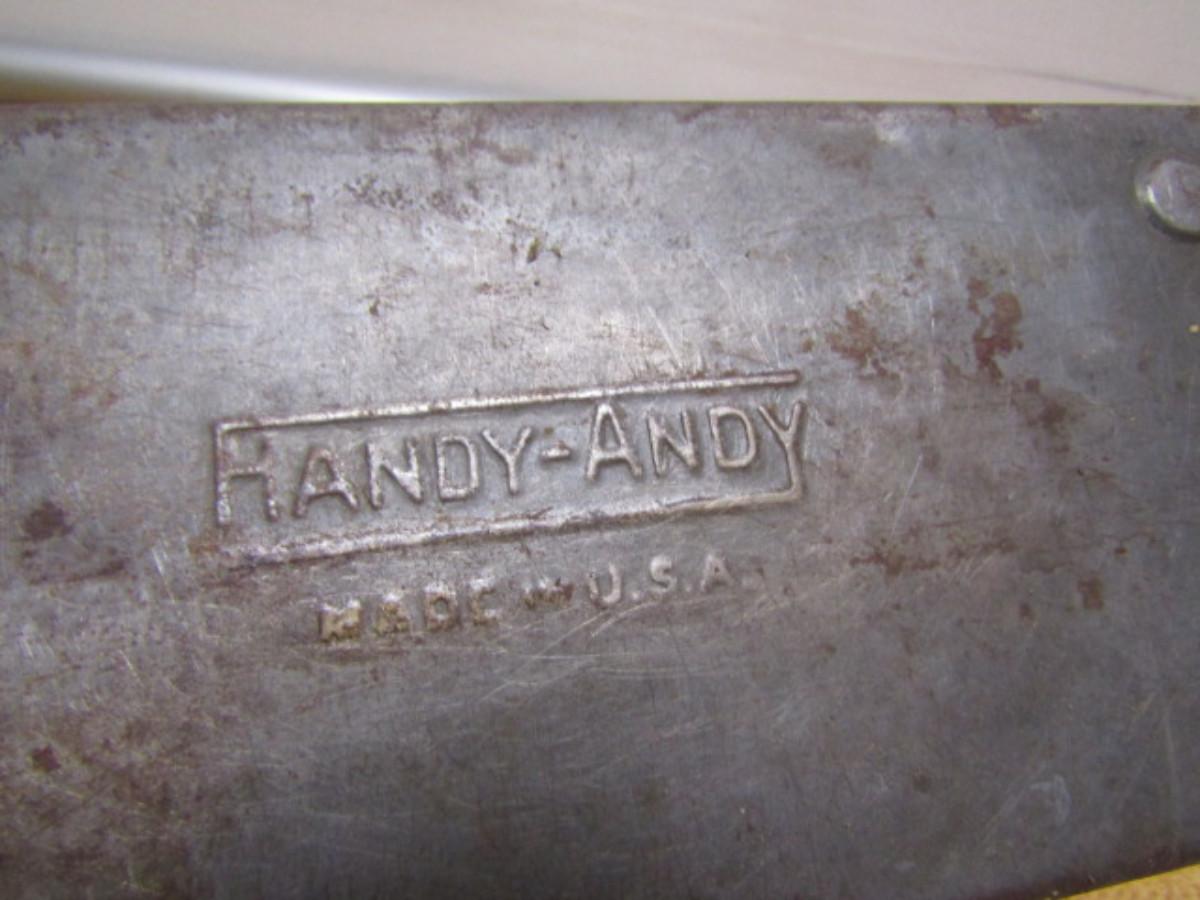 Antique Handy-Andy Metal Lunch Box. Item is in heavily used condition and has dents, rust, and scratching.