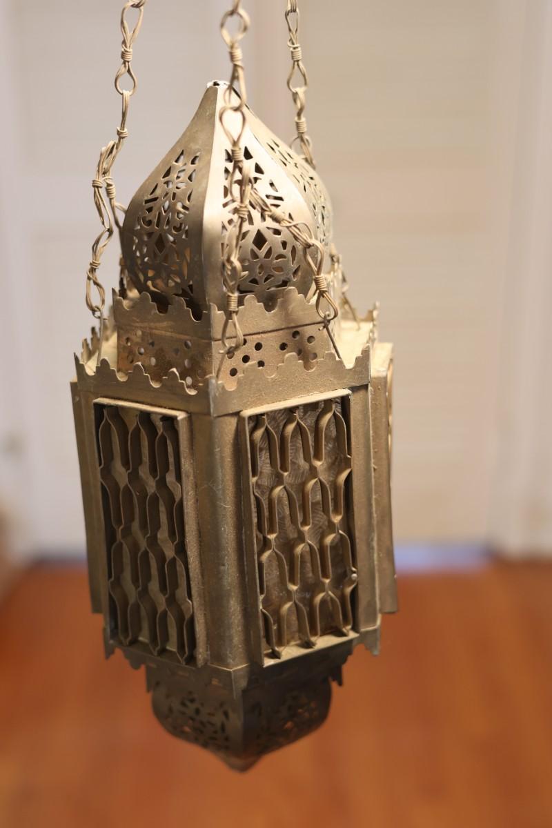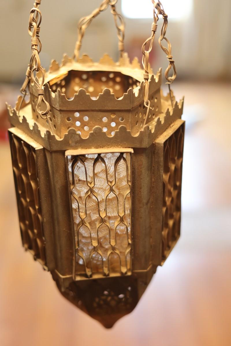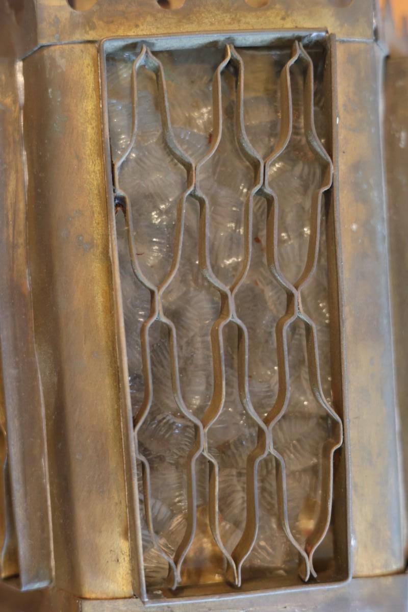 The top part of the lantern is not attached and needs to be fixed, but it does sit on top as seen in the picture. Glass is all in tact..