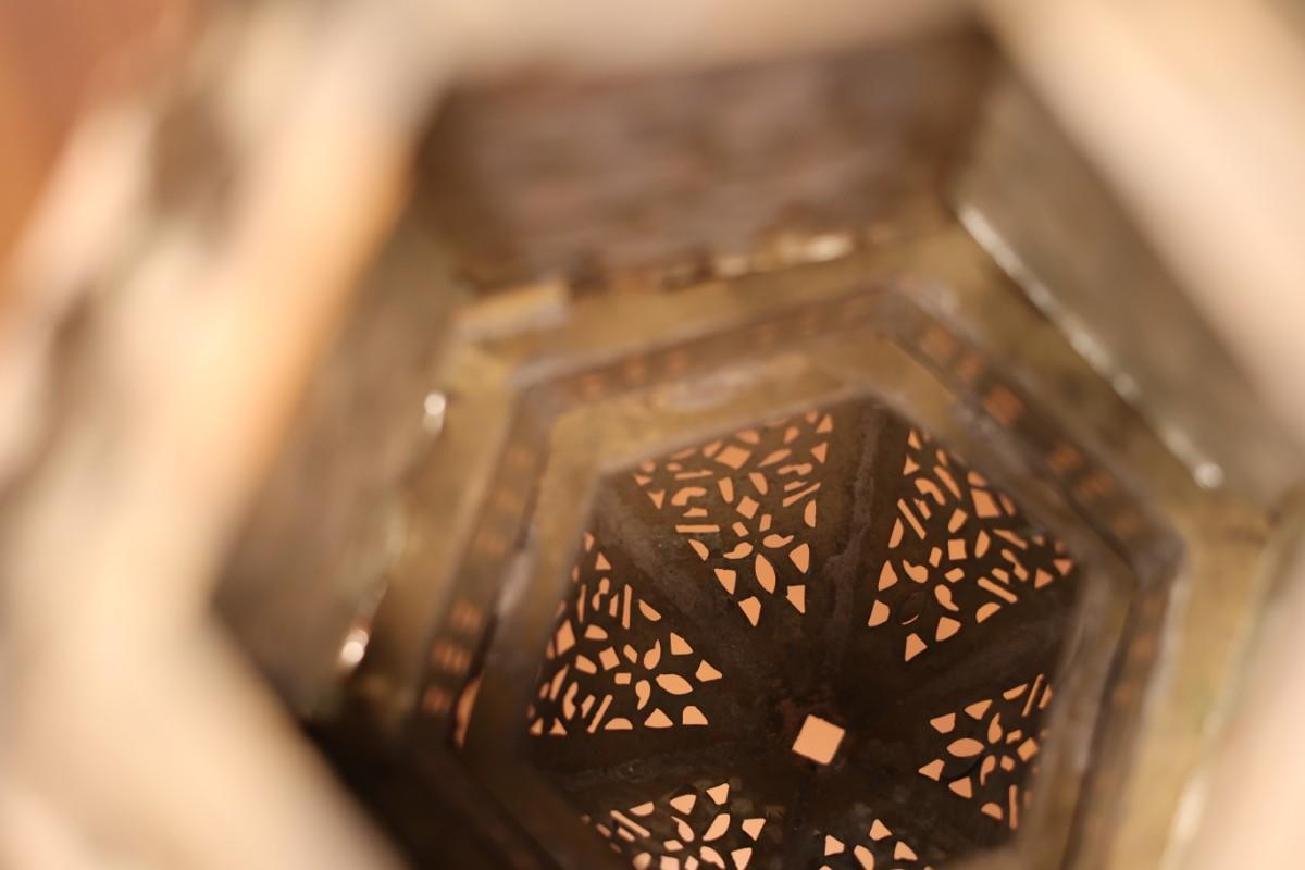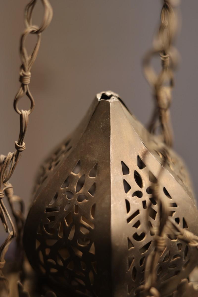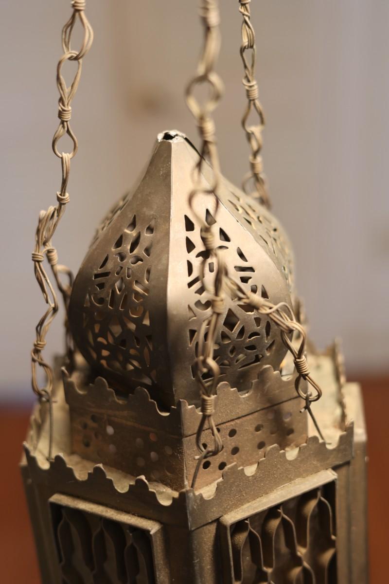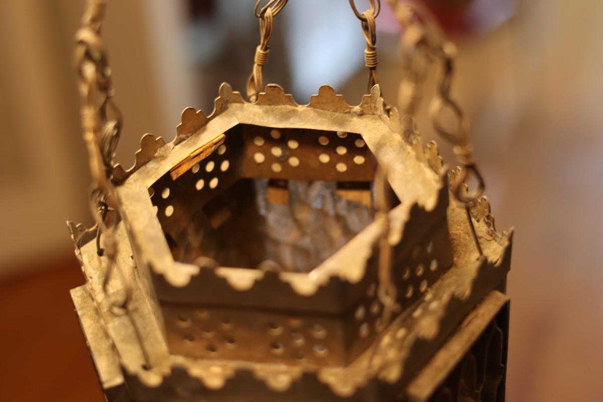 The top part of the lantern is not attached and needs to be fixed, but it does sit on top as seen in the picture. Glass is all in tact..