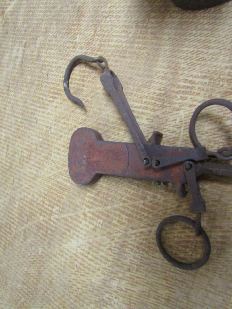 Antique Hanging Tobacco/Cotton Scale with Two Weights