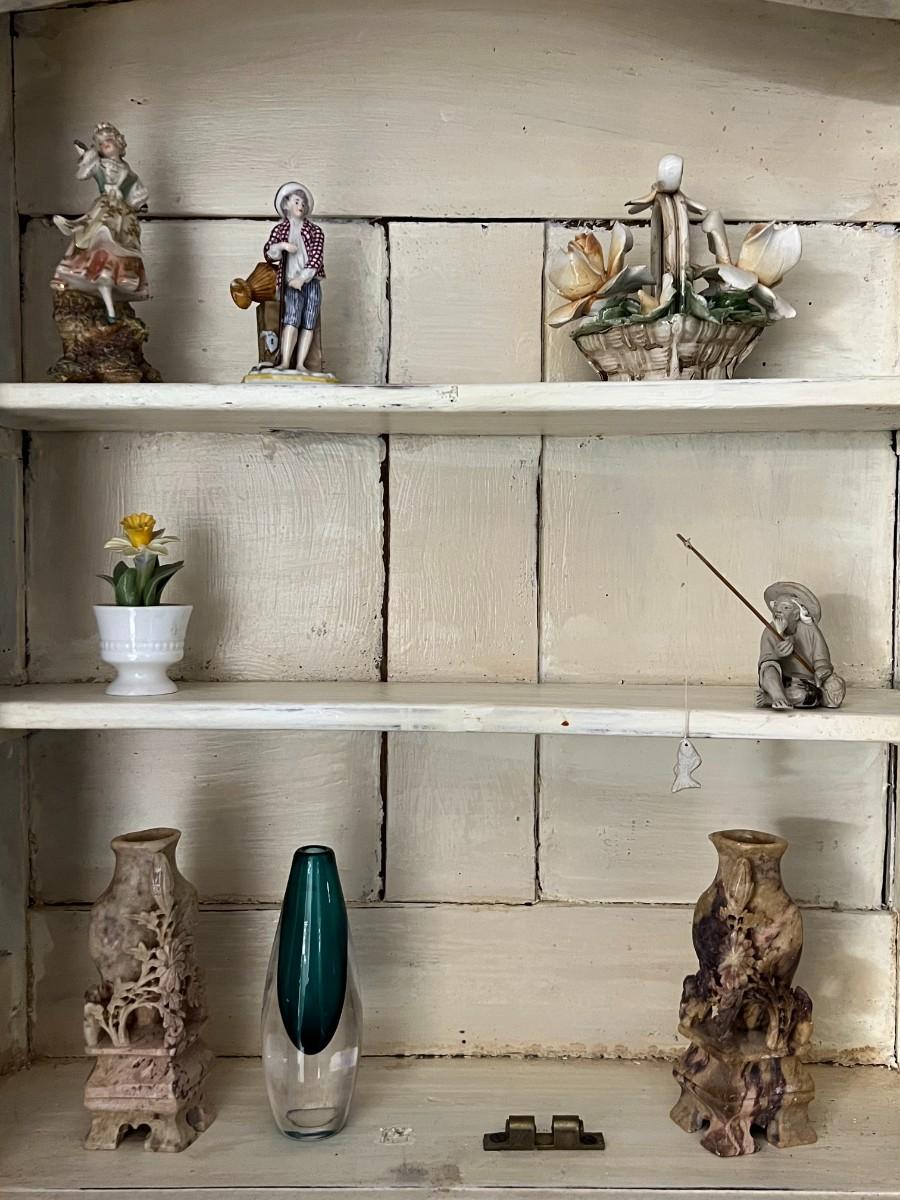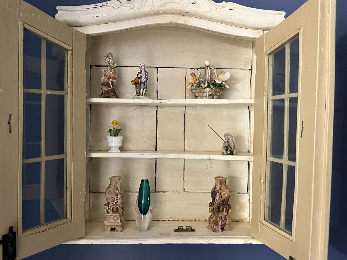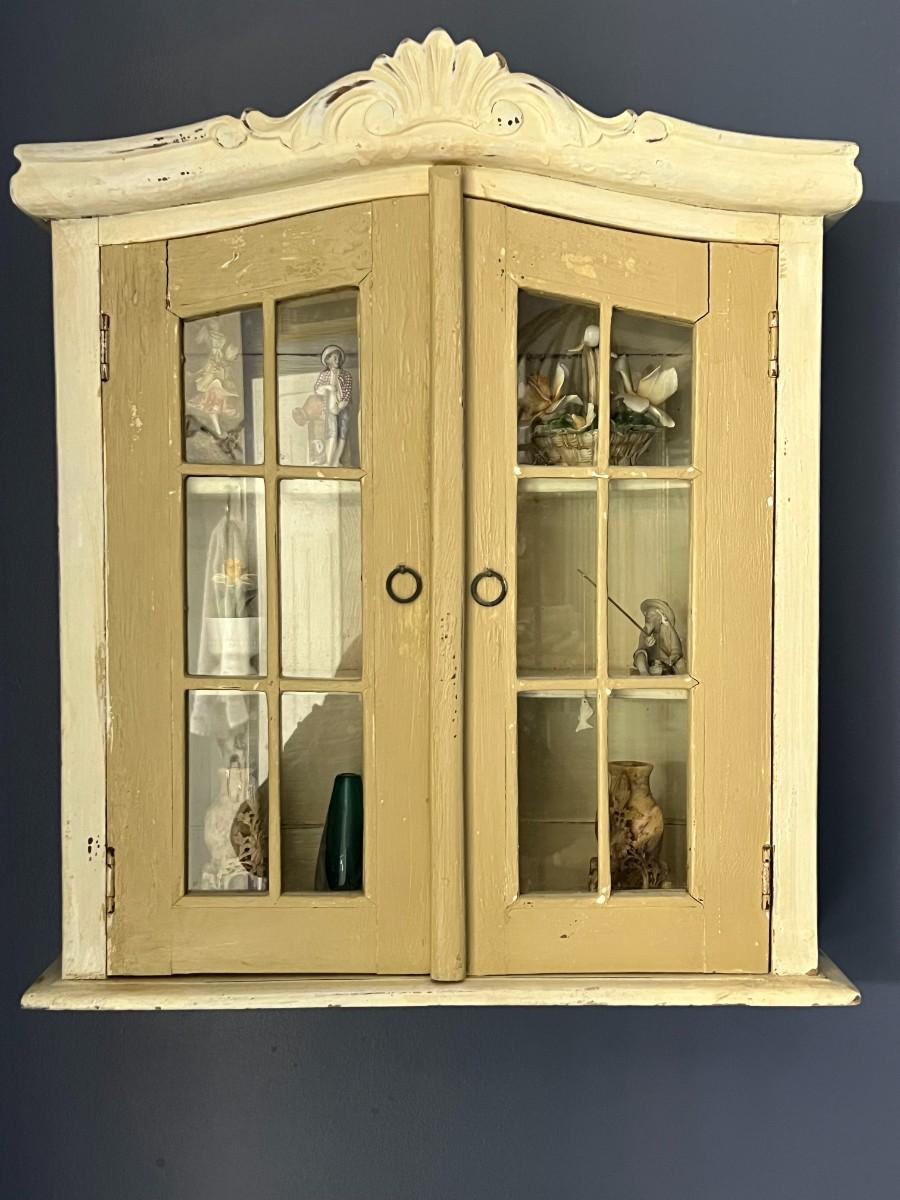 Antique Hanging Wall Cabinet w/ Contents