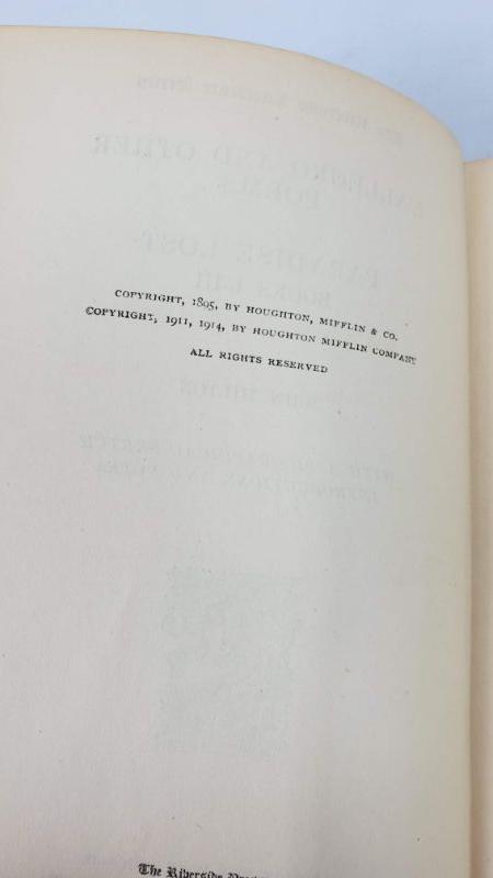 Antique Hardback Book 1914: Milton's L'Allegro & Other Poems Paradise Lost Books