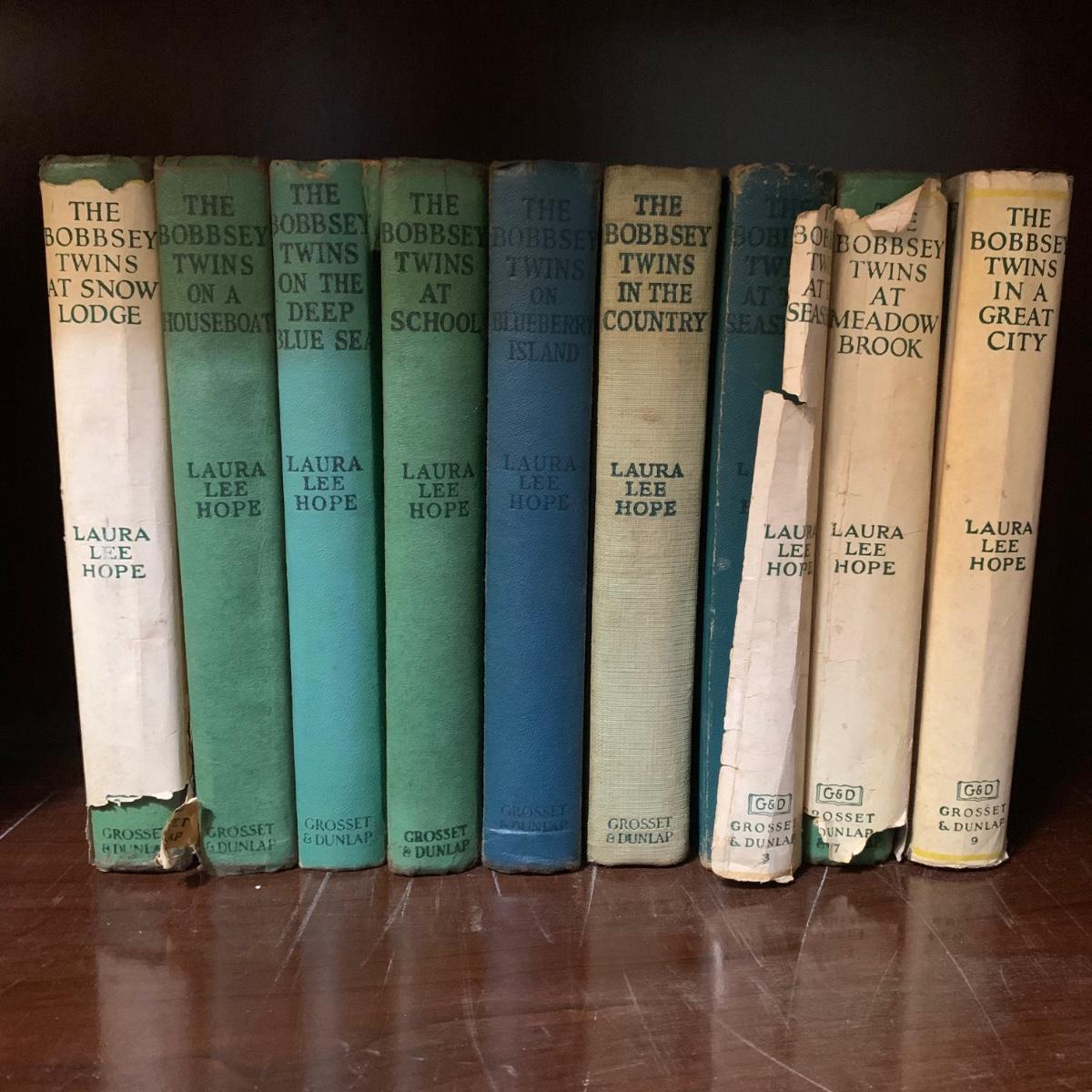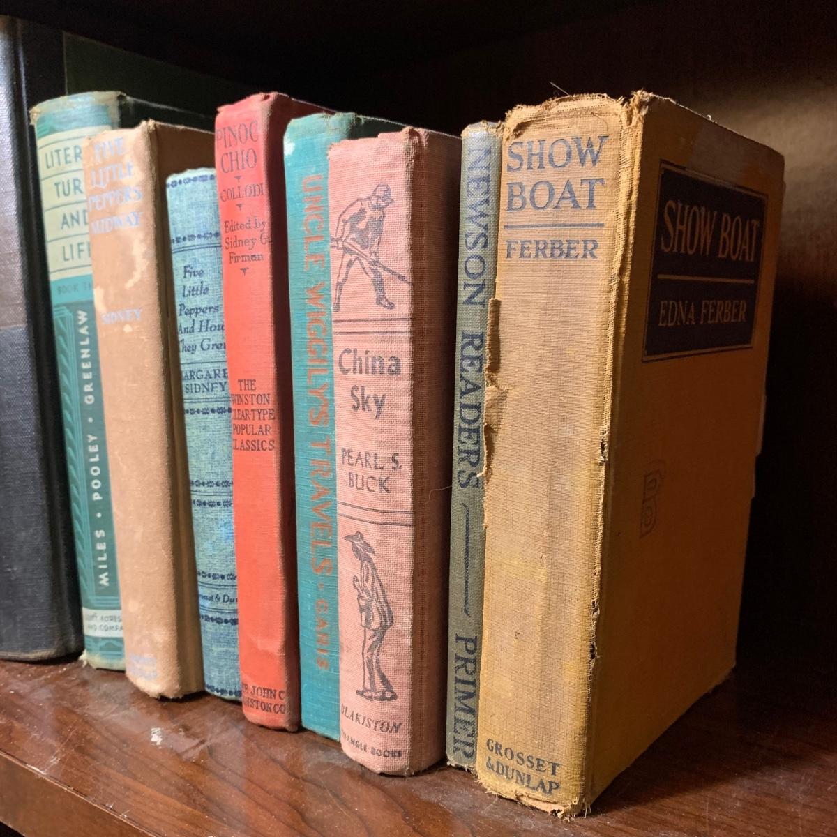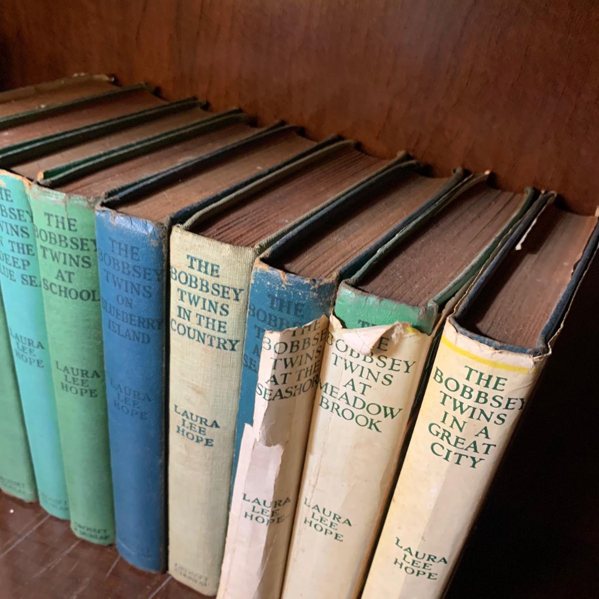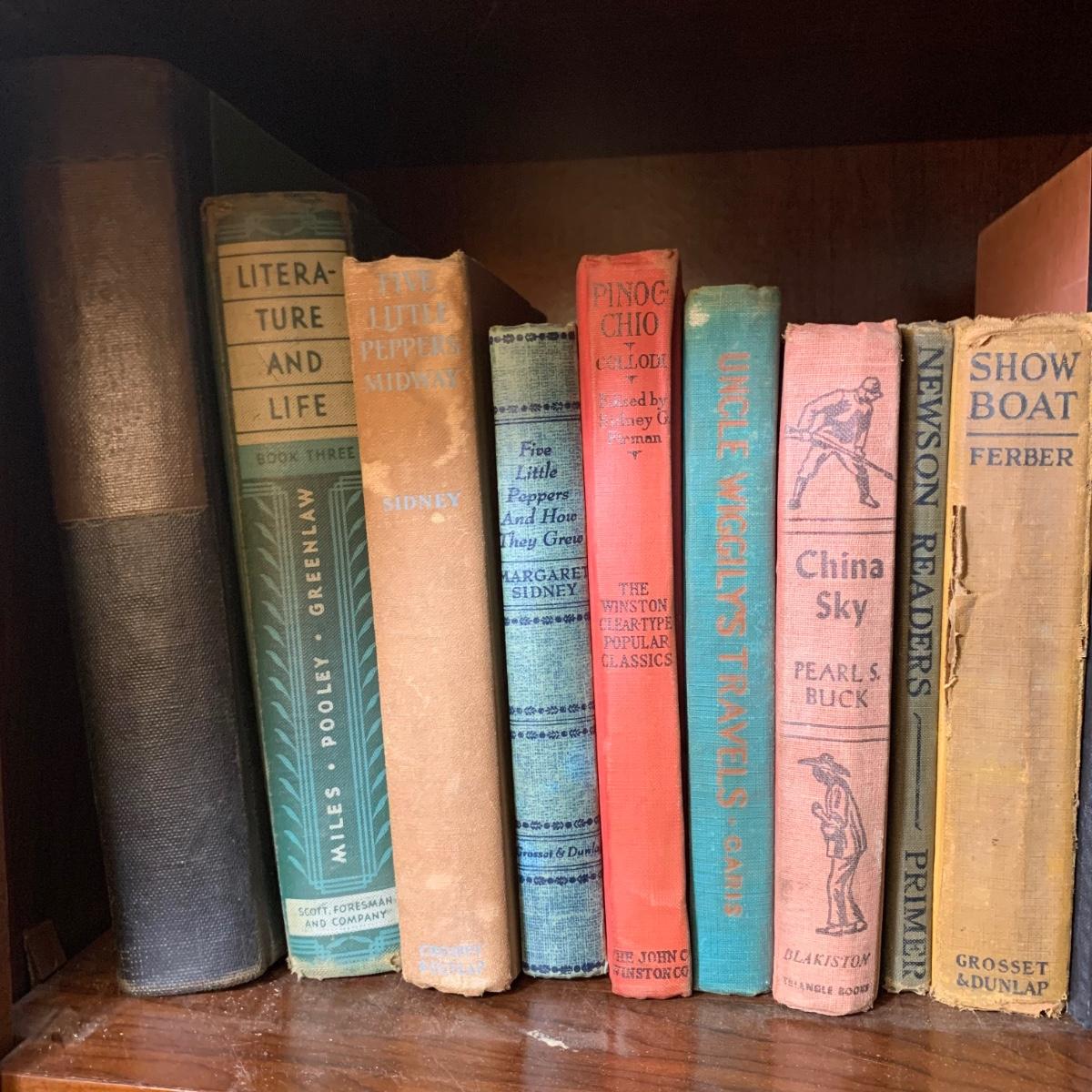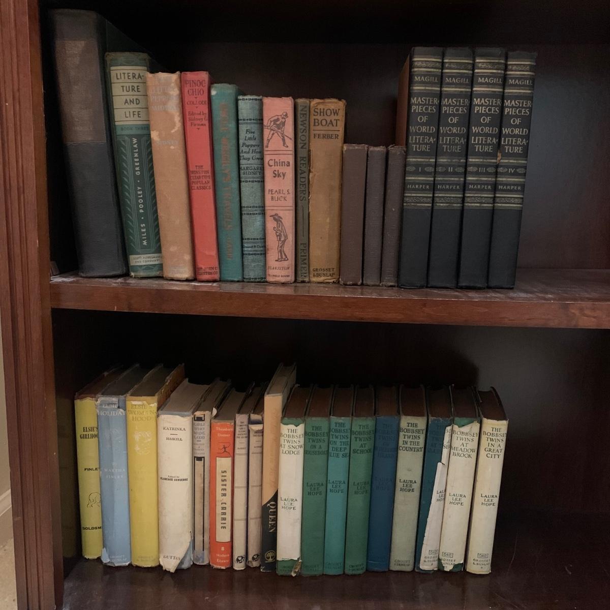 30+ mostly antique (though some vintage) hardcover books. Most books are all a bit worn, which adds to their antique charm. Most books with torn dust jackets have actual covers that are in much better condition. Included in this collection: a nine book set of “The Bobbsey Twins”, three “Elsie” books by Martha Finley, a four book Harper set of “Masterpieces of World Literature”, three small brown Macmillan Pocket Classic books including “The Last of the Mohicans”, “The Scarlet Letter”, & the “House of Seven Gables”, as well as two “Five Little Peppers” books, “Pinocchio”, “China Sky”, and more.