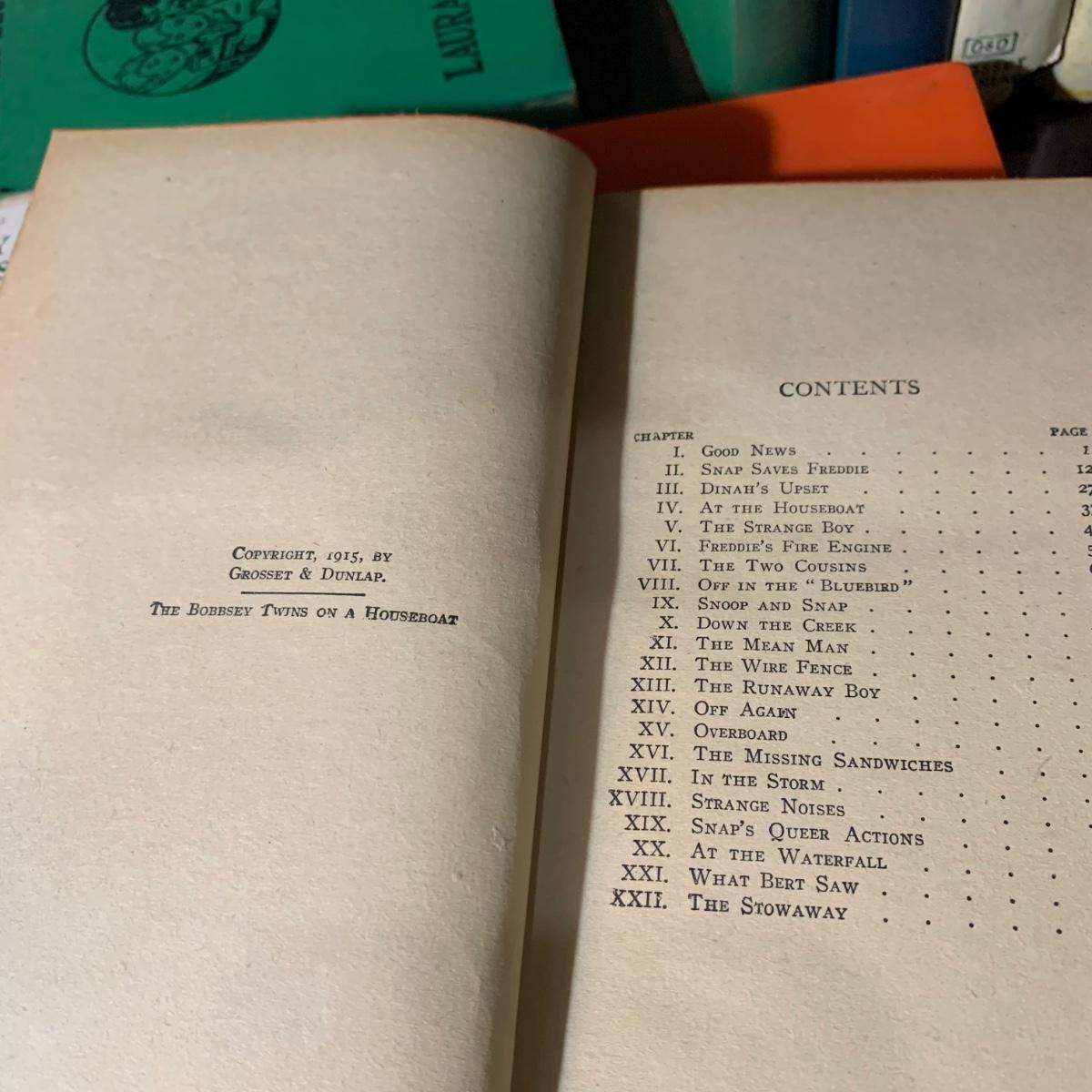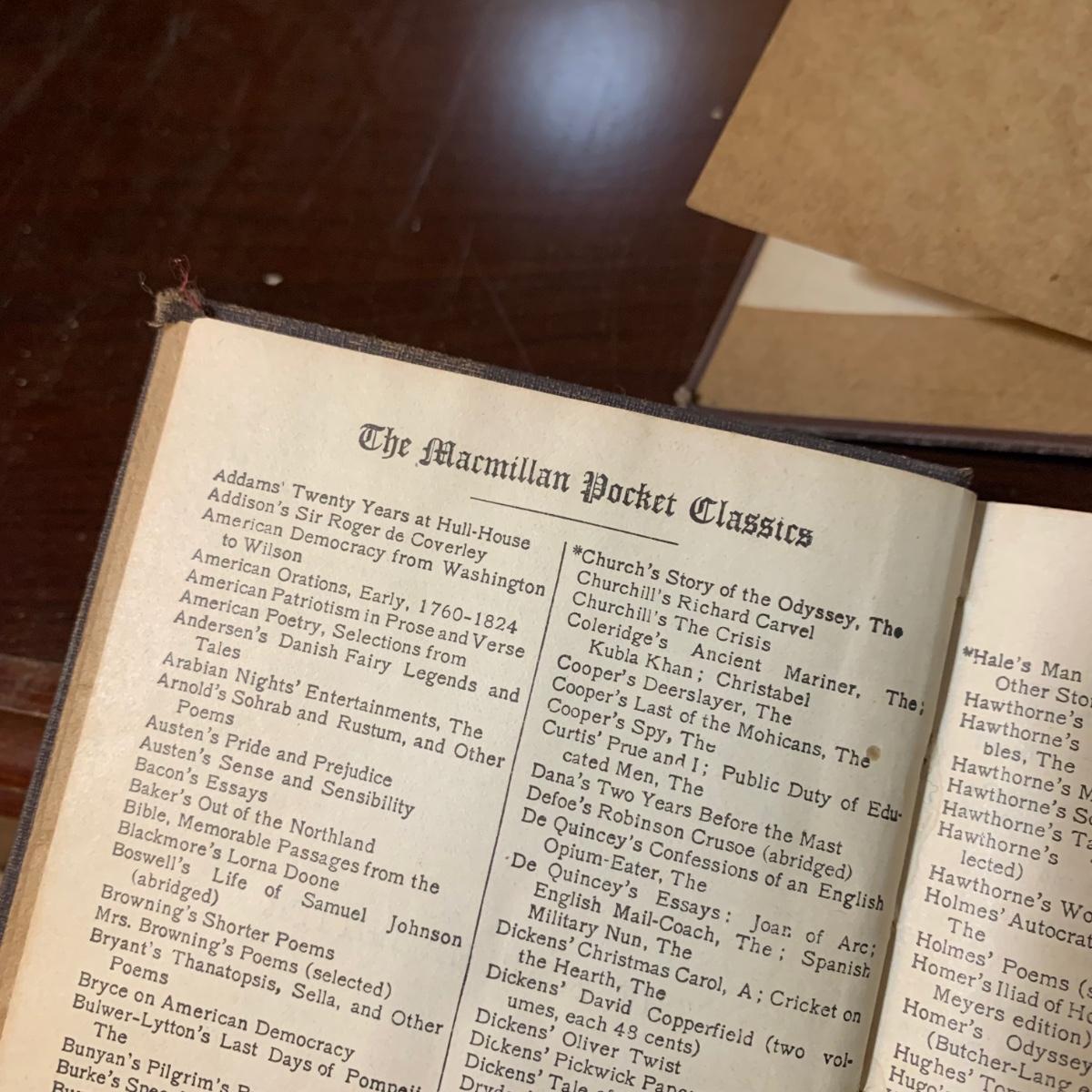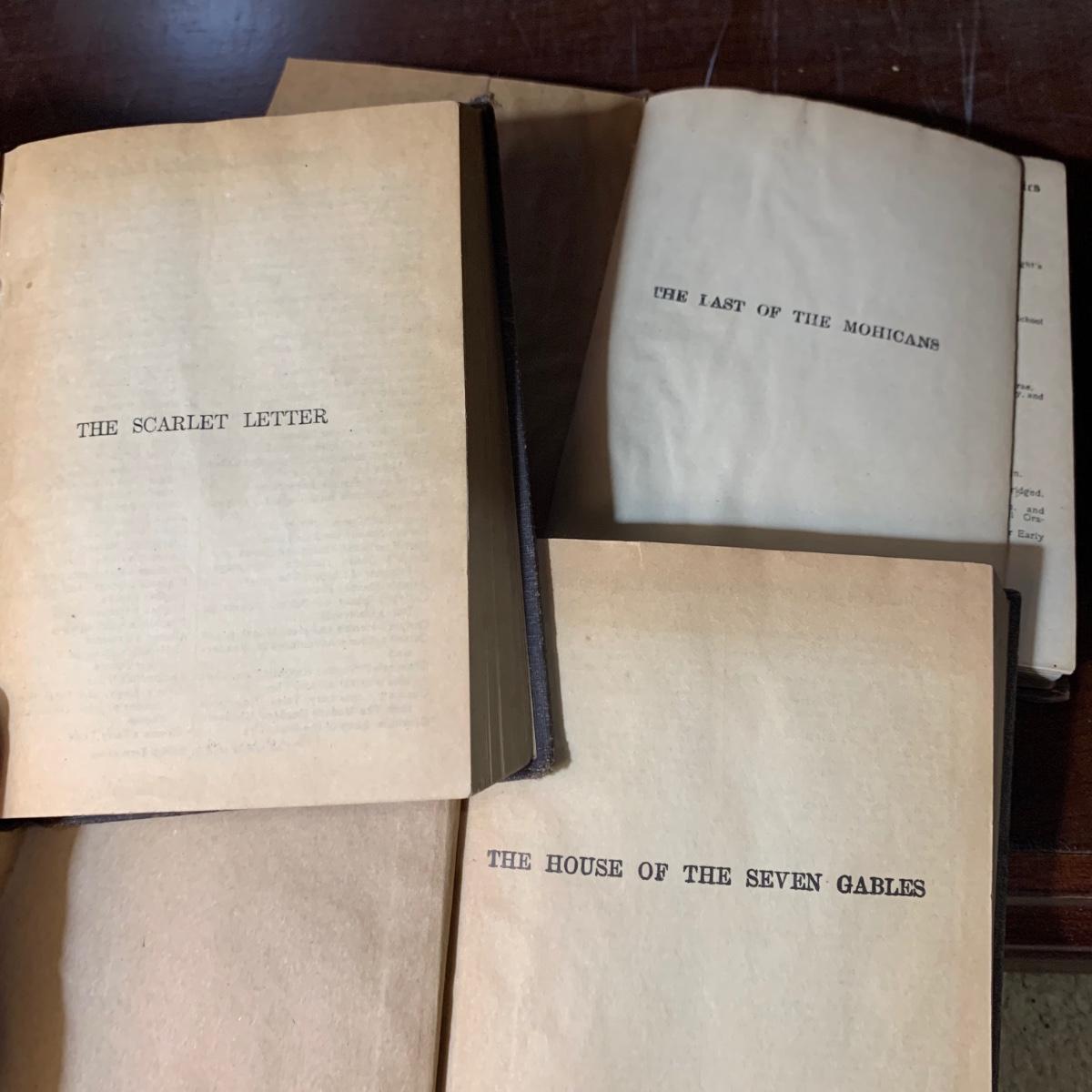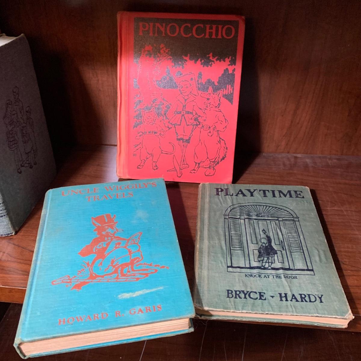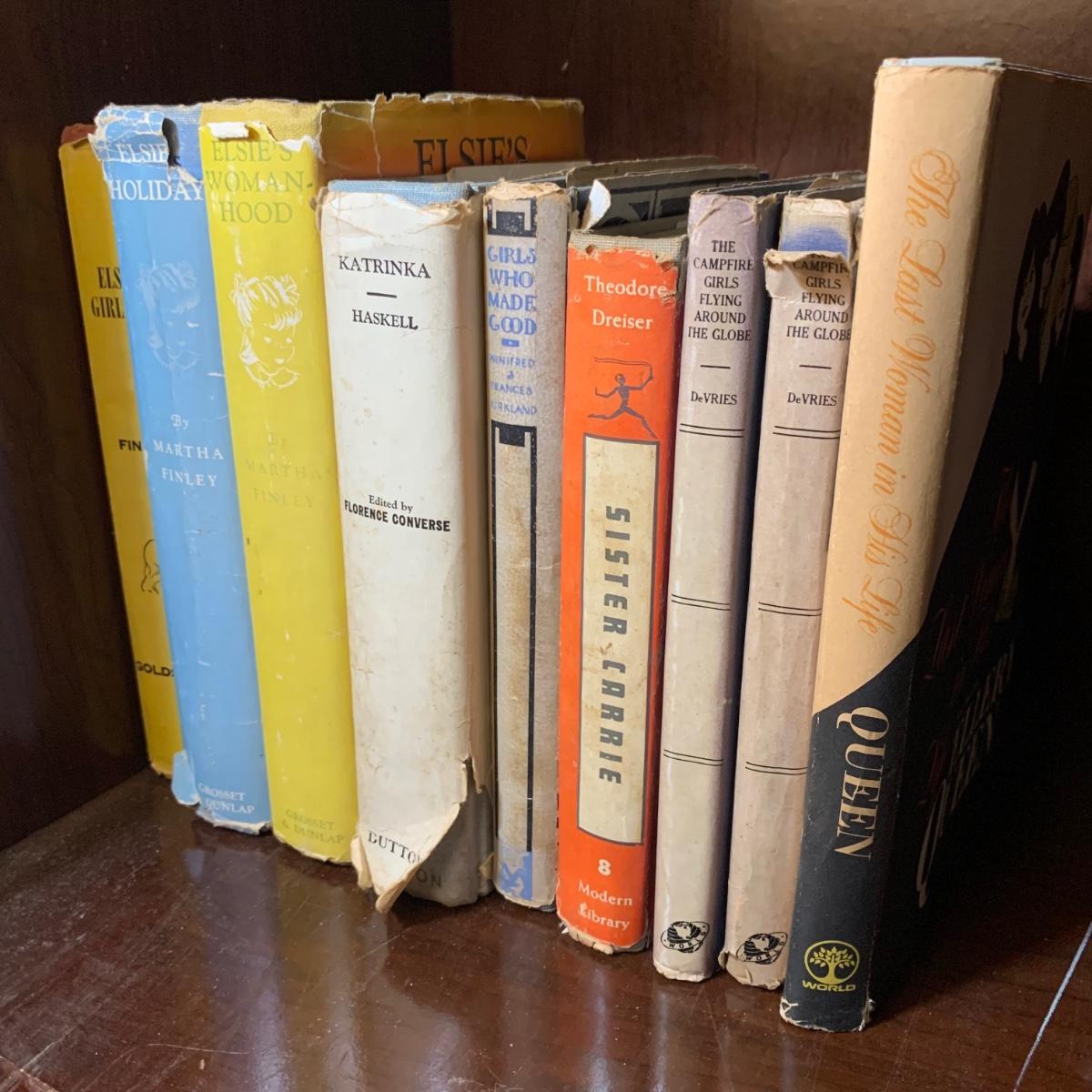 30+ mostly antique (though some vintage) hardcover books. Most books are all a bit worn, which adds to their antique charm. Most books with torn dust jackets have actual covers that are in much better condition. Included in this collection: a nine book set of “The Bobbsey Twins”, three “Elsie” books by Martha Finley, a four book Harper set of “Masterpieces of World Literature”, three small brown Macmillan Pocket Classic books including “The Last of the Mohicans”, “The Scarlet Letter”, & the “House of Seven Gables”, as well as two “Five Little Peppers” books, “Pinocchio”, “China Sky”, and more.