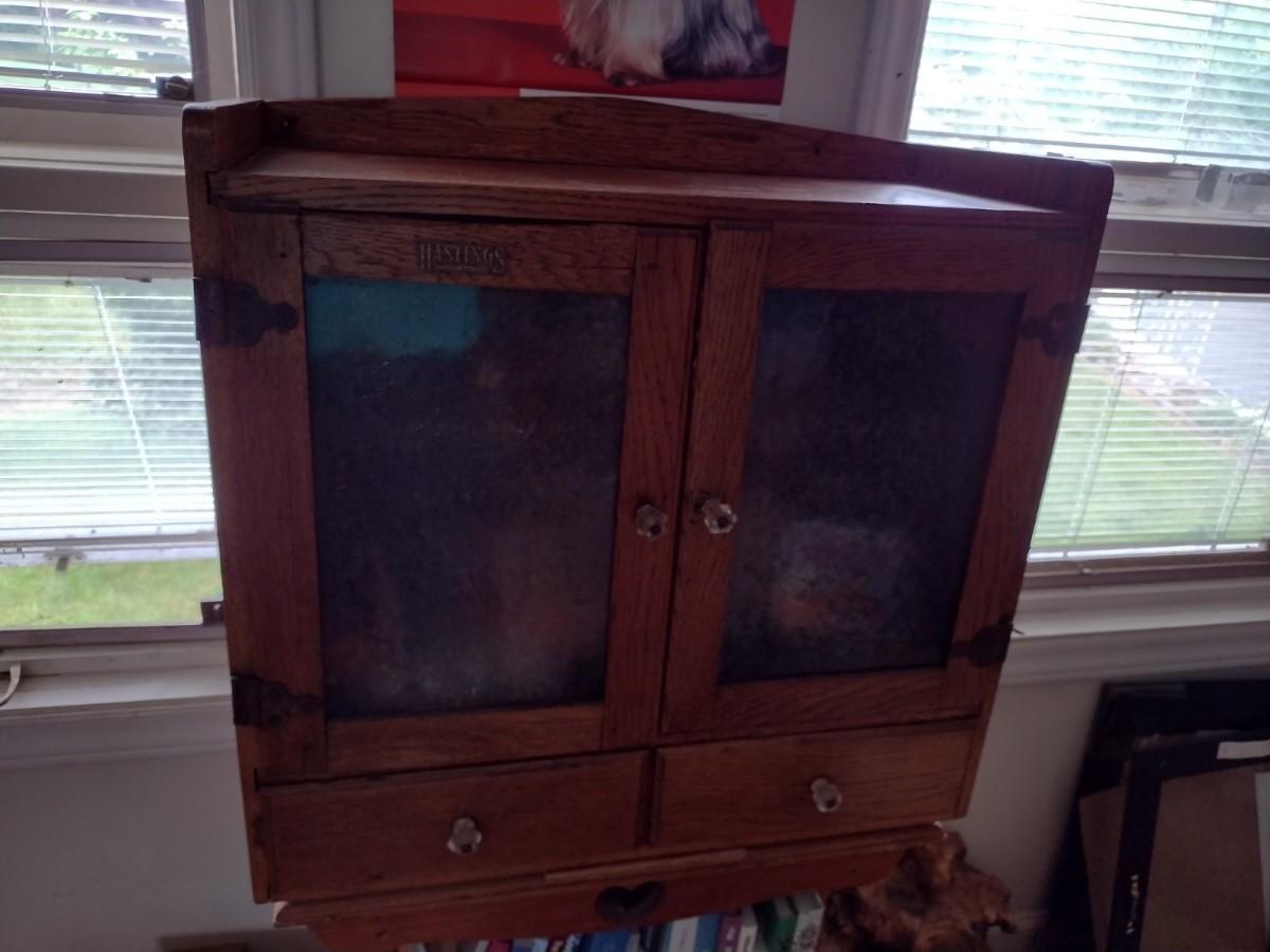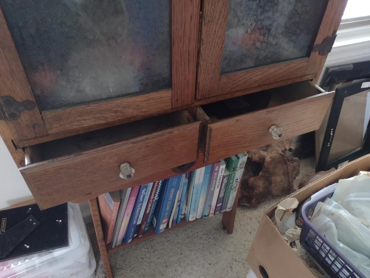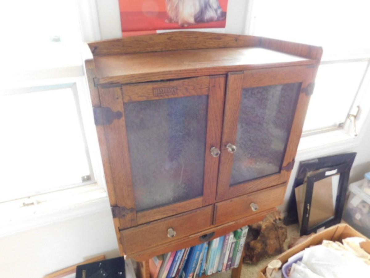 Antique Hastings Solid Wood Oak Cabinet with Double Doors and Two Drawers (No Contents)