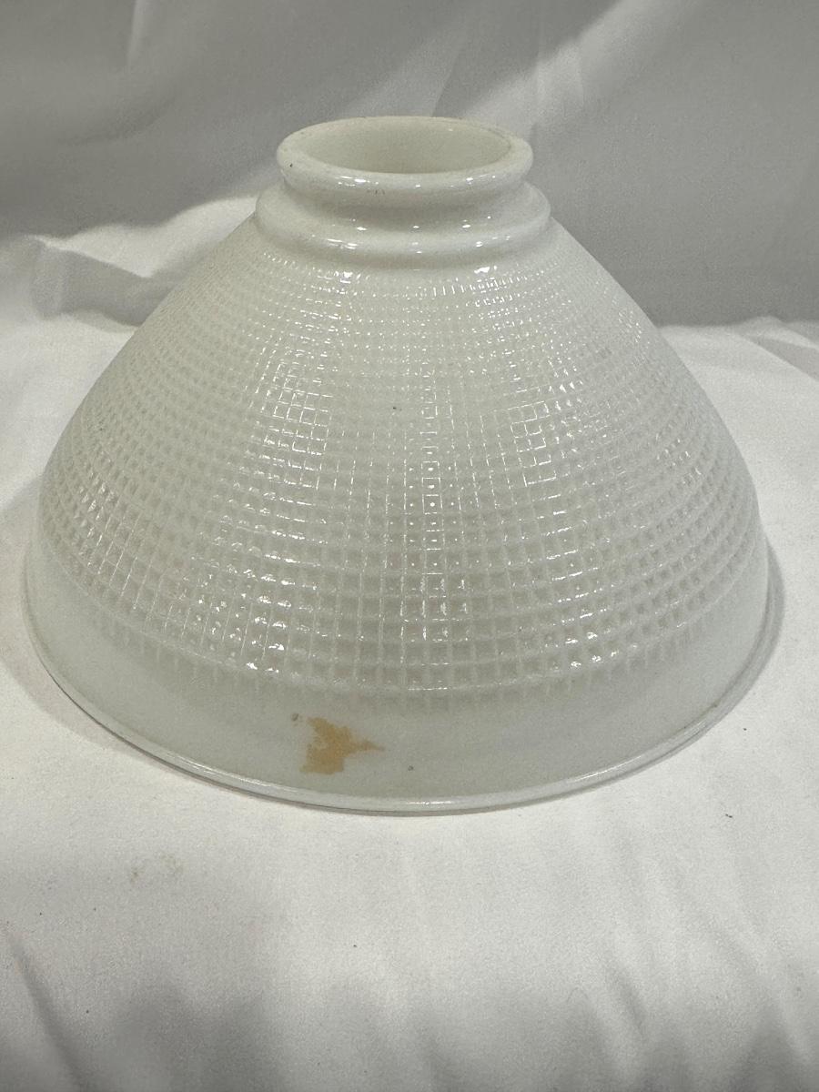 Antique Heavy Checkered Milk Glass Lamp Shade