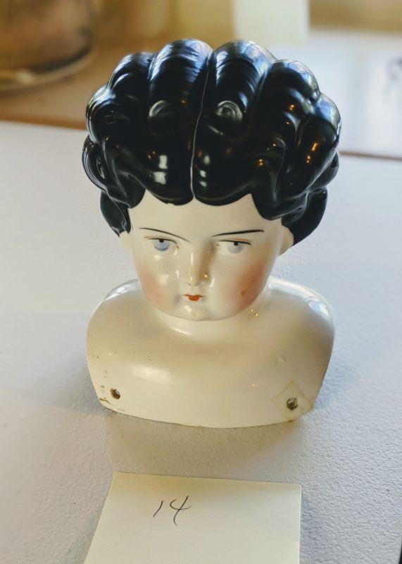 Antique Hertwig low brow china doll head #8, 6" tall German (#14)