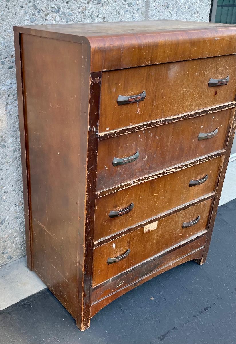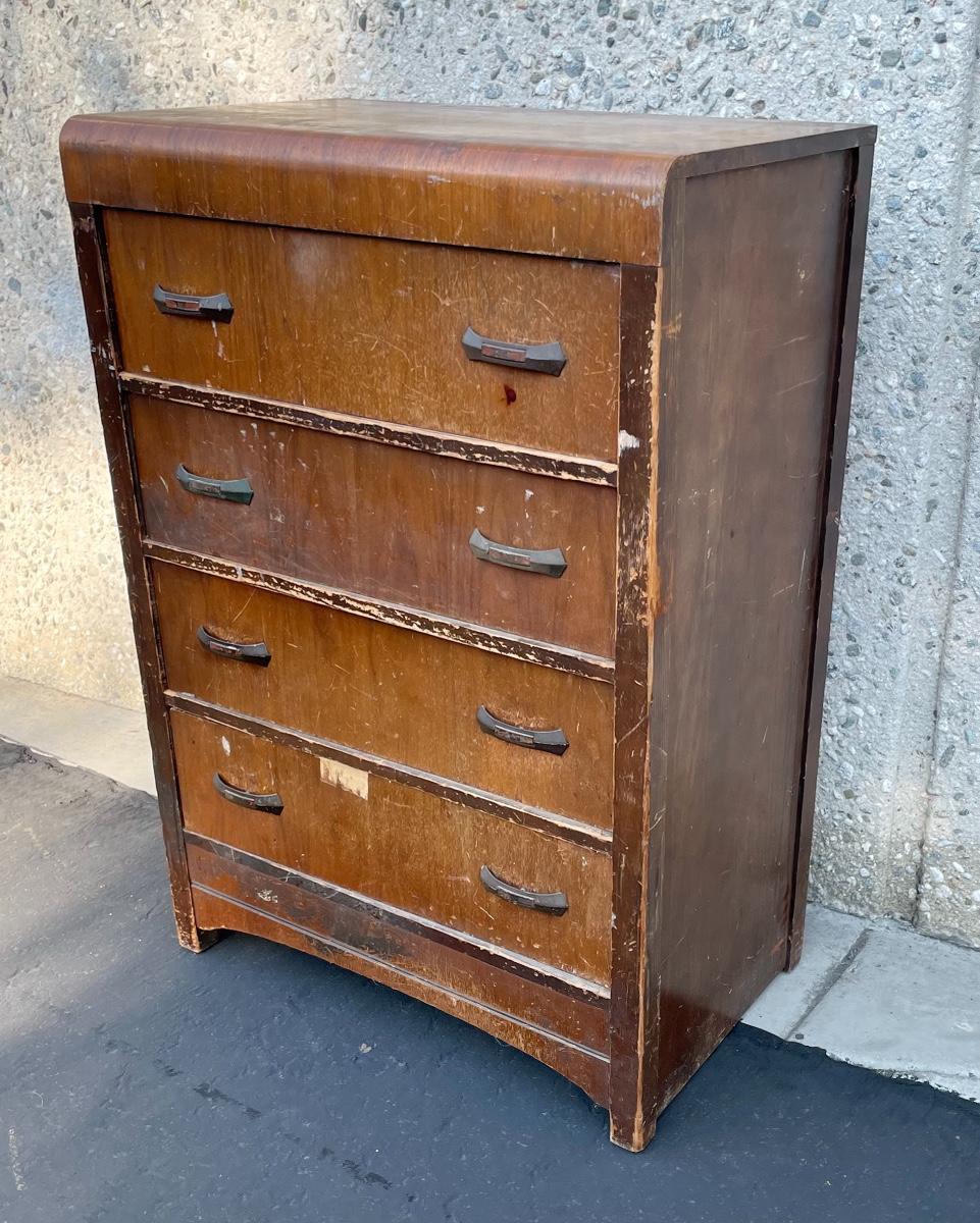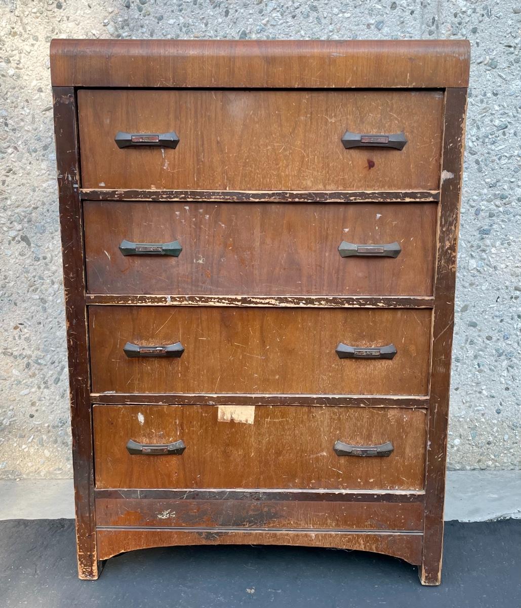 Tall dresser, dark brown. Approx 30” wide, 43” tall, 18” deep. 4 drawers.