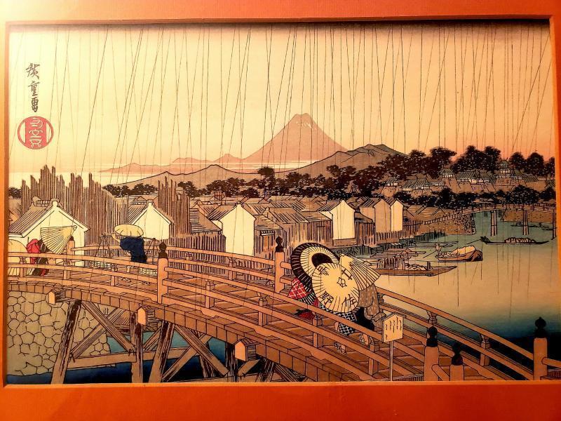 Antique Hiroshige Woodblock print Shower on Nihonbashi Bridge
