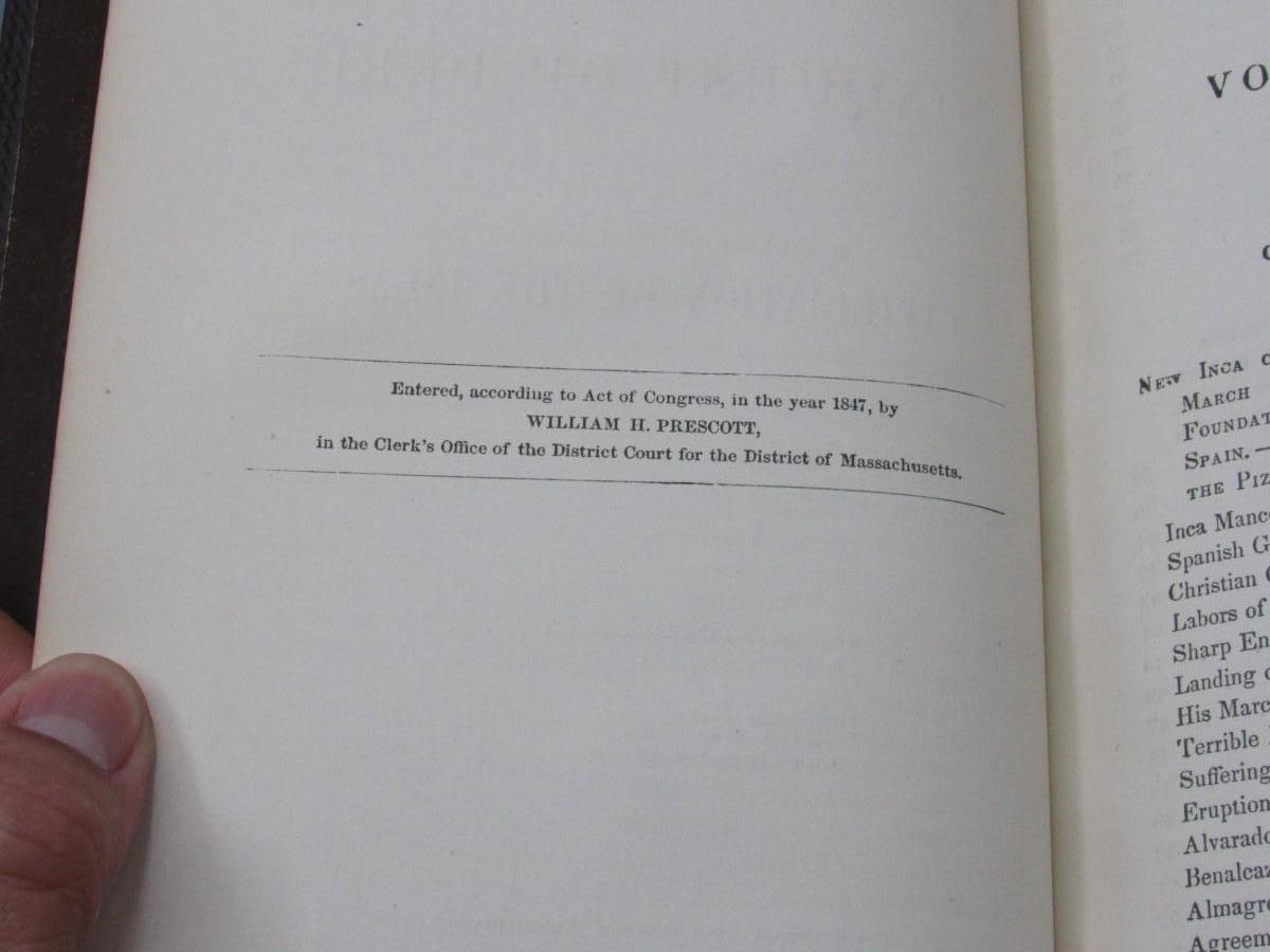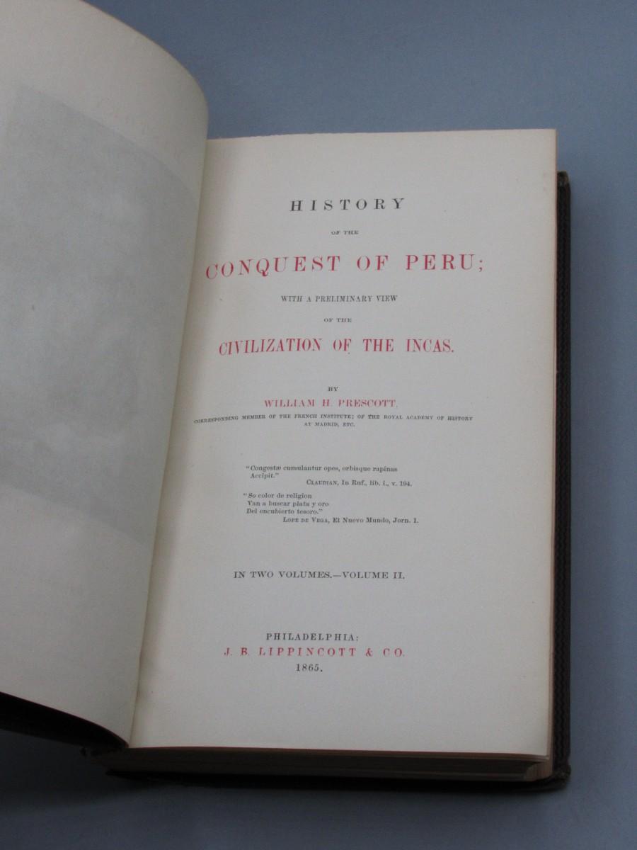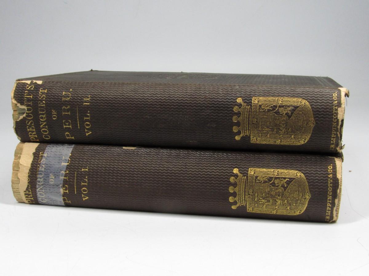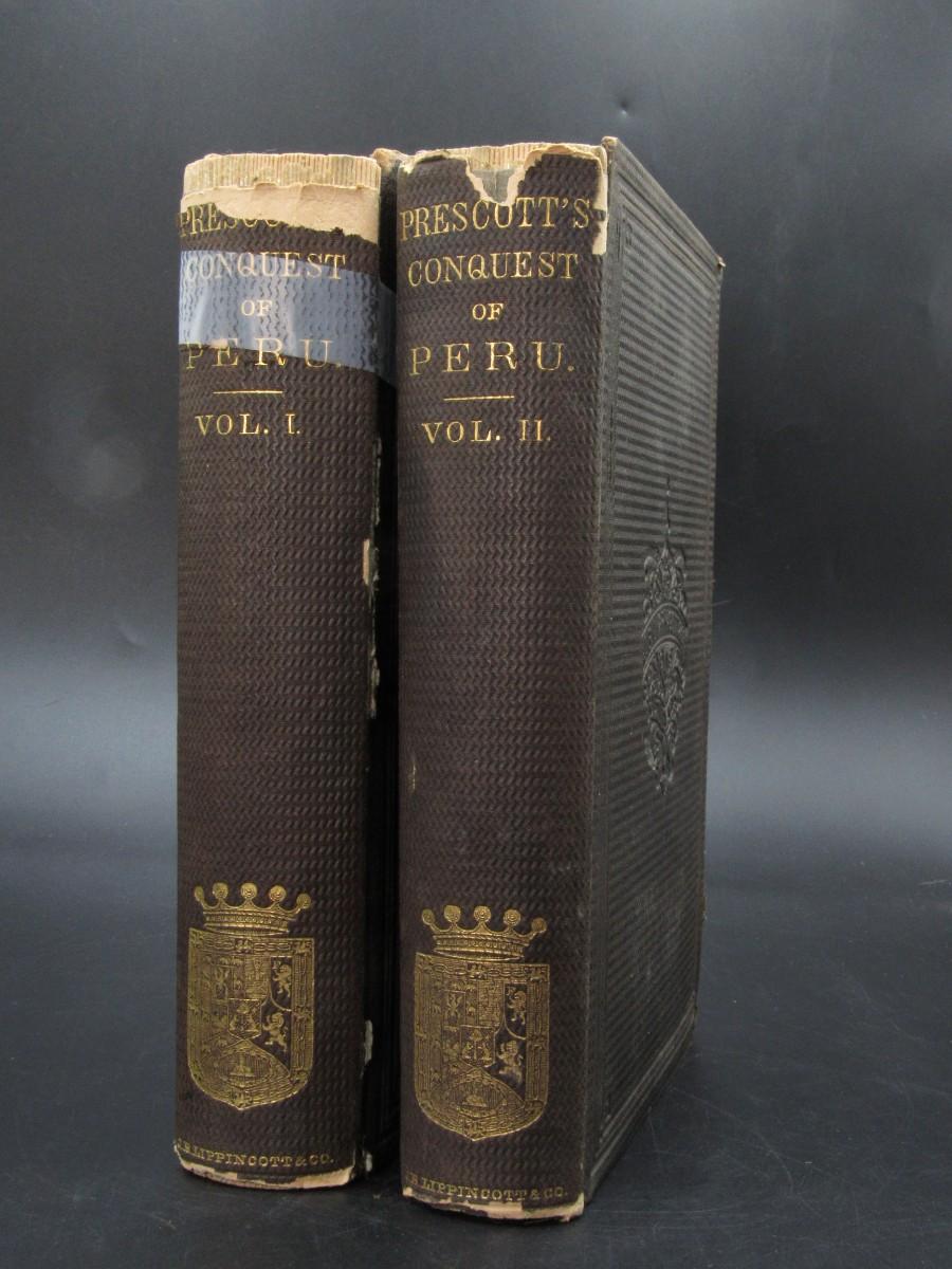 Antique History Reference Book Prescott's Conquest of Peru Vol. I & II Hardcover Book