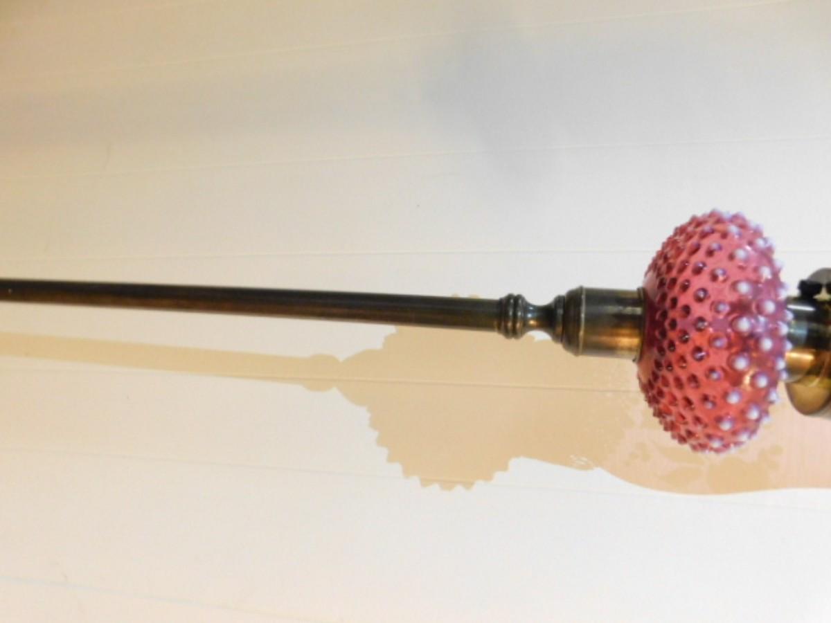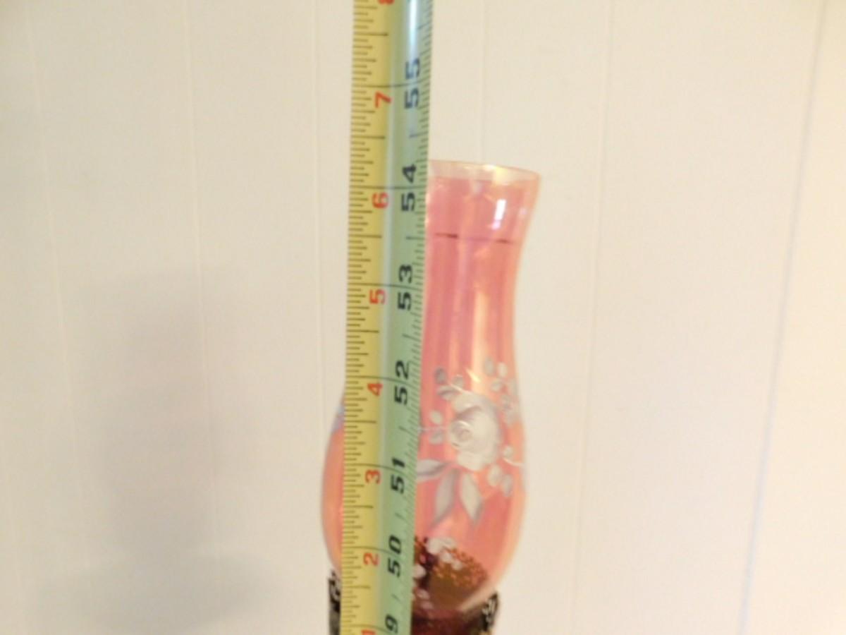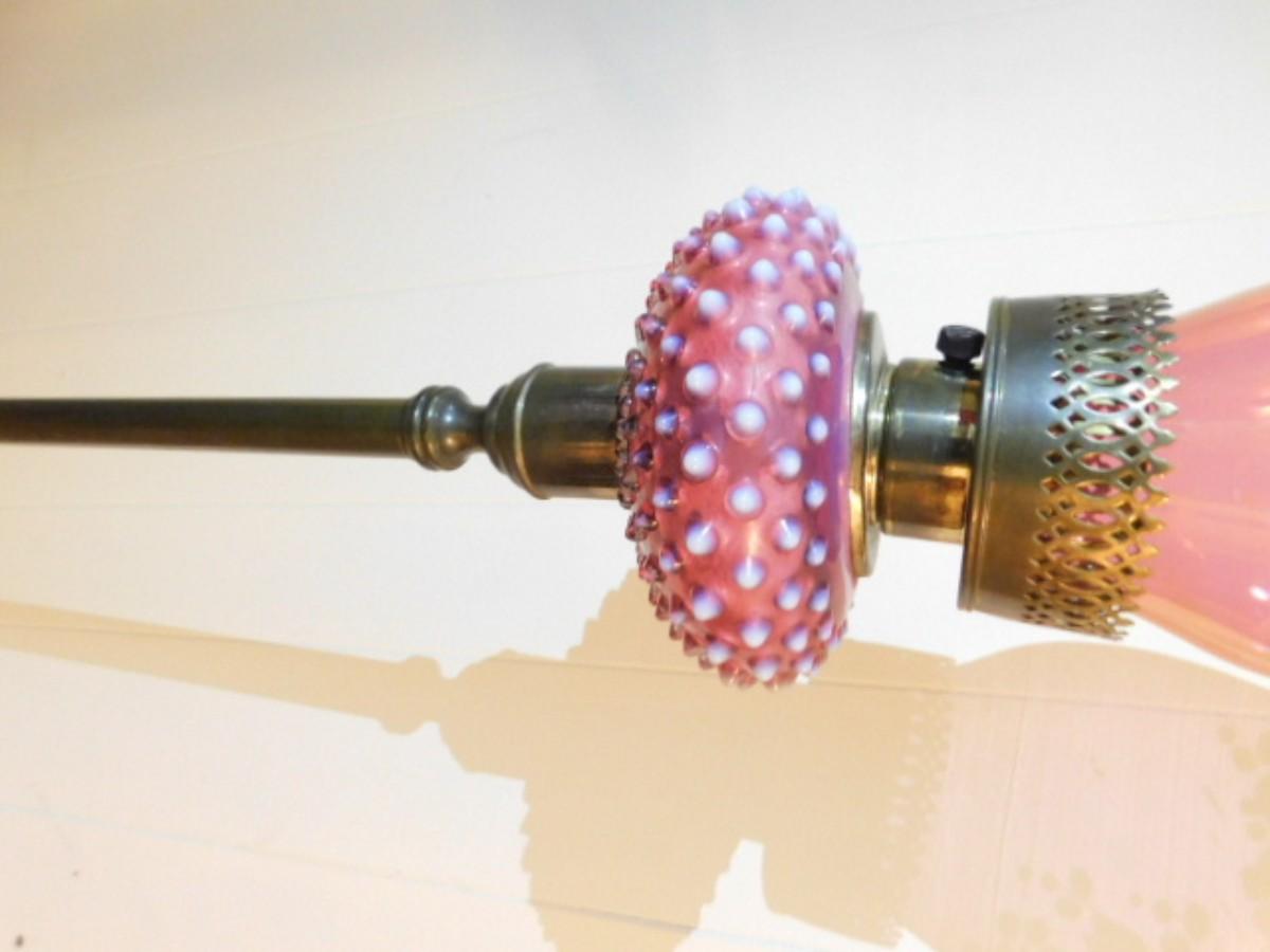 Antique Hobnail Cranberry Glass Post Floor Lamp with Hand Painted Glass Chimney