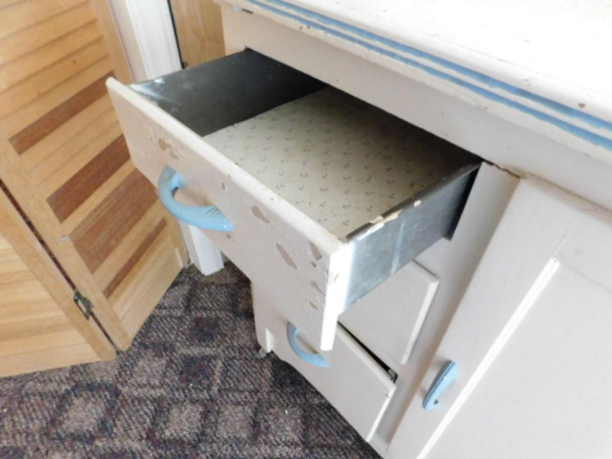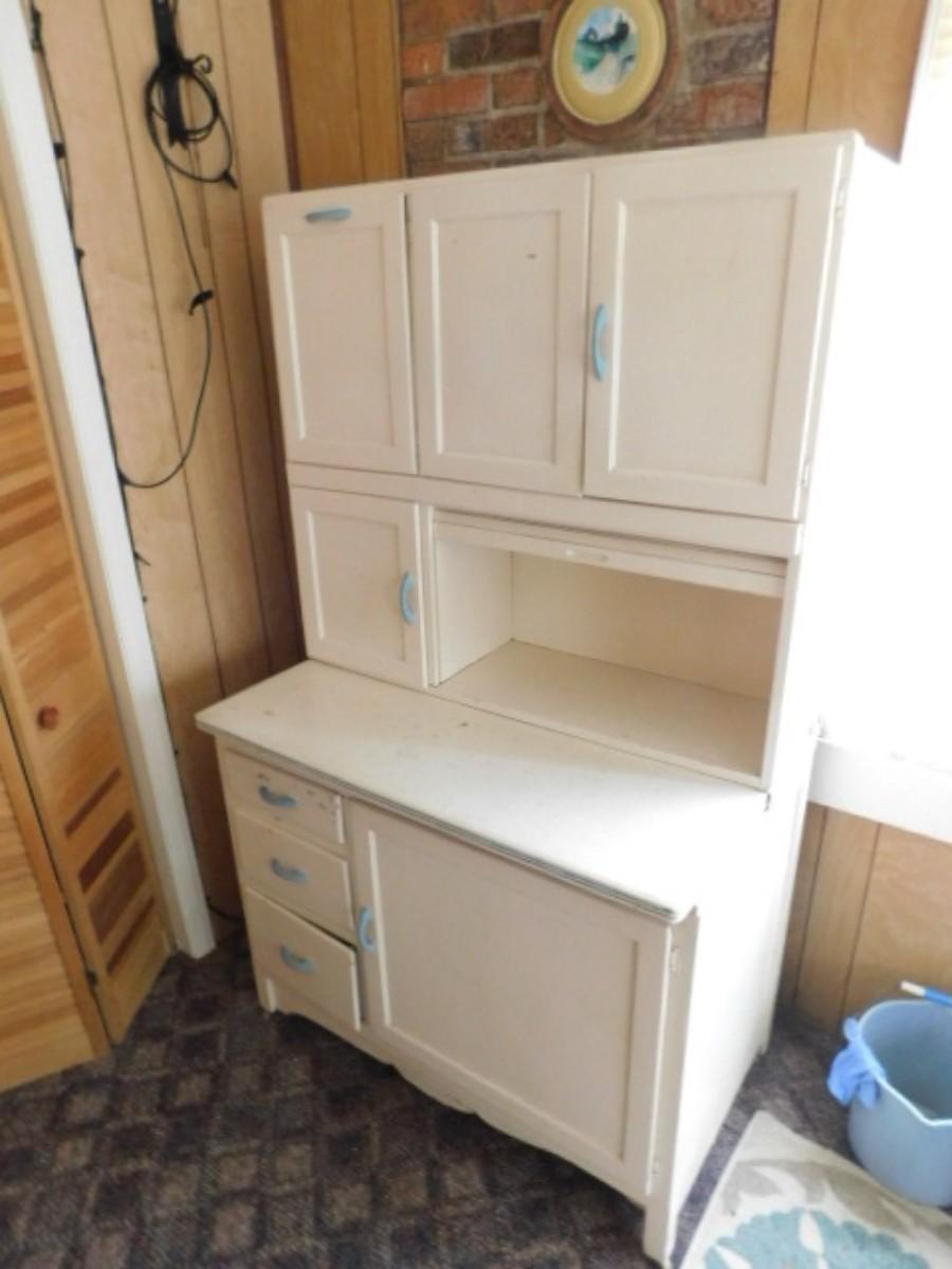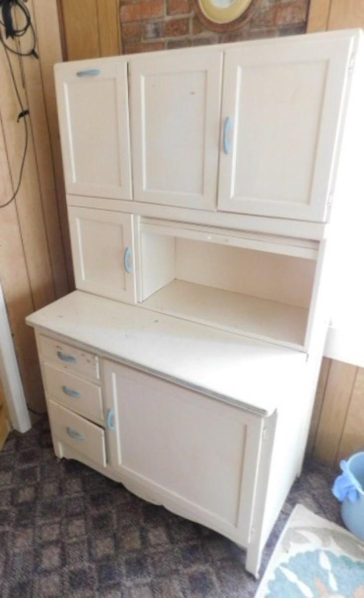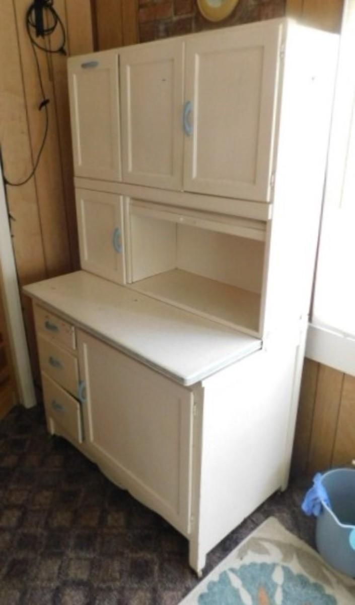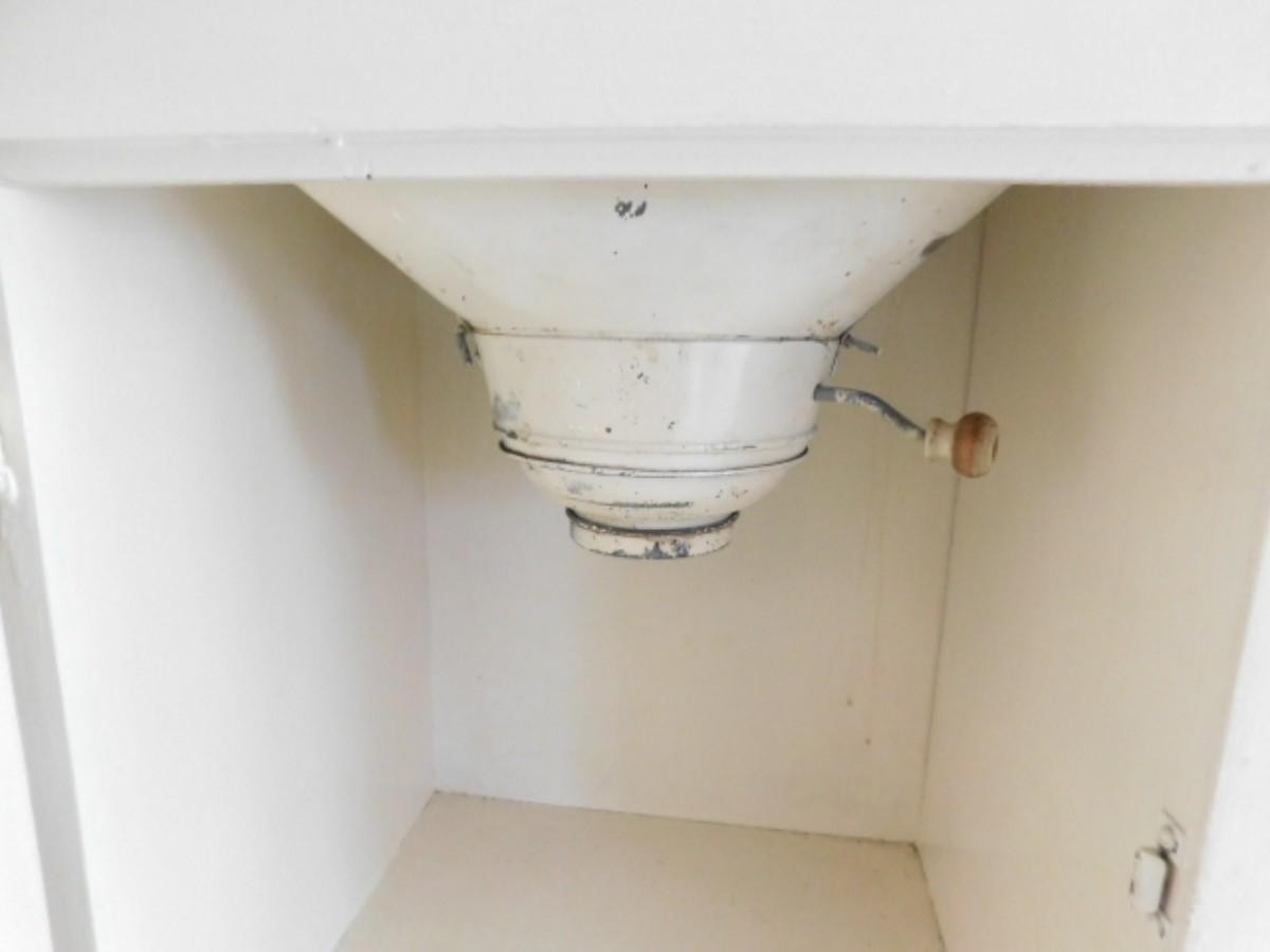 Antique Hoosier Cabinet Solid Wood Painted White with Sifter