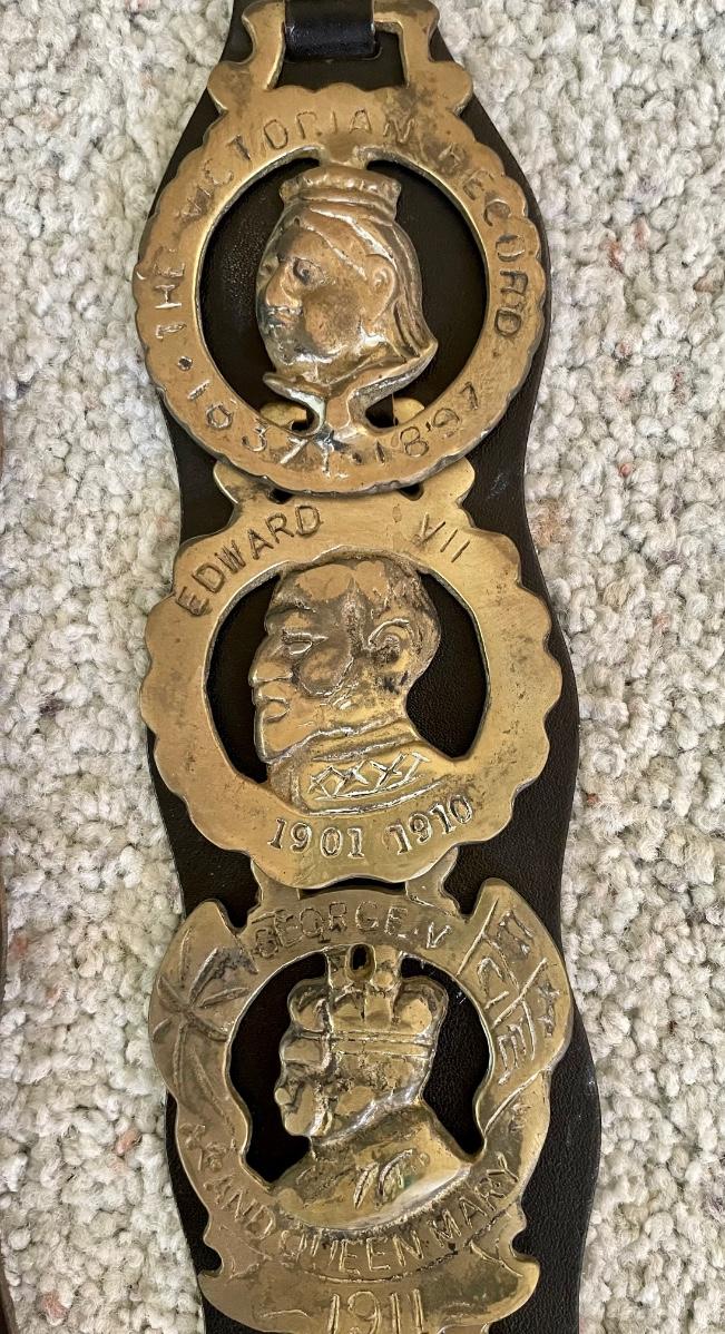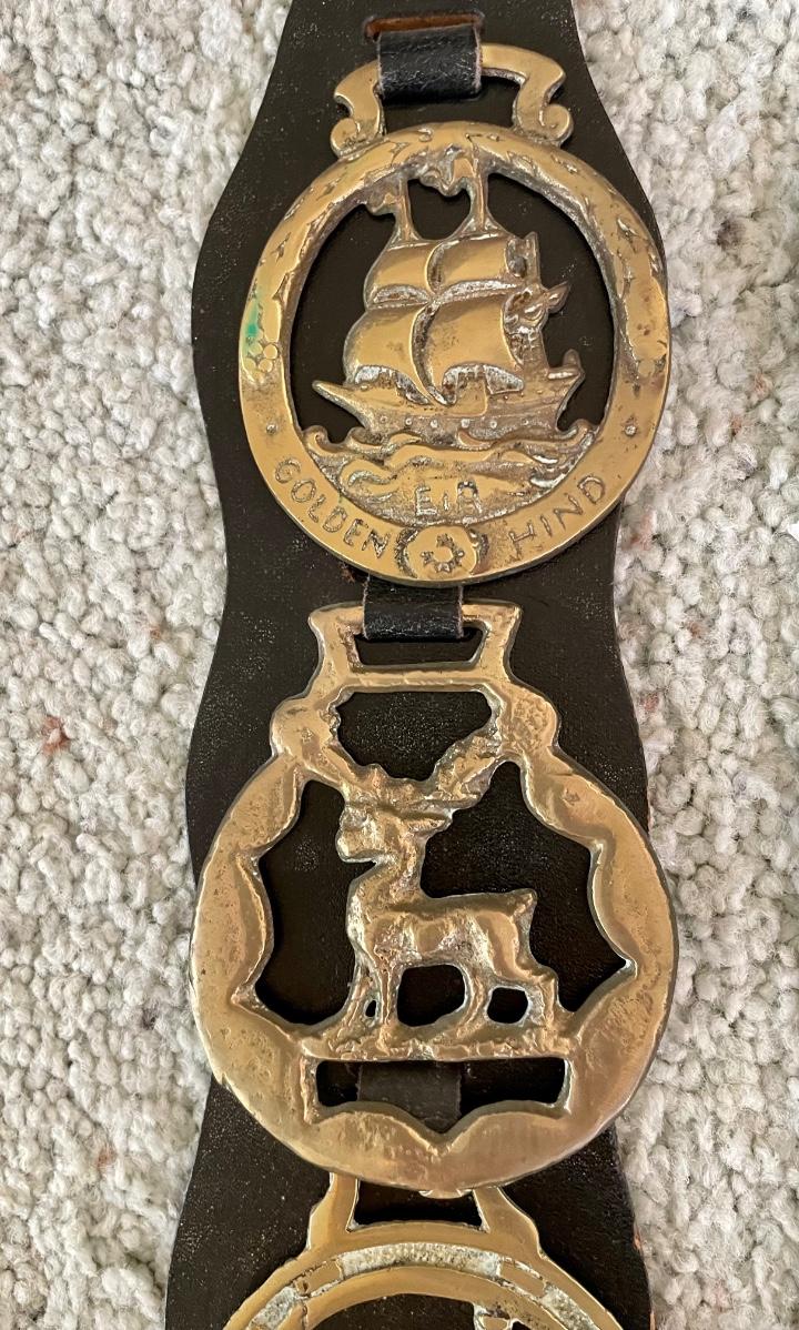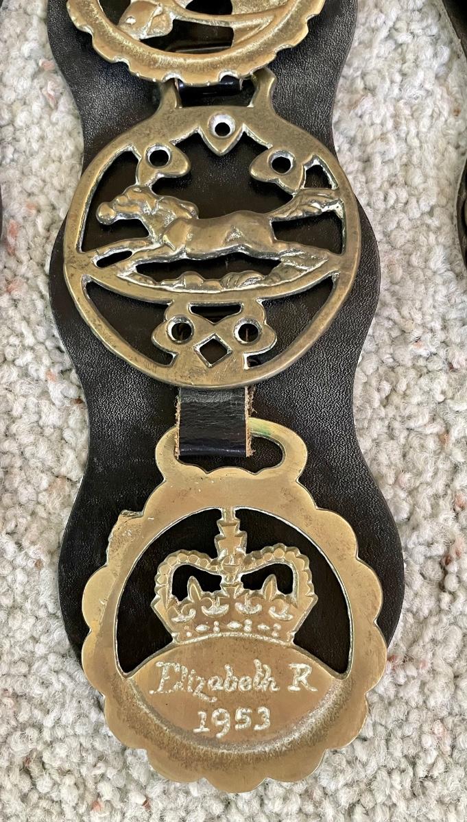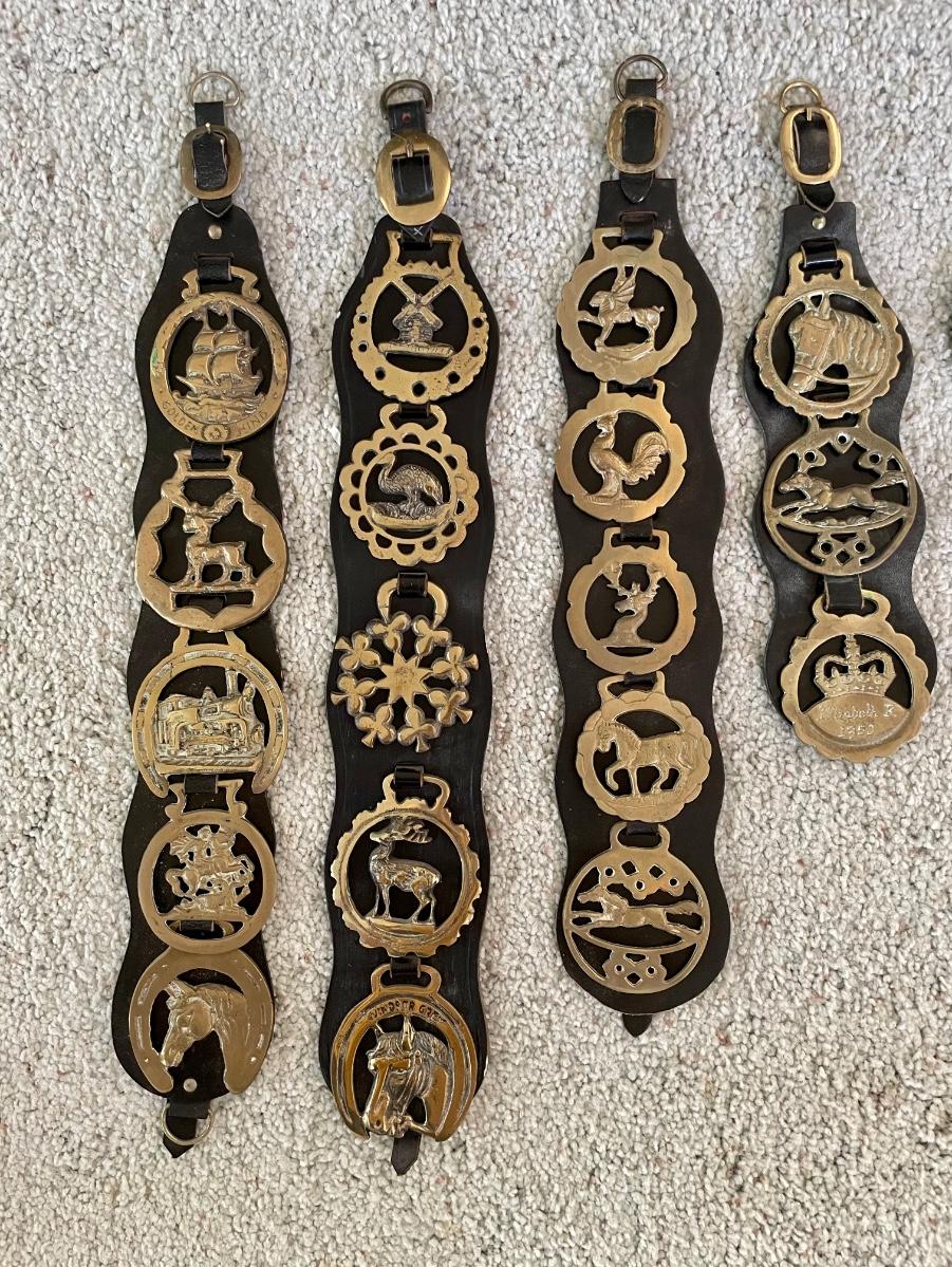 Brass Horse Badges on Leather Strap Collection of 32 Brasses